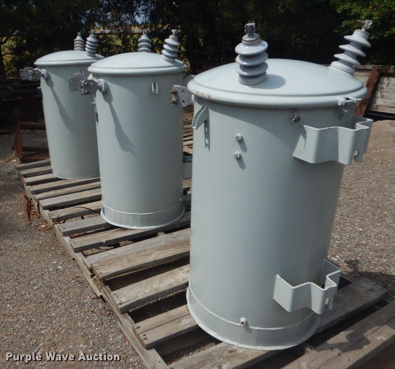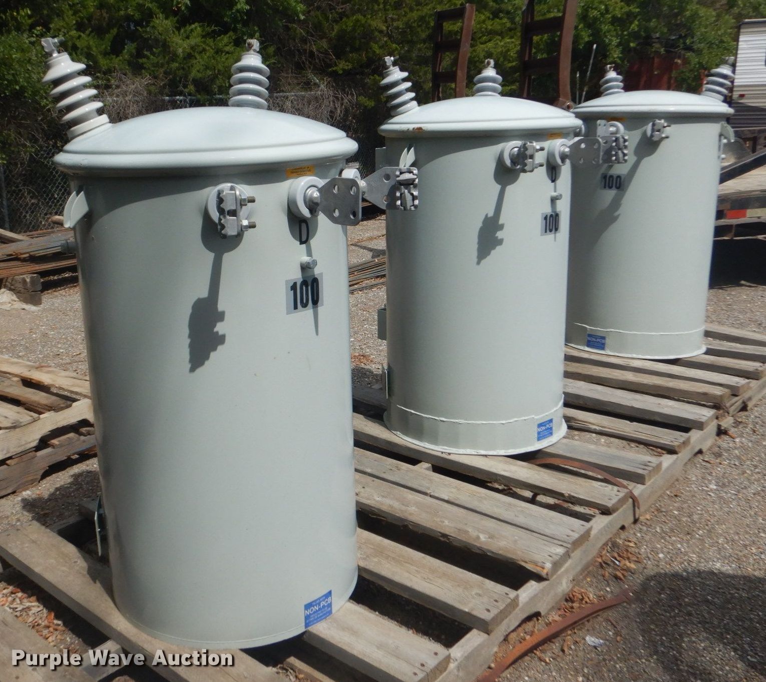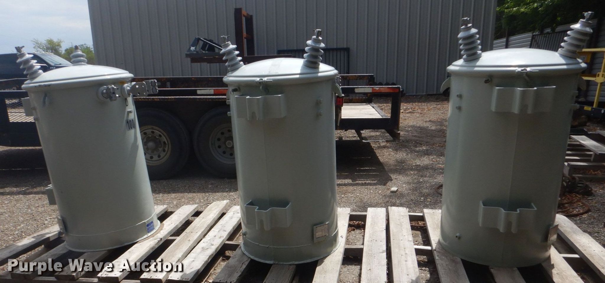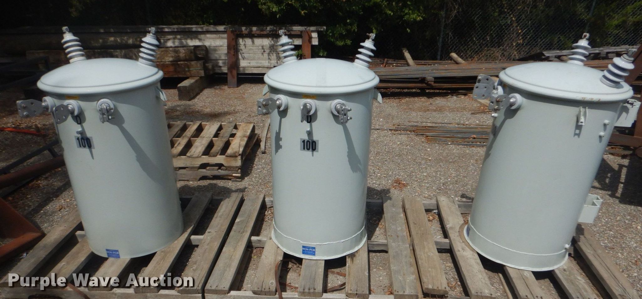 Purple Wave is selling a used Building Materials in Texas. This item is a (3) transformers with the following: 100 kVA, Single phase, Unused, Serial numbers: 205021, 205022, 205023