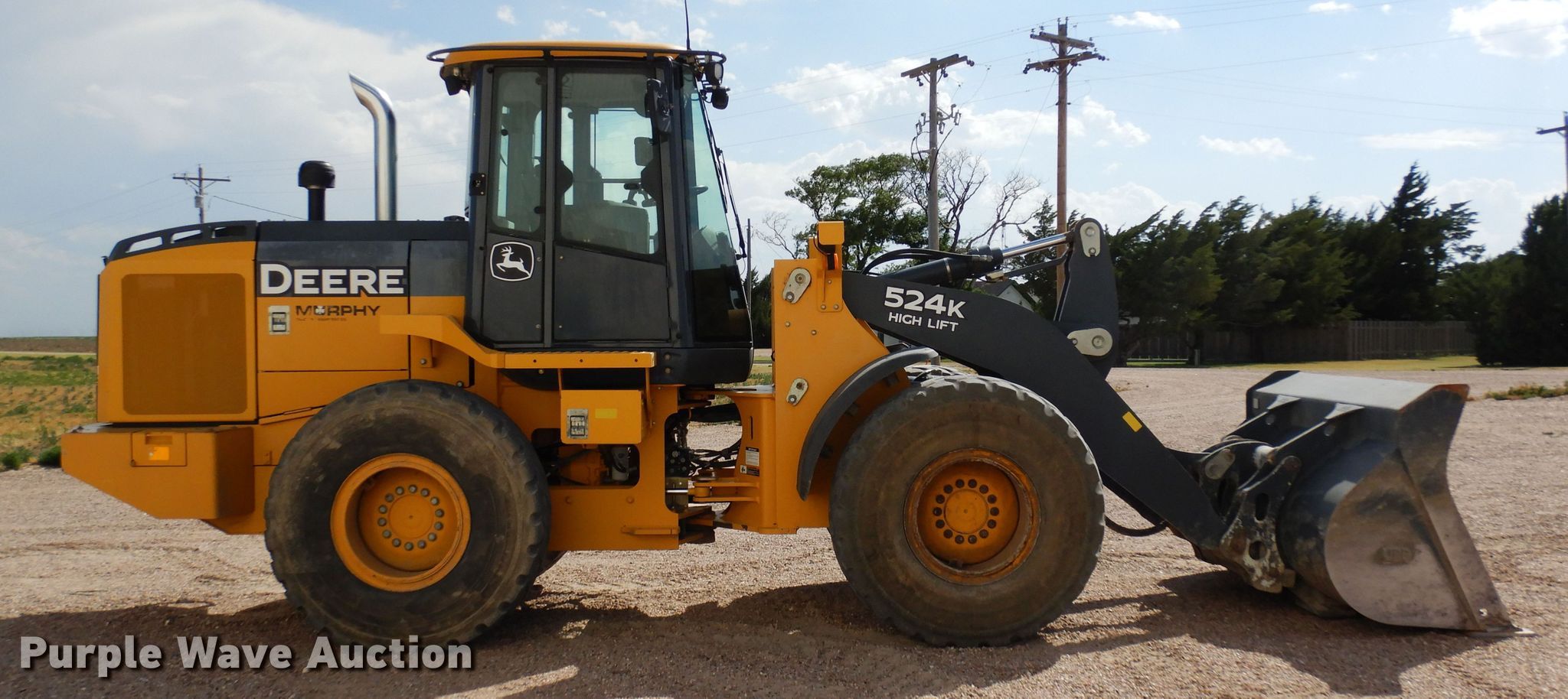 Purple Wave is selling a used Wheel Loader in Kansas. This item is a 2012 John Deere 524K high lift wheel loader with the following: Hours: 7,241 on meter, Serial: 1DW524KHLCE643366