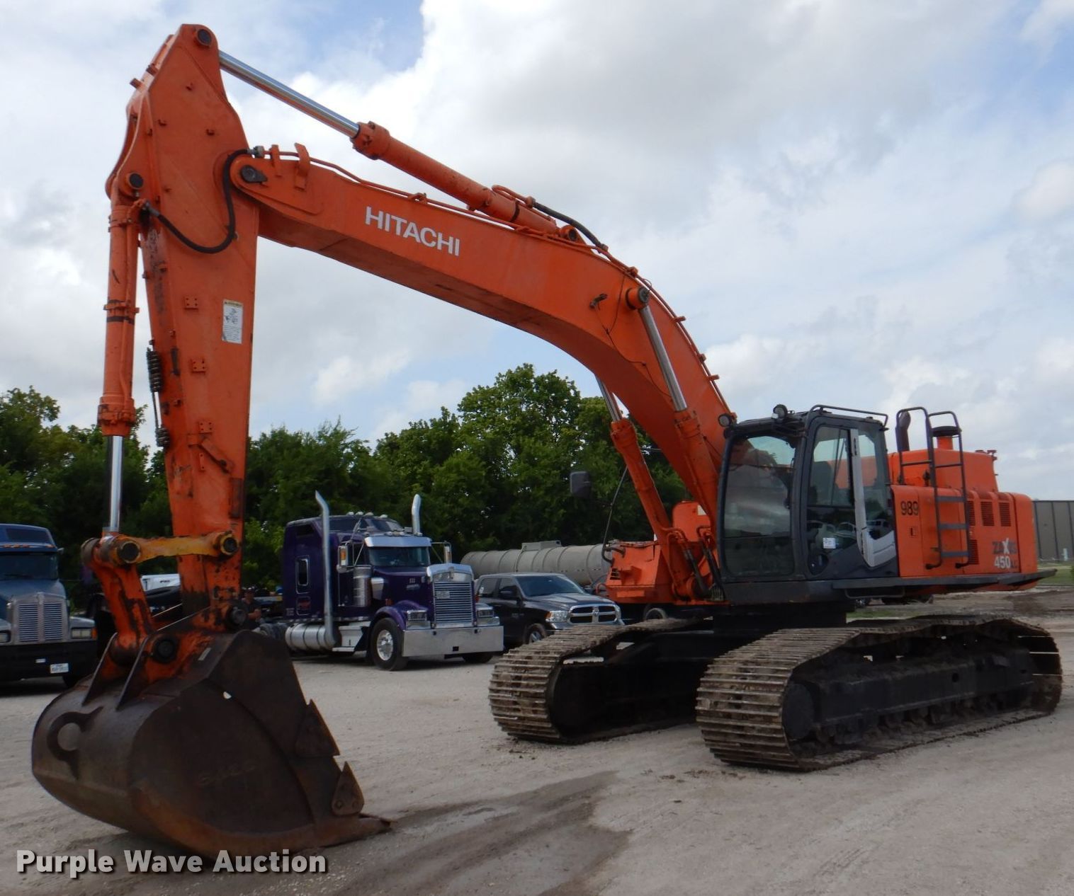 Purple Wave is selling a used Hydraulic Excavator in Texas. This item is a 2010 Hitachi ZX450LC-3 excavator with the following: Hours: 13,909 on meter, Serial: FF01J3Q022989