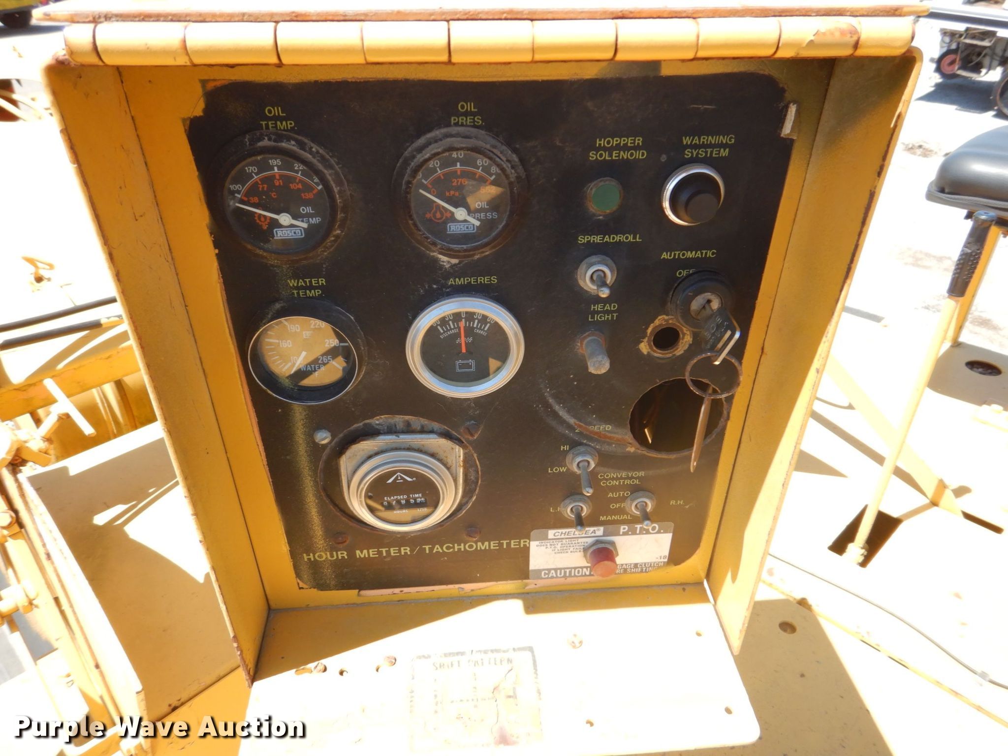 Purple Wave is selling a used Chip Spreader in Iowa. This item is a 1991 Rosco Flaherty SPR-H chip spreader with the following: Hours: 8,795 on meter, Serial: 32082