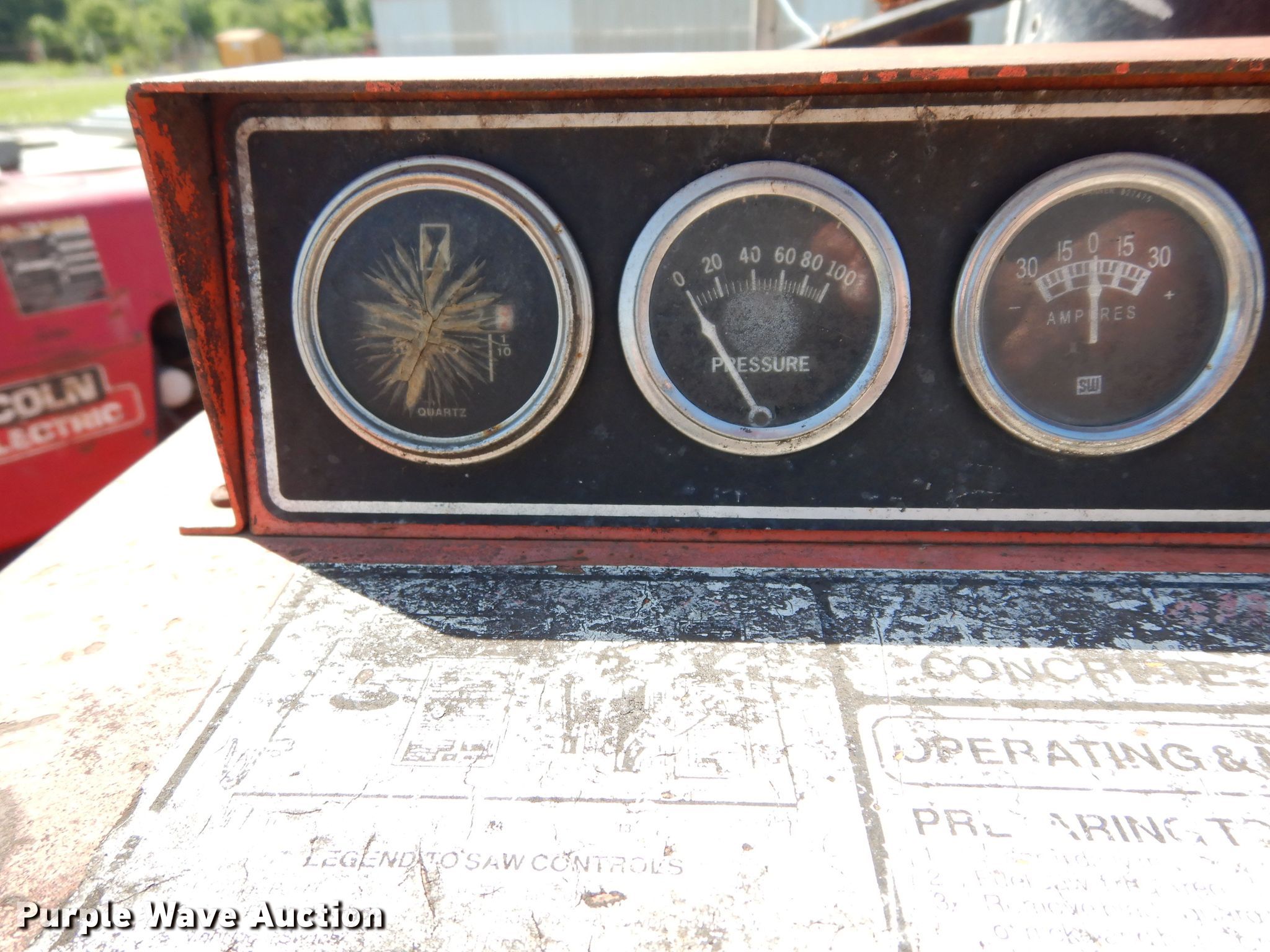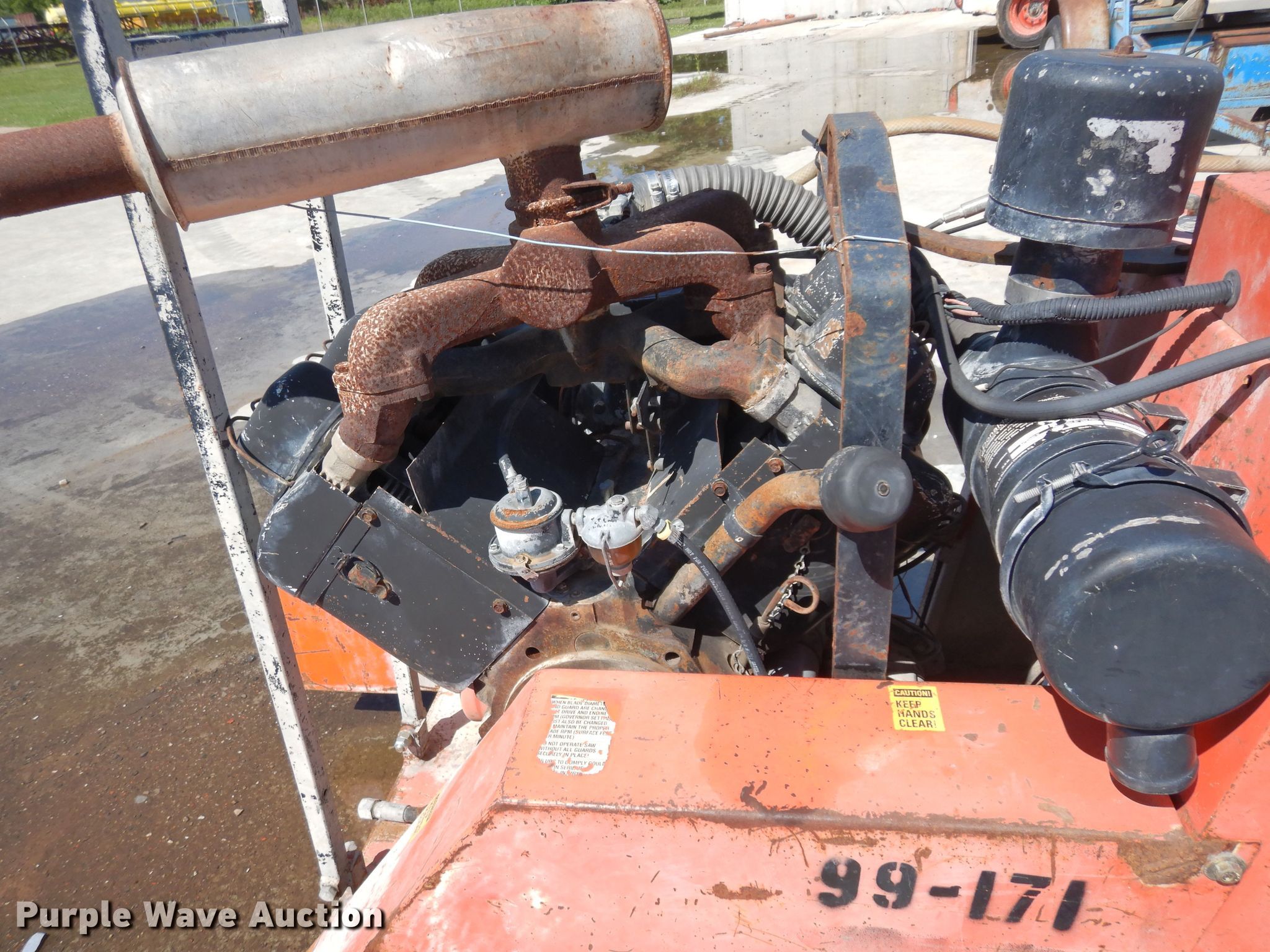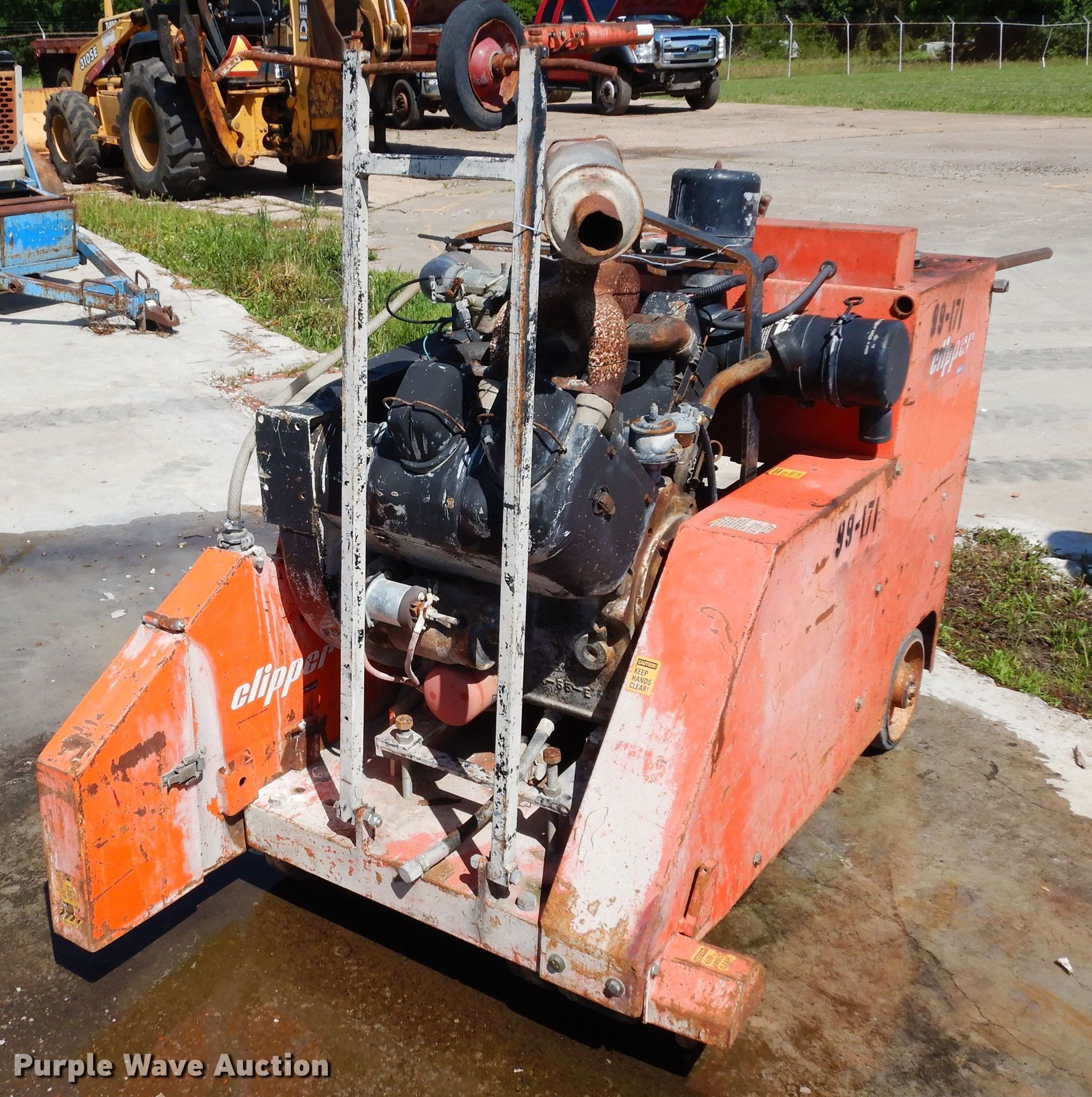 Purple Wave is selling a used Concrete Equip. or Acces. in Oklahoma. This item is a Norton C-65B KET concrete saw with the following: Unit #: 99-171, Wisconsin four cylinder gas engine, 17" blade, Electric start, Water pump, Hydraulic lift, Lifting eyes