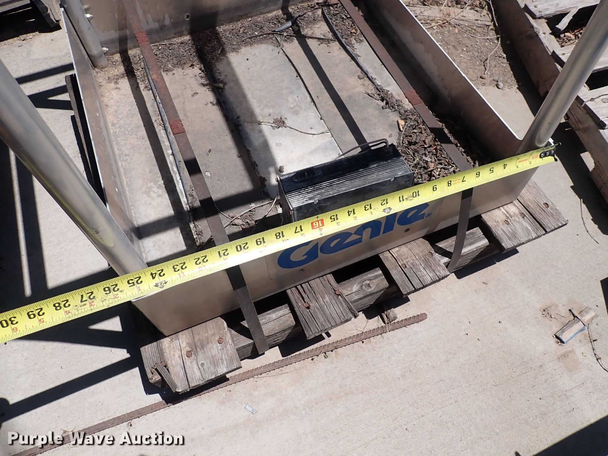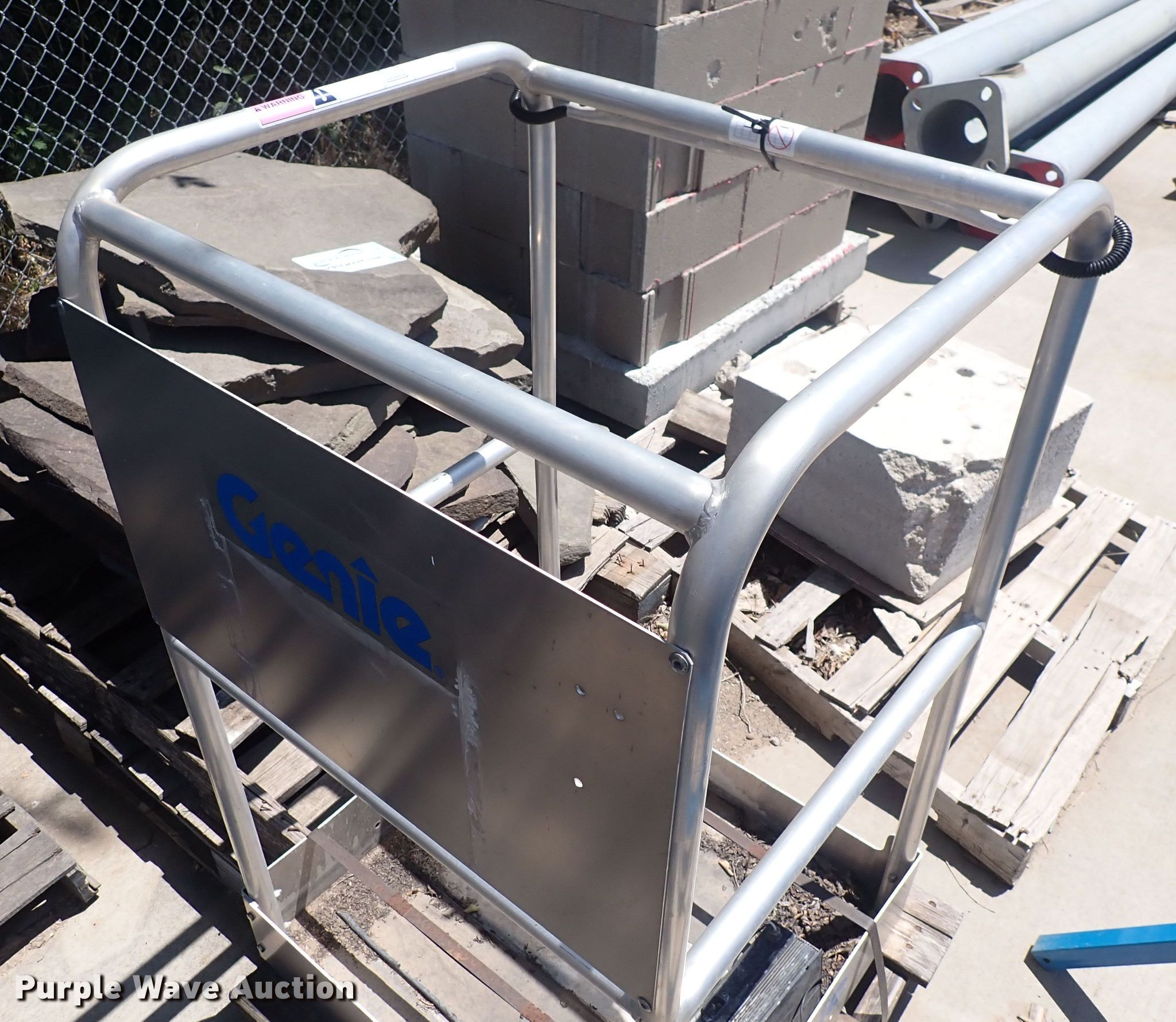 Purple Wave is selling a used Aerial Lift Attach. in Kansas. This item is a Boom lift basket with the following: 27" x 25", Aluminum, Removed from Genie boom lift