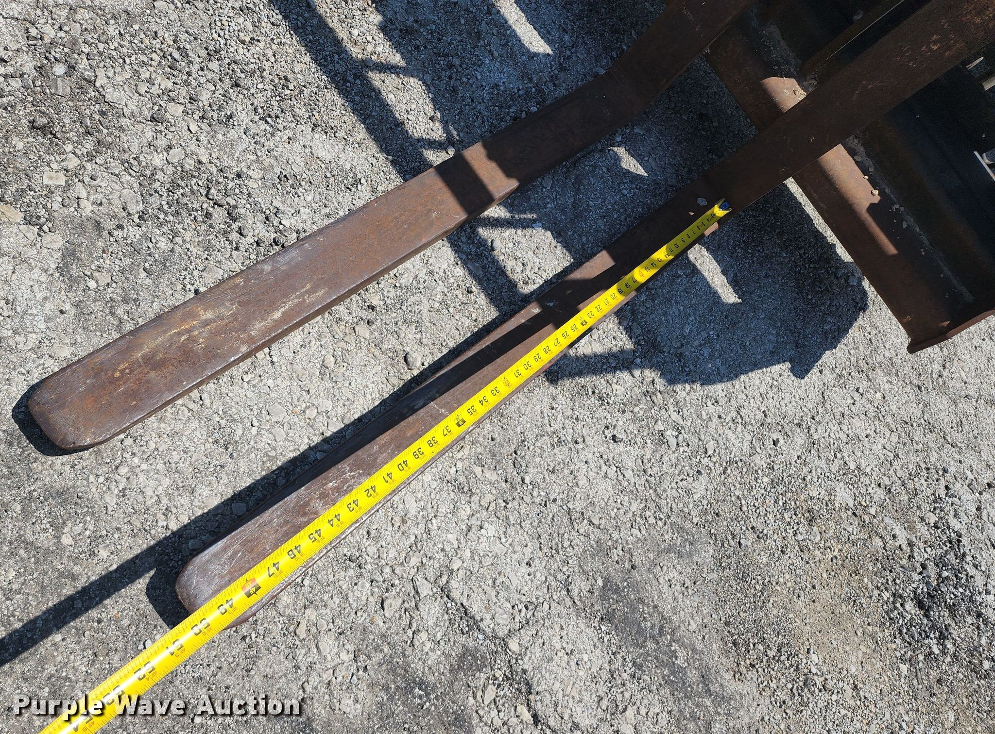 1997 Ingersoll Rand VR522 telehandler. Hours: 1,970 on meter, Serial: 148876. Engine Perkins, Cylinders: 4, Fuel type: Diesel. Transmission Shuttle shift, 4F - 4R, Four wheel drive. Operators station OROPS, Steering: Crab, Four wheel. Features Maximum lift capacity: 5,000 lbs, Maximum lift height: 22', Boom stages: 2, Fork length: 48", Auxiliary hydraulics, Quick attach: Hydraulic. Tires Size: 13-24. SW 22nd St and Us Hwy 40. Blue Springs, MO 64015