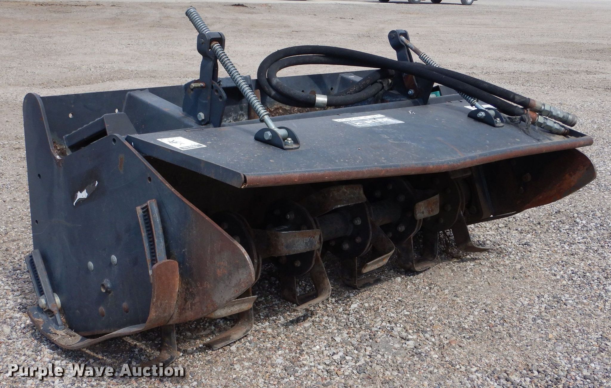 Purple Wave is selling a used Skid Steer Attach. in Kansas. This item is a John Deere Worksite Pro RT55 skid steer tiller with the following: Serial: KVRT55X300130, Width: 55"