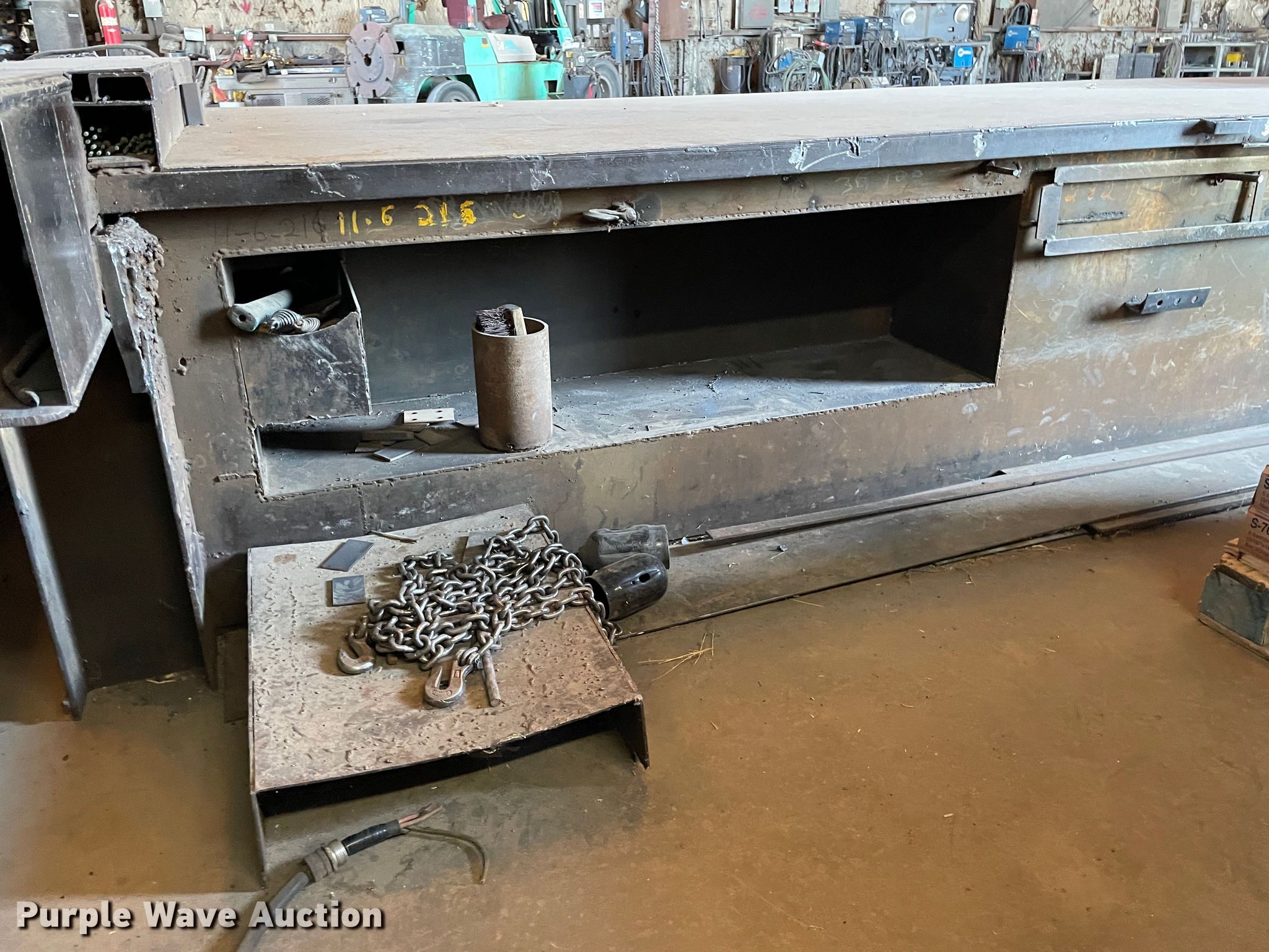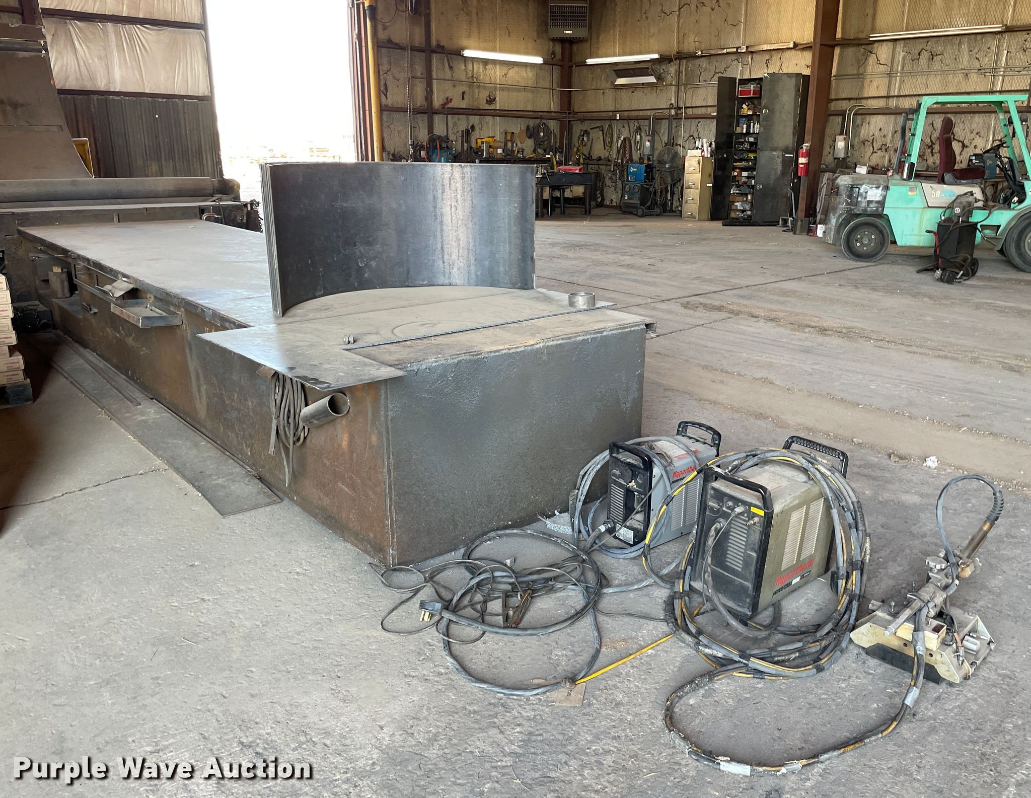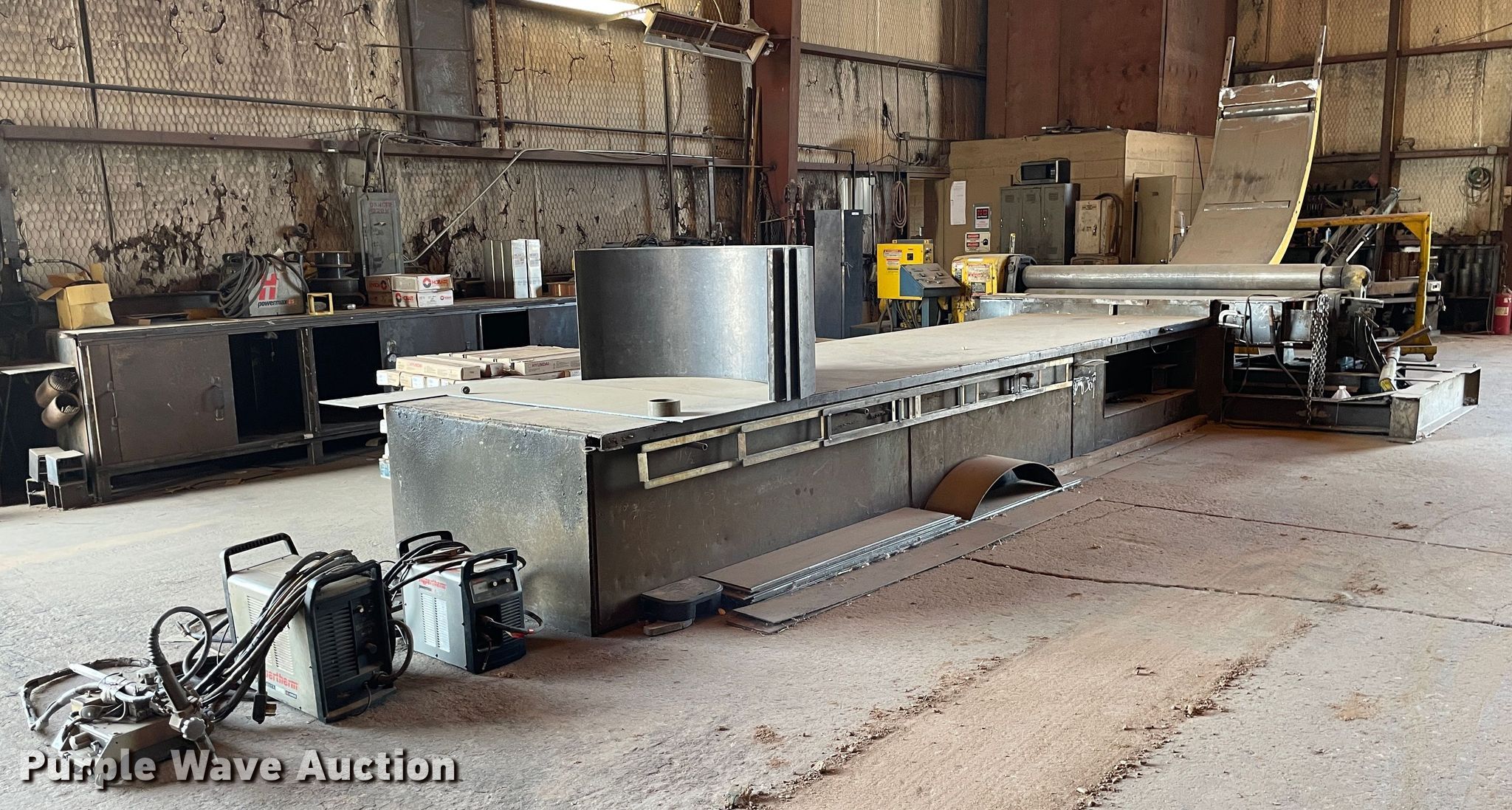Webb R3L-8008 plate bending roll. 17.5'W overall, 8' x 1/4" capacity , Three phase, Serial: RB75148. Hypertherm Powermax 1000 G3 series plasma cutter. Hypertherm Powermax 65 plasma cutter. Hypertherm Victor plasma cutter. Steel workbench 21'L x 60"W x 31"H. Notes Contents included. Double T Industries Inc.. Rolla, KS 67954
