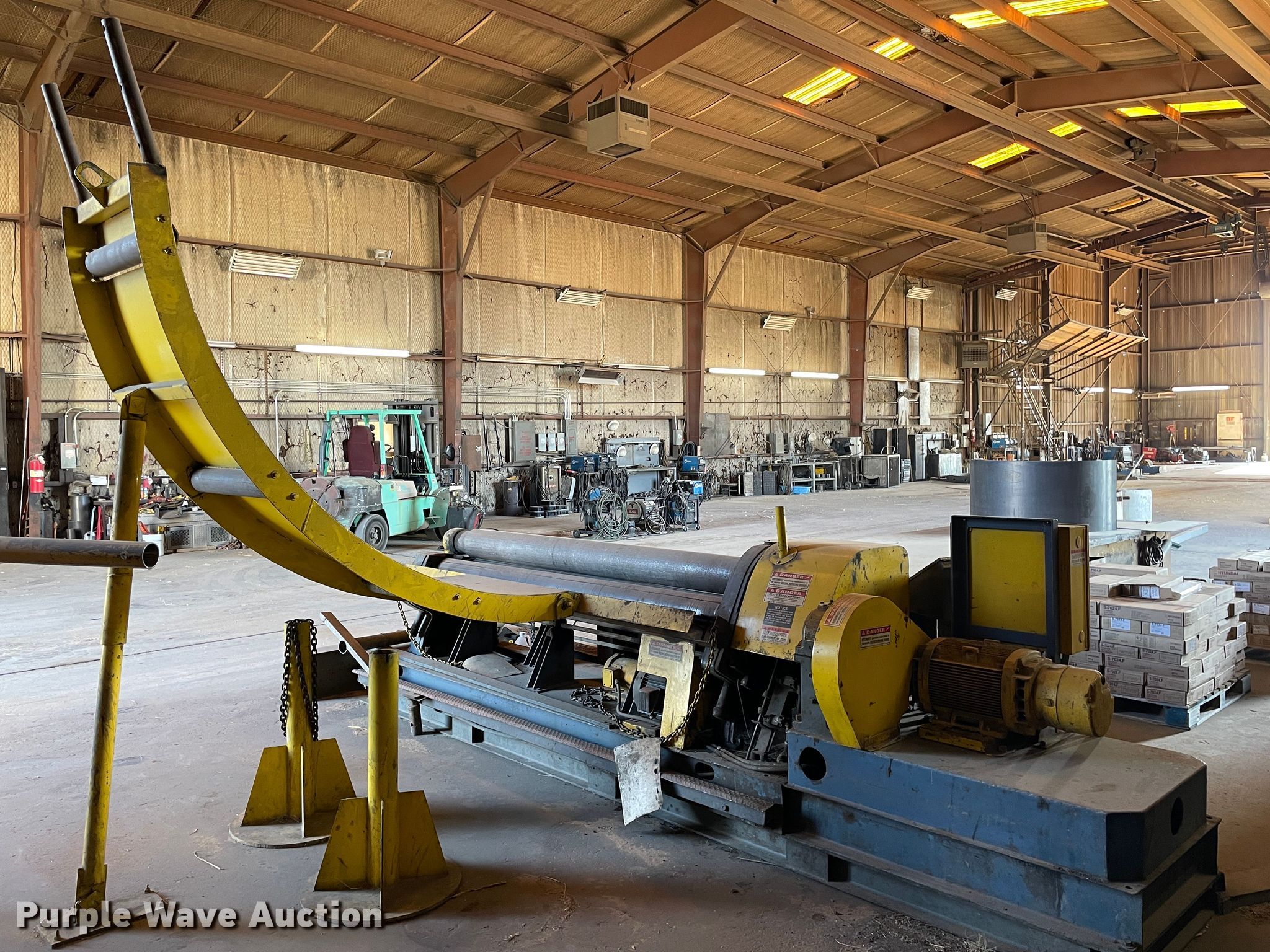 Purple Wave is selling a used Forming Equip. in Kansas. This item is a Webb R3L-8008 plate bending roll with the following: 17.5'W overall, 8' x 1/4" capacity, Three phase, Serial: RB75148