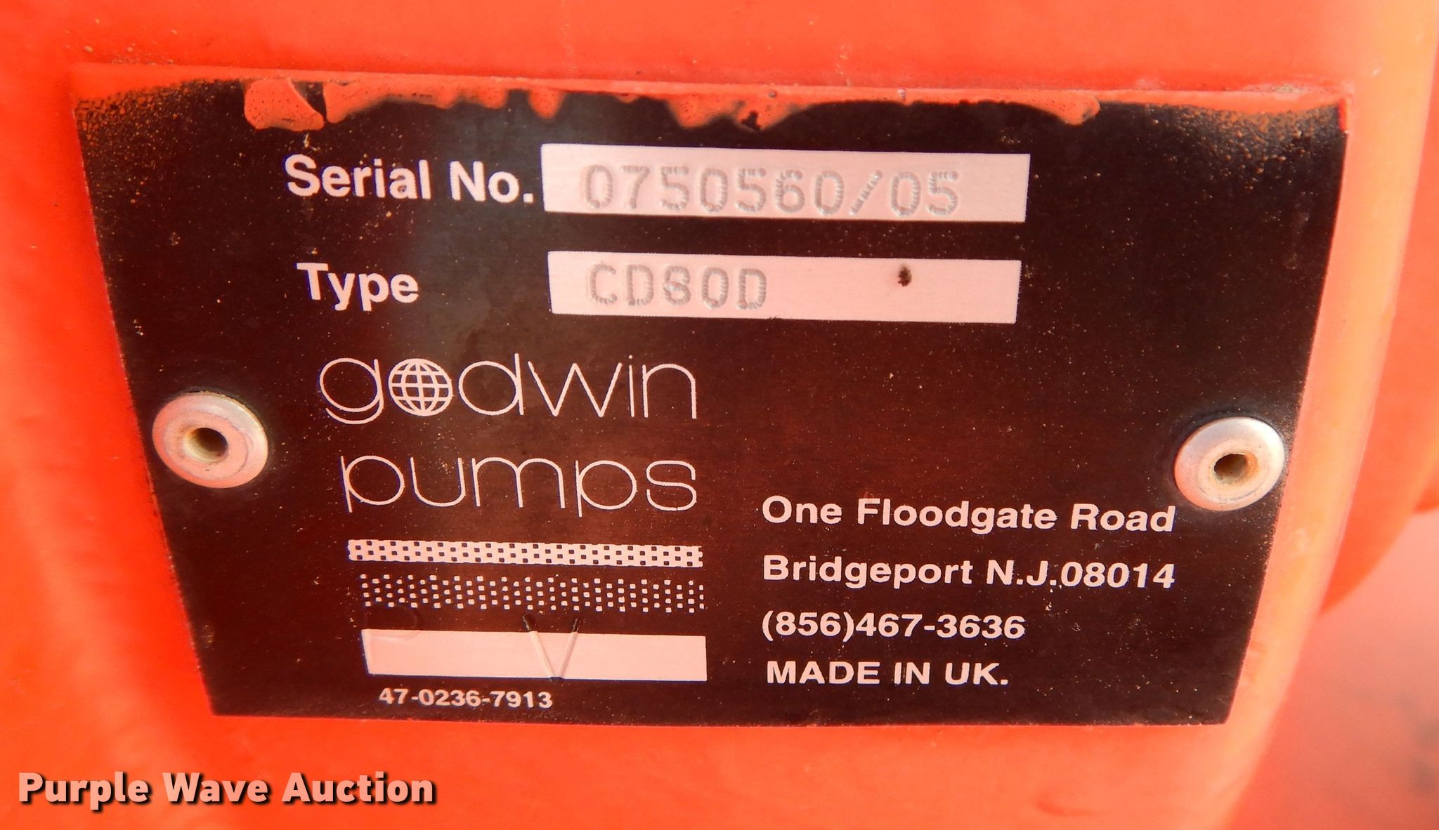 Purple Wave is selling a used Pump in Kansas. This item is a Godwin CD80D pump with the following: Yanmar 3TNM72-APB three cylinder diesel engine, 3" inlet/discharge, 175/80D15 tires, Serial: 0750560/05