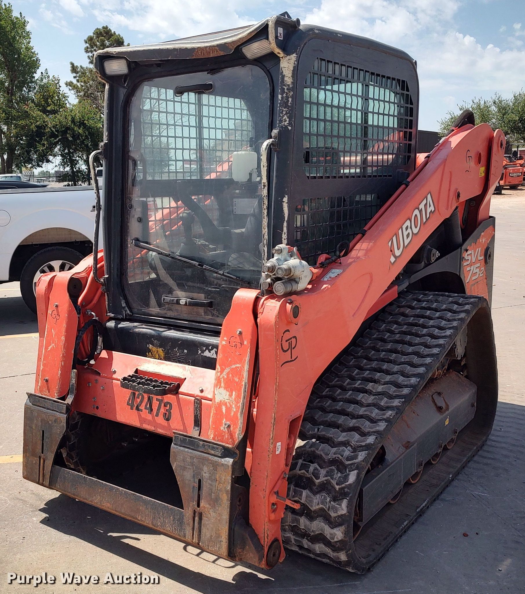 Purple Wave is selling a used Tracked Skid Steer Loader in Oklahoma. This item is a 2019 Kubota SVL75-2 tracked skid steer loader with the following: Hours: 1,453 on meter, Serial: 42473