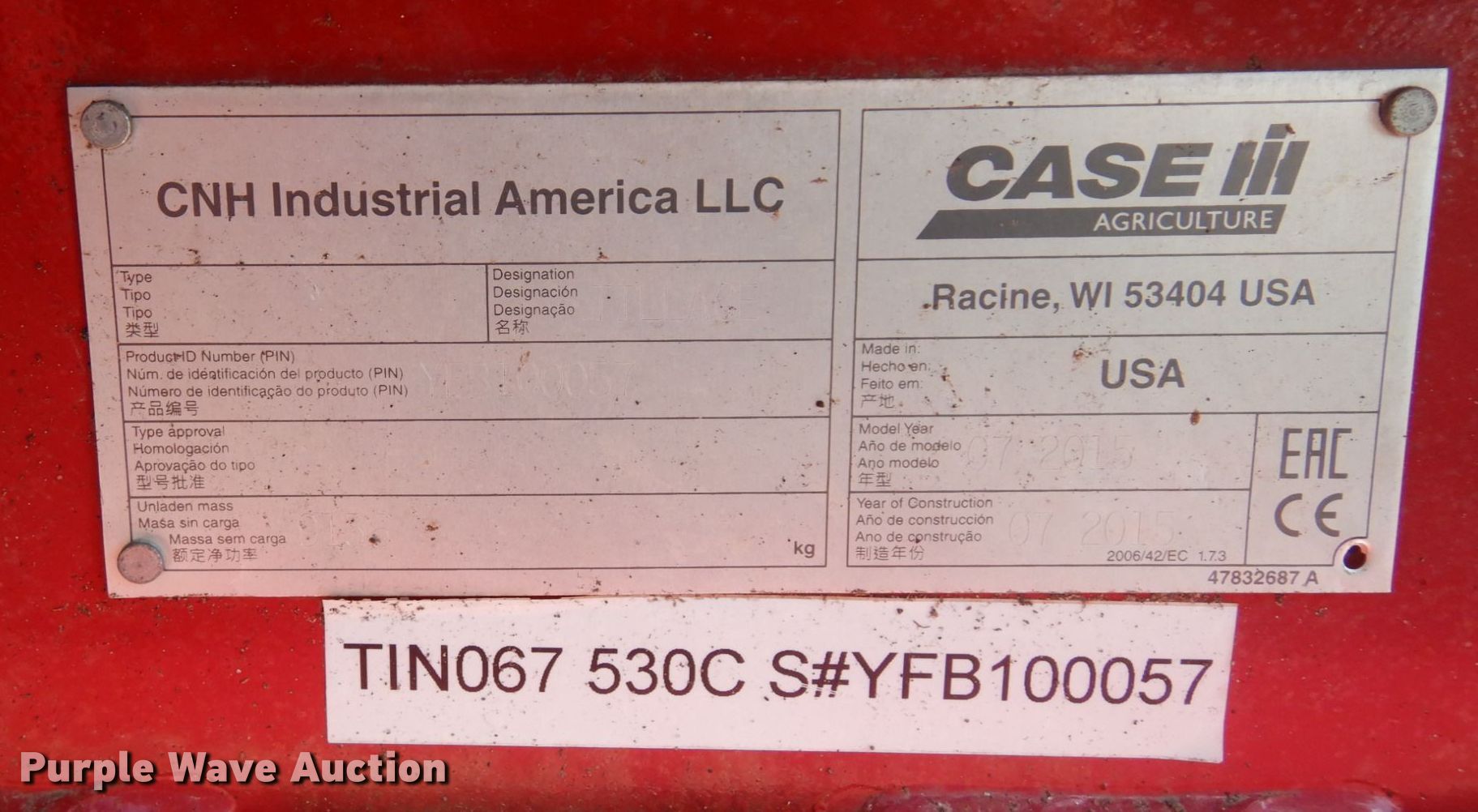Purple Wave is selling a used Disk Ripper in Minnesota. This item is a 2015 Case IH Ecolo-Tiger 530C disk ripper with the following: Overall width: 13' 9", Serial: YFB100057