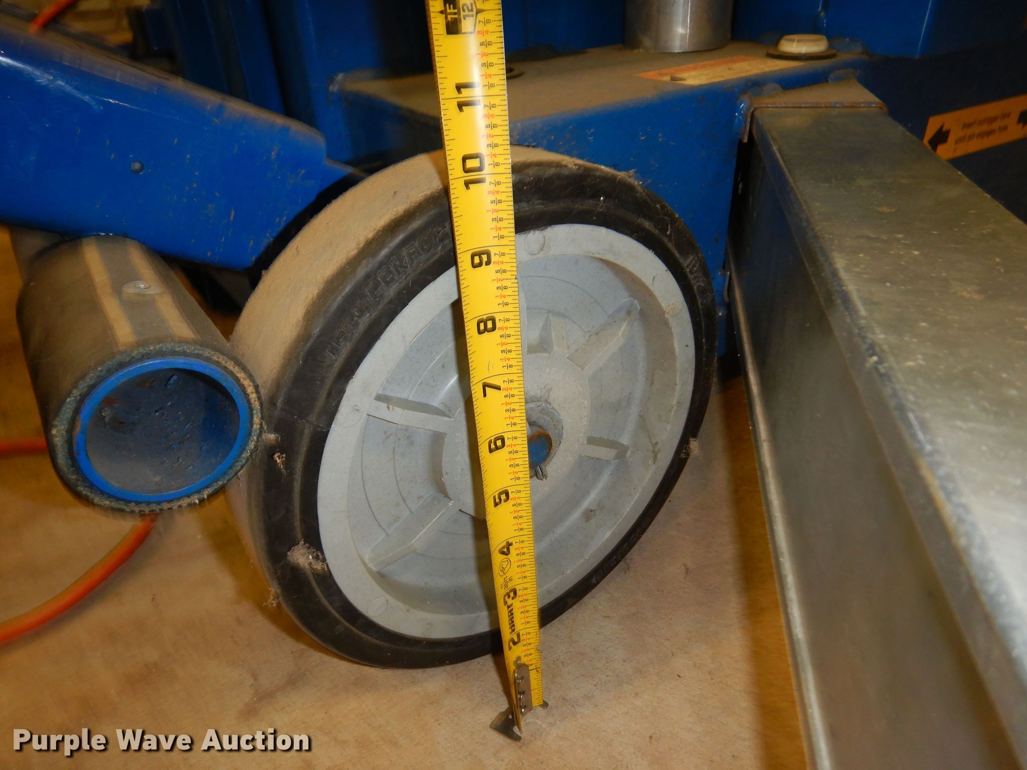 Up Right UL40 vertical lift. Serial: 18150. Electric Motor Volts: 110. Features Maximum lift capacity: 300 lbs, Maximum lift height: 40', Platform: 26" L x 26" W, Controls: Platform. Tires Tire size: 10", Solid. Pratt Community College. Pratt, KS 67124