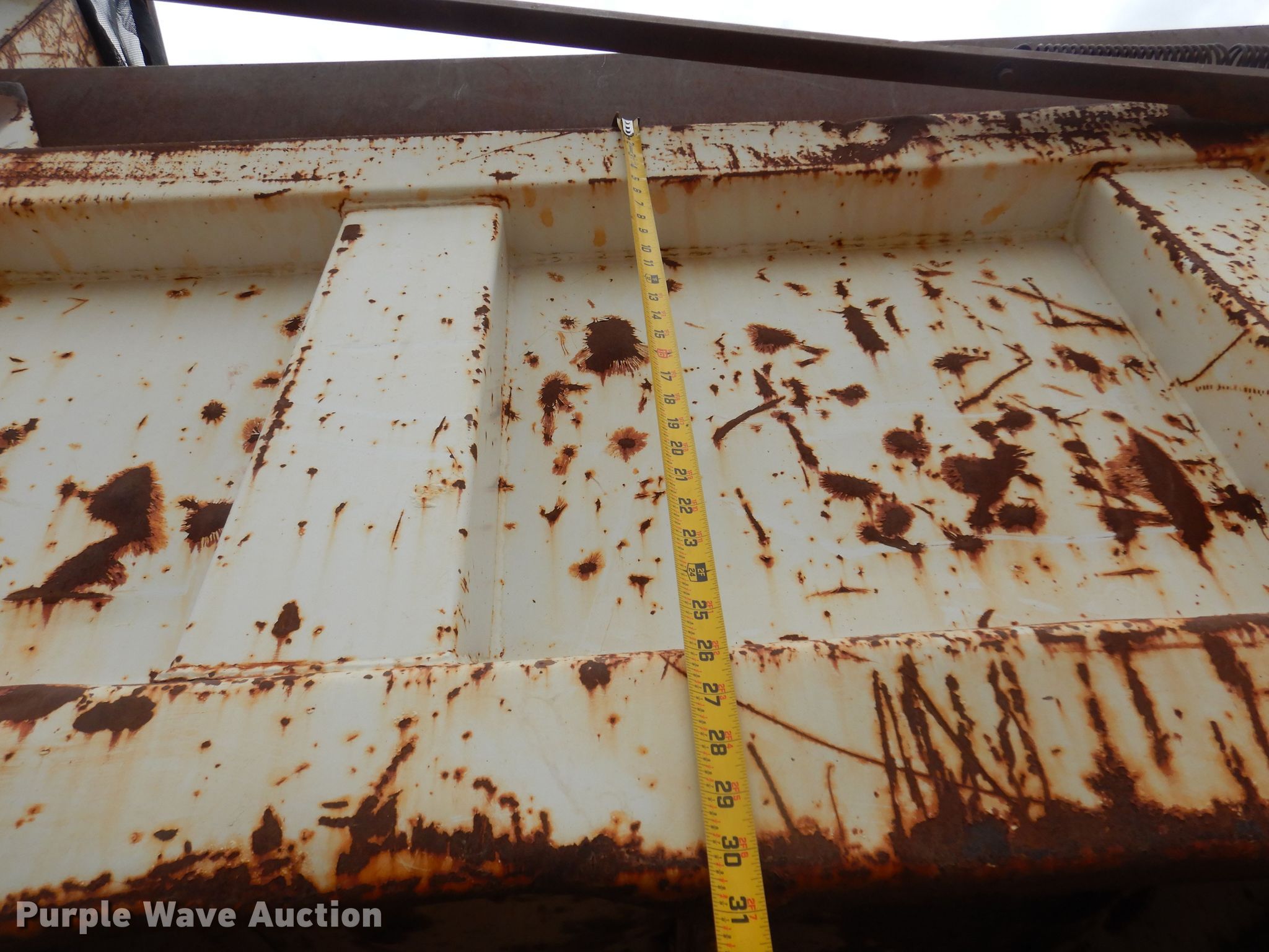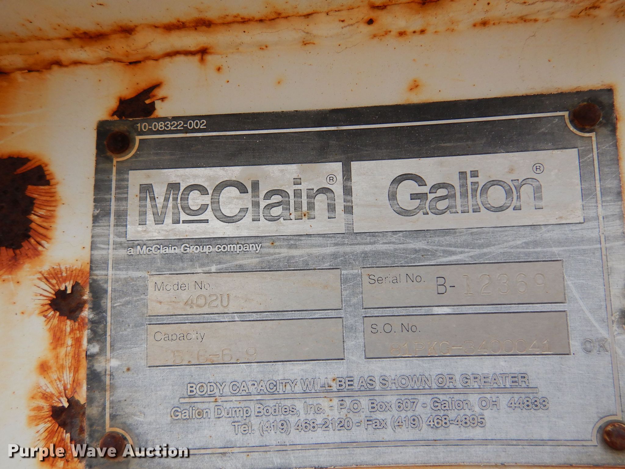 2001 International 4700 dump truck. Miles: 56,709 on odometer, Hours: 6,595 on meter, VIN: 1HTSCAAN51H266278, Unit #: 978, Sale#: 2307-KP. Engine Displacement: 7.6L, Cylinders: 6, Fuel type: Diesel. Transmission Automatic. Chassis Axles: Single, Suspension: Spring, Brakes: Air, PTO. Interior Heat. Features Dump bed McClain 402U, Capacity: 6.9 cu.yd., 10' L x 96" W, Side height: 30", Side board height: 8", Bed type: Steel, Plow Width: 120". Tires Size: 11R22.5. Oklahoma title. Oklahoma State University. 2024 West Farm Road. Stillwater, OK 74078