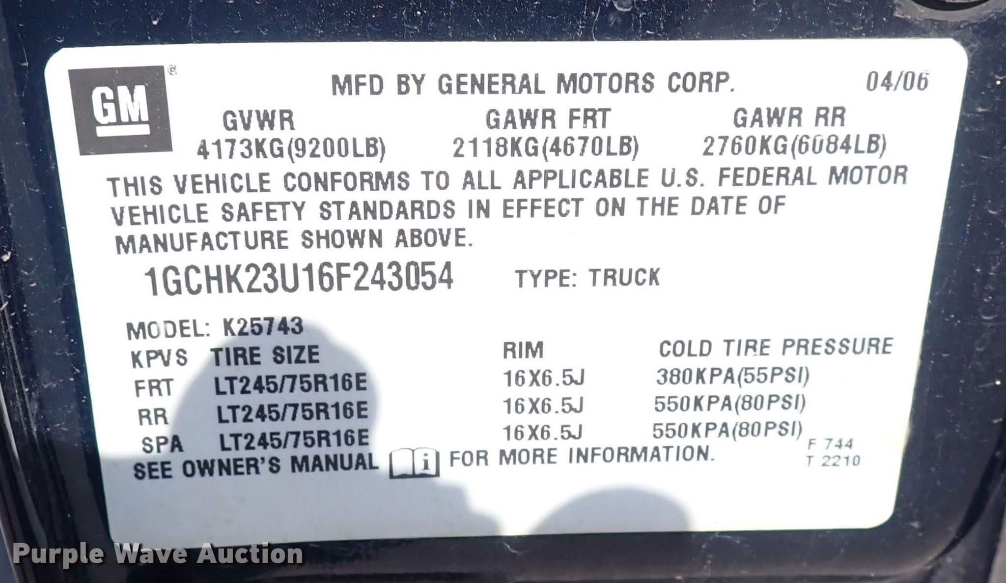 Purple Wave is selling a used 1/2 Ton Pickup or Van in Kansas. This item is a 2006 Chevrolet Silverado 2500HD Crew Cab pickup truck with the following: Miles: 100,403 on odometer, VIN: 1GCHK23U16F243054
