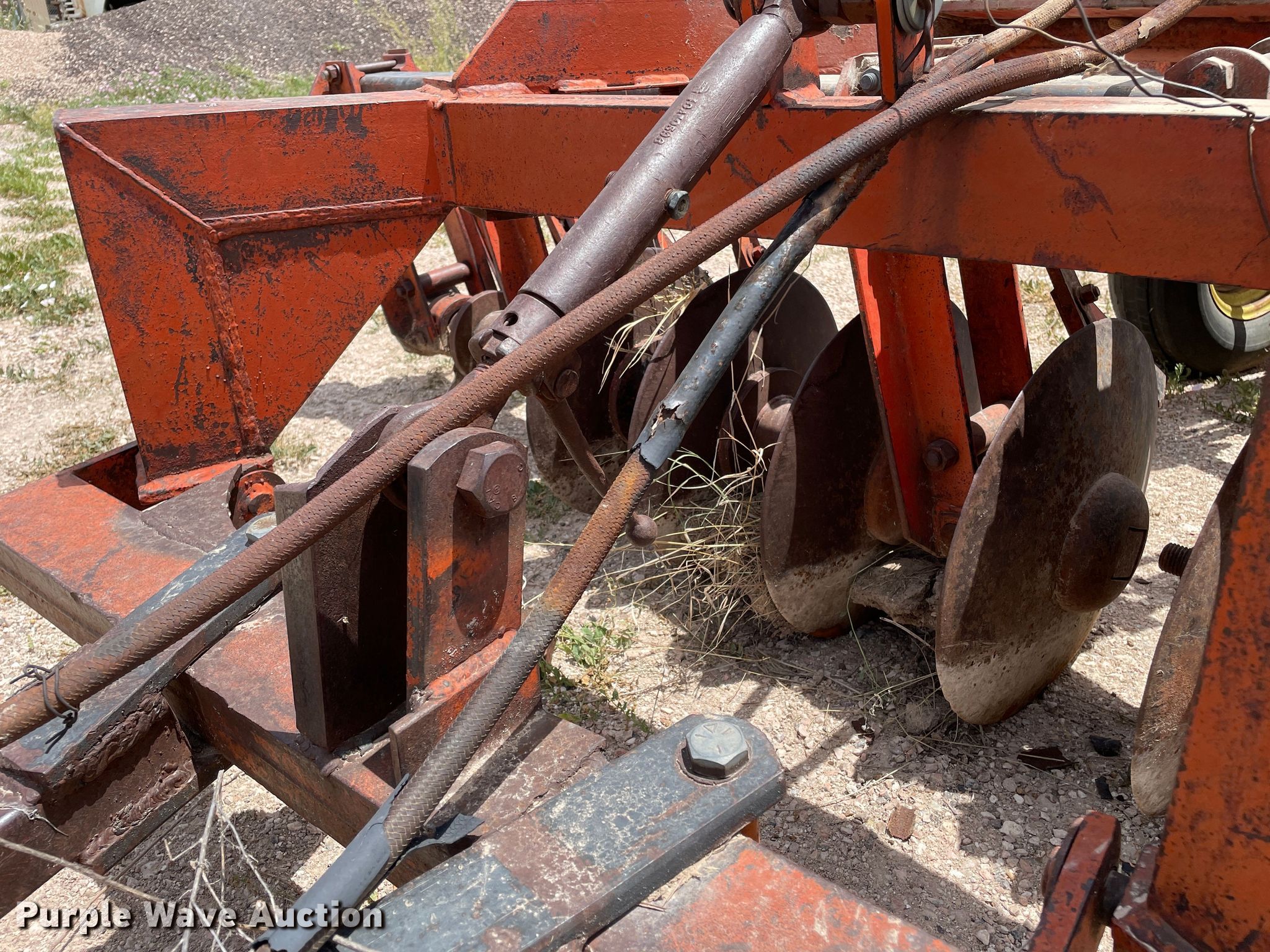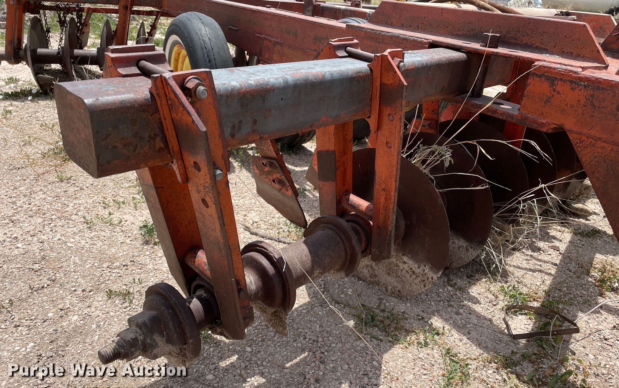 Bush Hog 146 offset disk. Serial: 6362. Features Front blades Diameter: 22", Spacing: 9", Rear blades Diameter: 20", Spacing: 9", Disk scrapers, Operation Hydraulic lift, Leveler: Manual. Tires Tire size: 215/75R14. Hansford County, TX. 10478 County Road V. Spearman, TX 79081