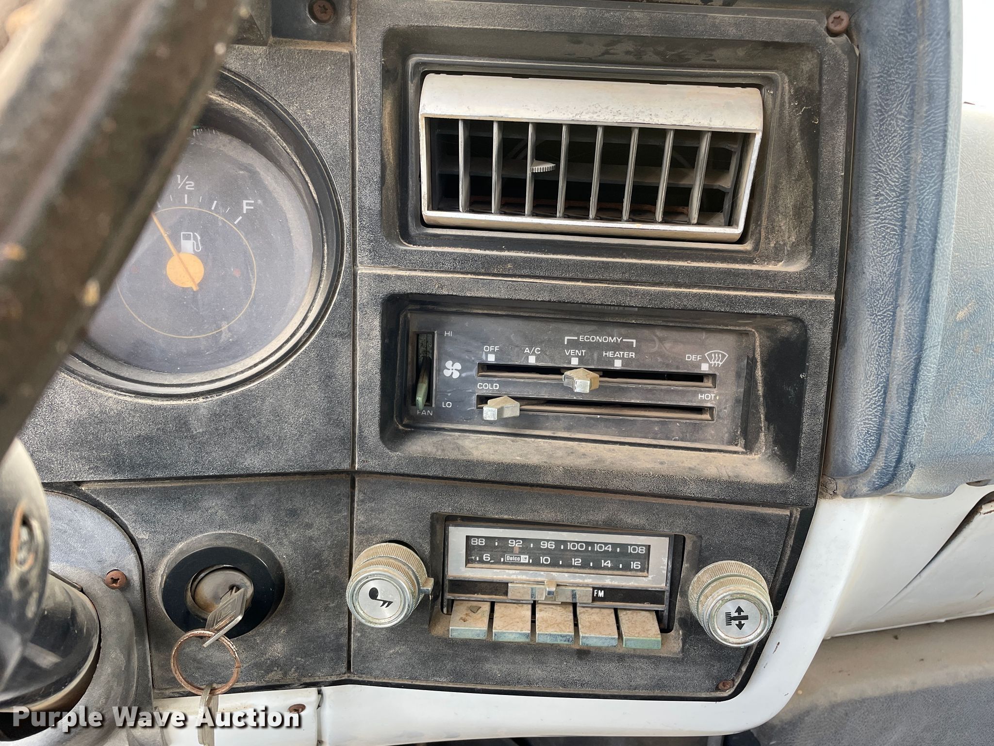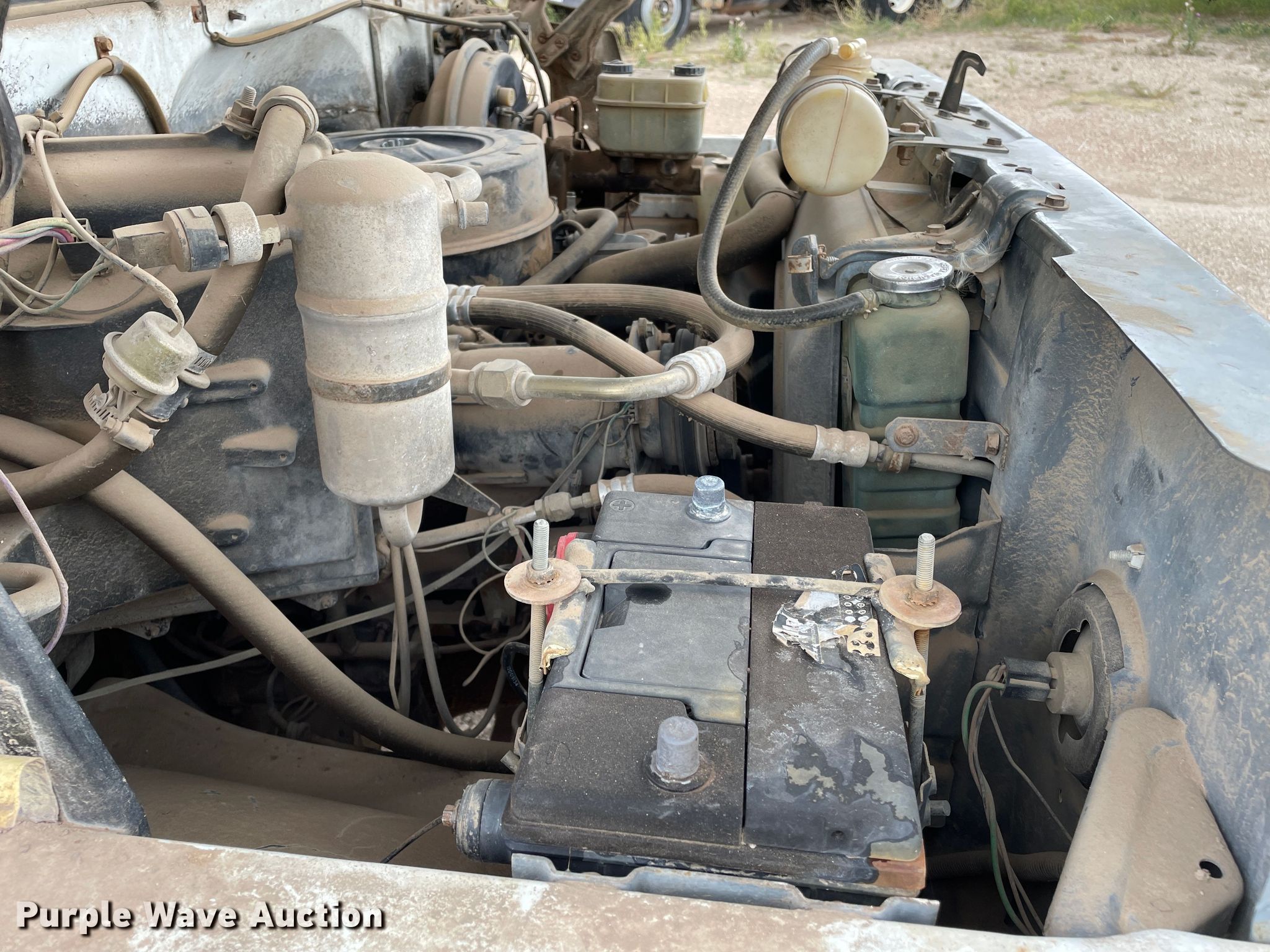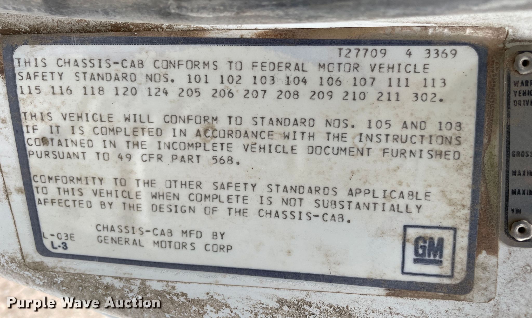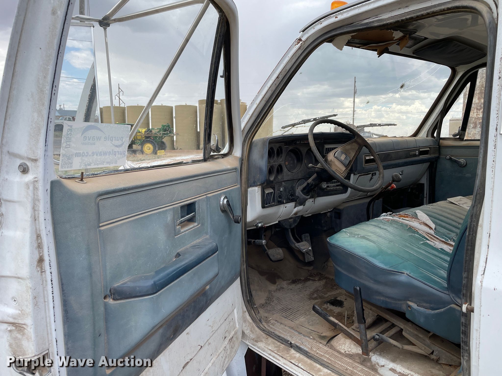 1984 GMC C6000 dump flatbed truck. Miles: 94,999 on odometer, VIN: 1GDG6D1AXEV535127. Engine Displacement: 5.7L, Cylinders: 8, Fuel type: Gas. Transmission Manual, Speed: 4, plus 2. Chassis Axles: Single, Suspension: Spring, Brakes: Hydraulic, PTO, GVWR: 20,000 lbs. Interior AC, Heat. Features Dump flatbed Tradewind, 14' L x 95" W, Removable sides, Ram: Double. Tires Size: 9.00R20. Notes Windshield chipped or cracked. Texas title. Title distribution may be delayed up to 30 days from verification of funds. Hansford County, TX. 702 Front Street. Gruver, TX 79040