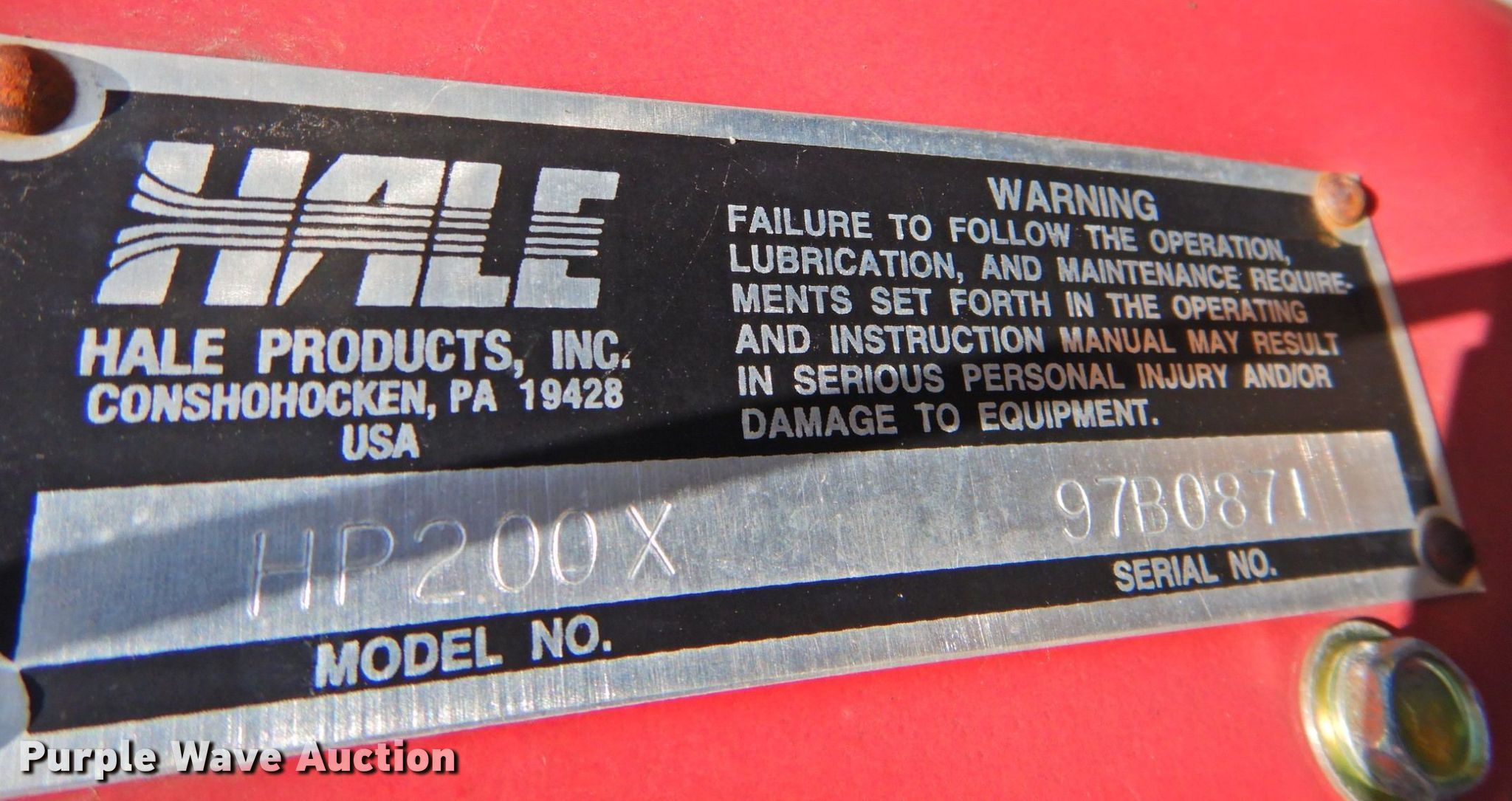 Purple Wave is selling a used Pump in Kansas. This item is a Hale HP200X water pump with the following: Serial: 97B0871