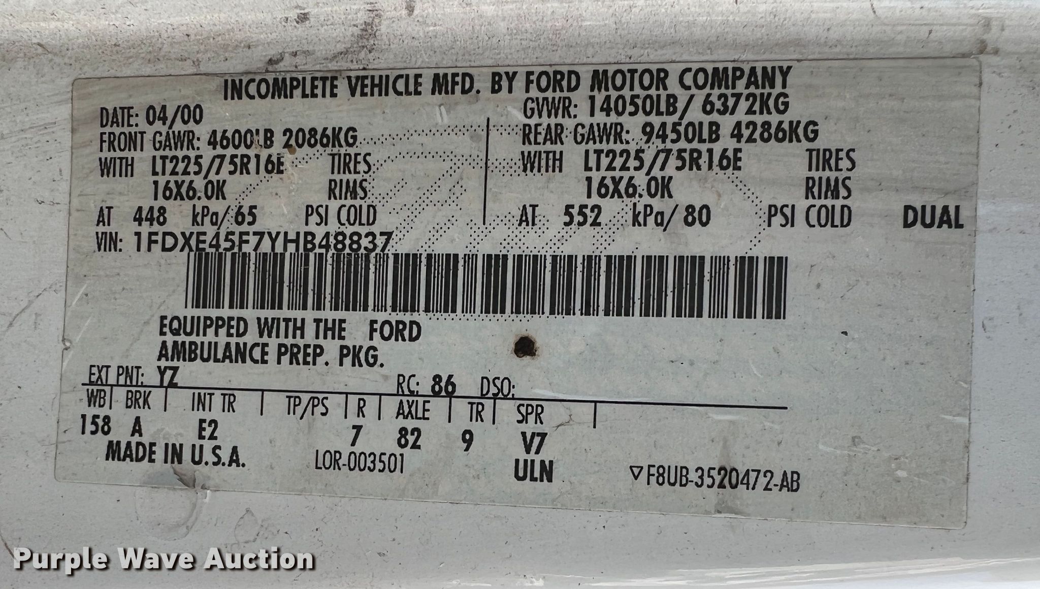 2000 Ford E450 Super Duty ambulance | SOLD! August 30 Government Auction