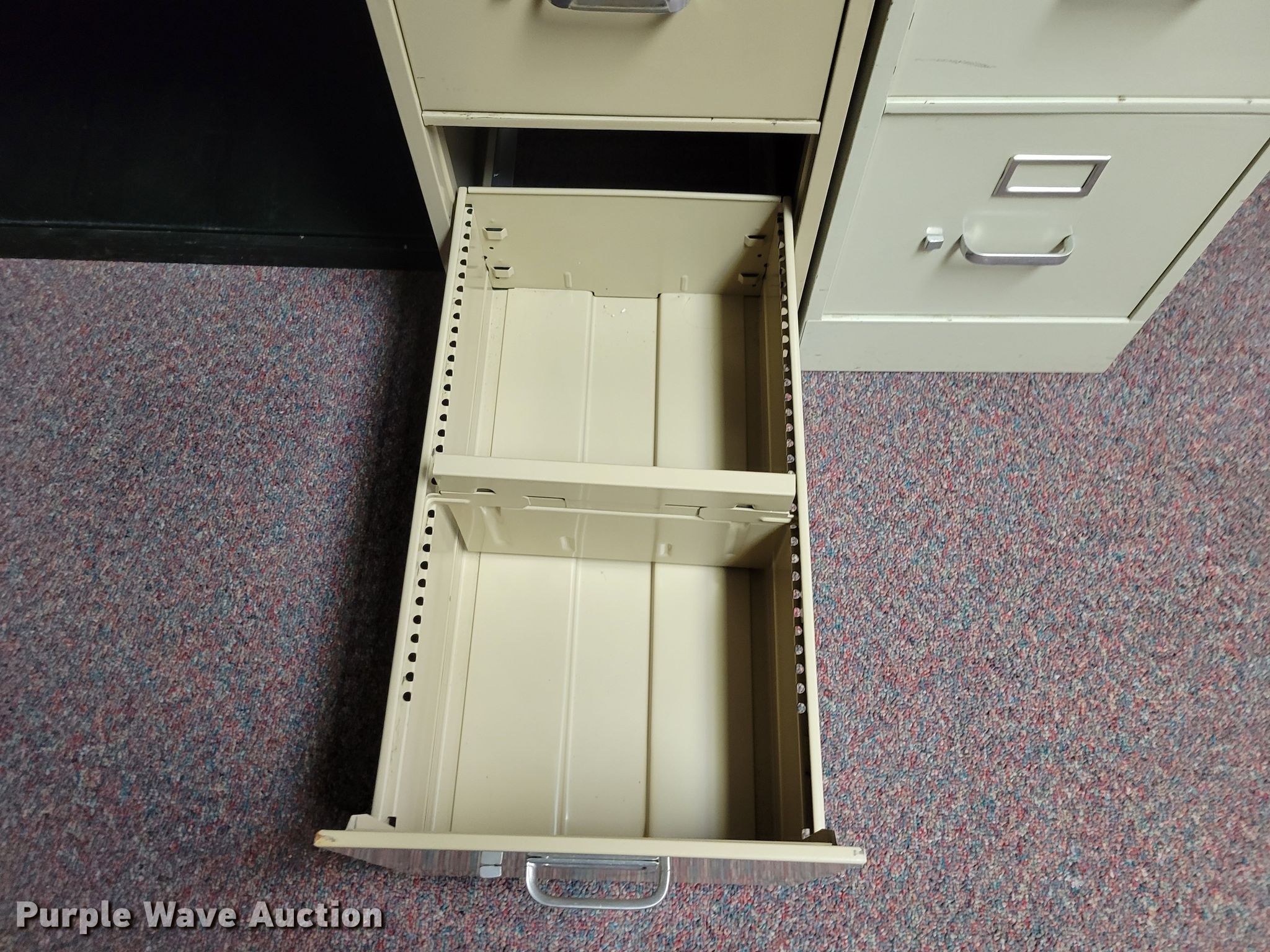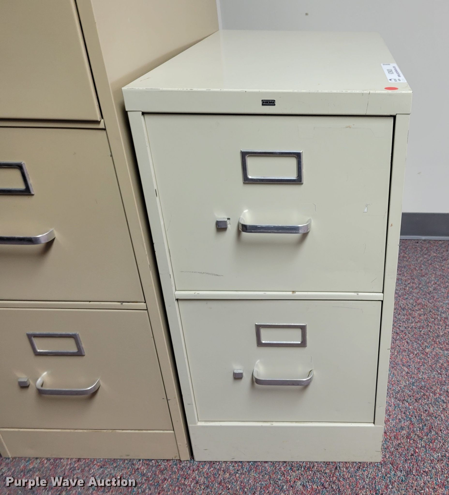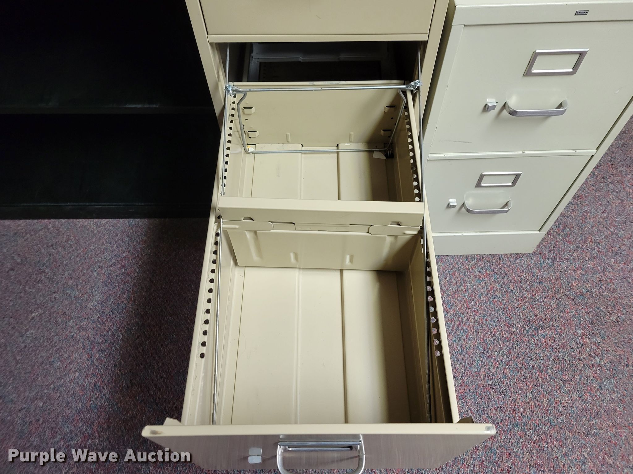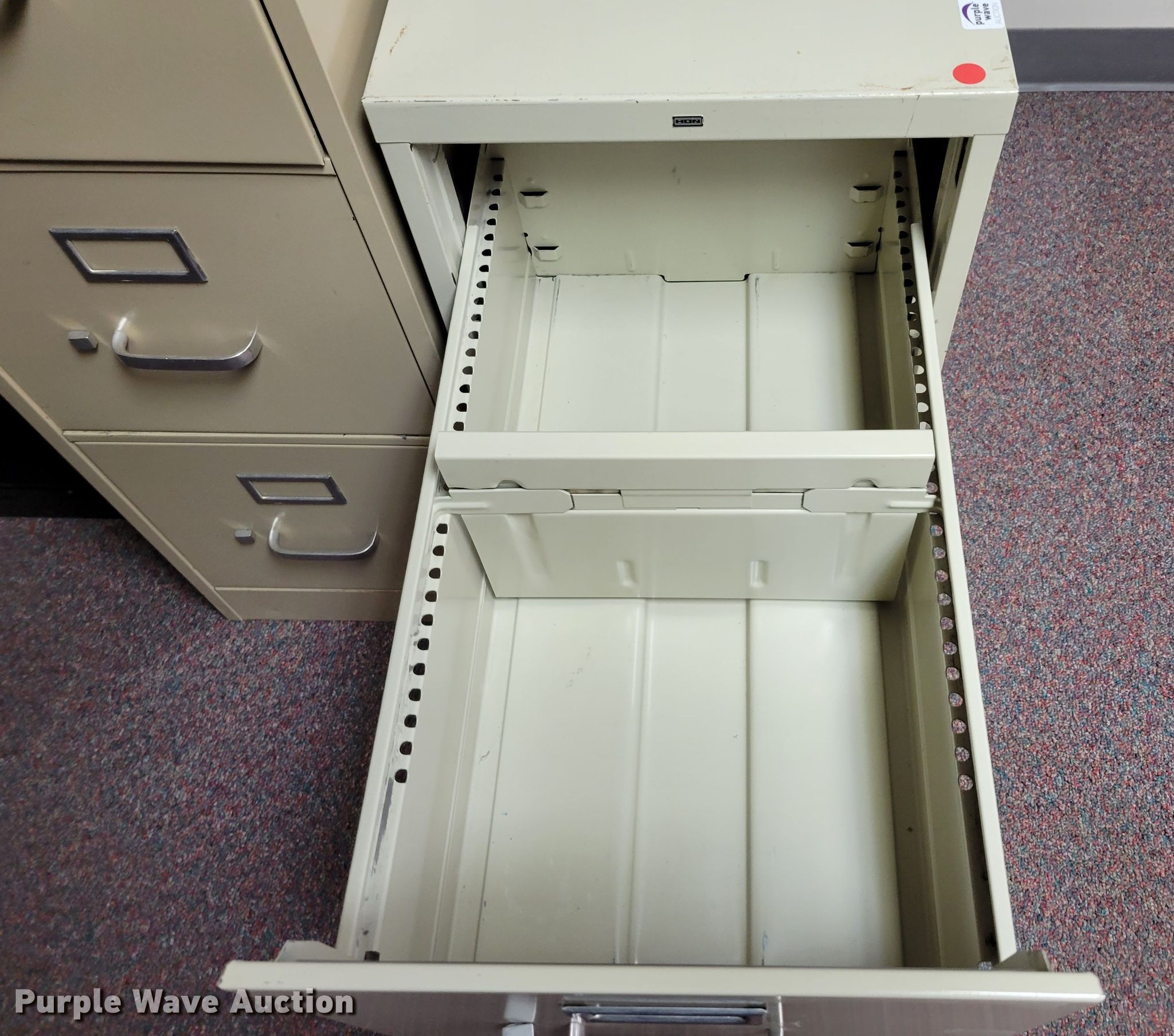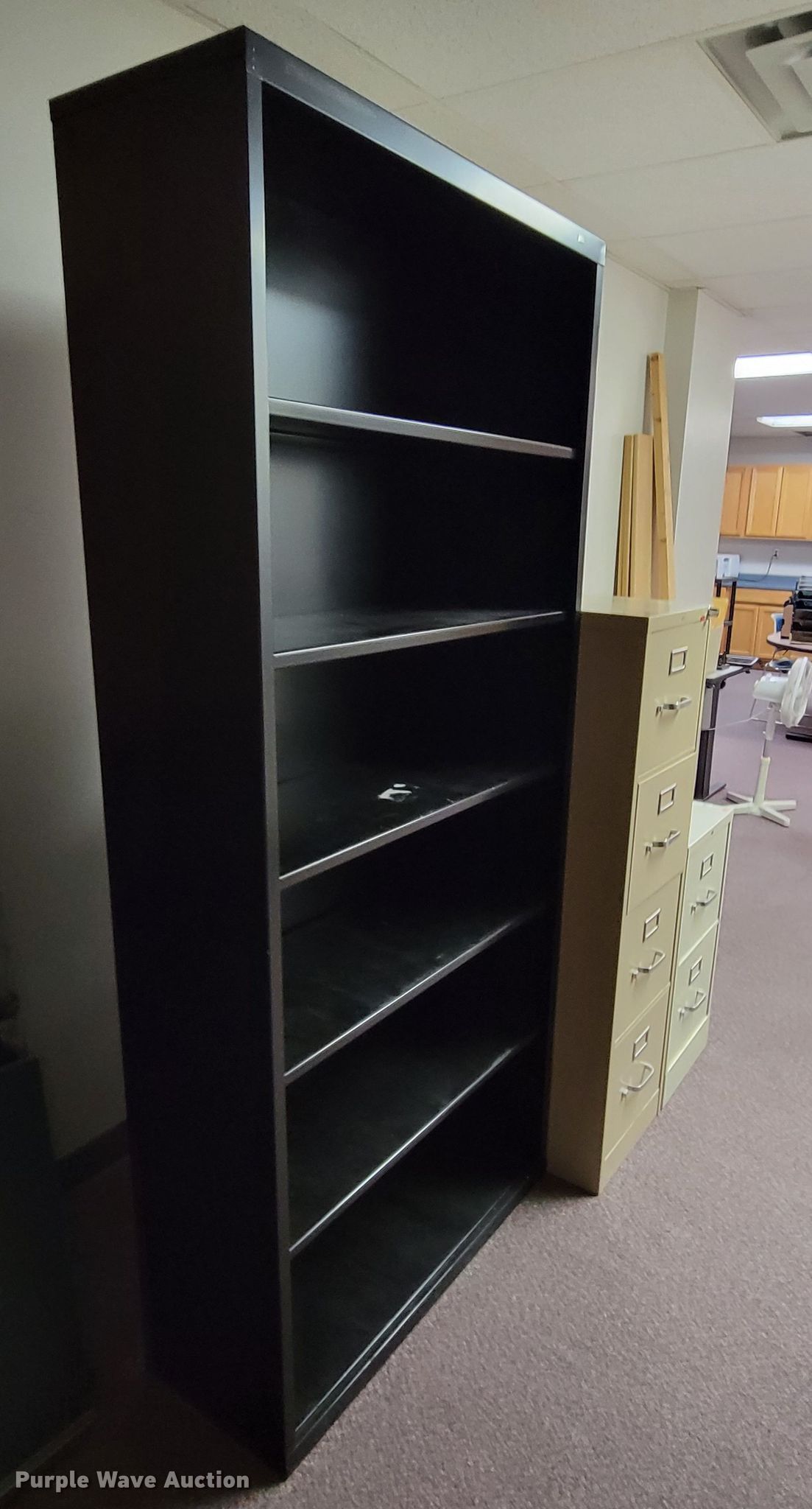 Purple Wave is selling a used Office Supplies and Equip. in Nebraska. This item is a Office supplies and equipment with the following: 4.5"W x 13.5"D x 6'6"H metal bookshelf, Four drawer file cabinet, Two drawer file cabinet