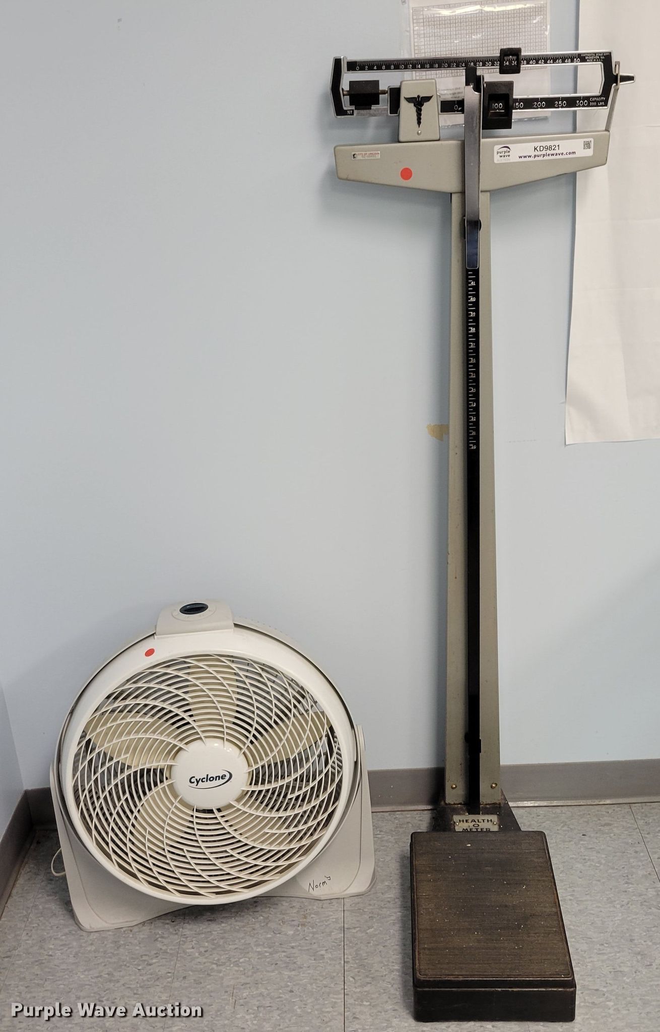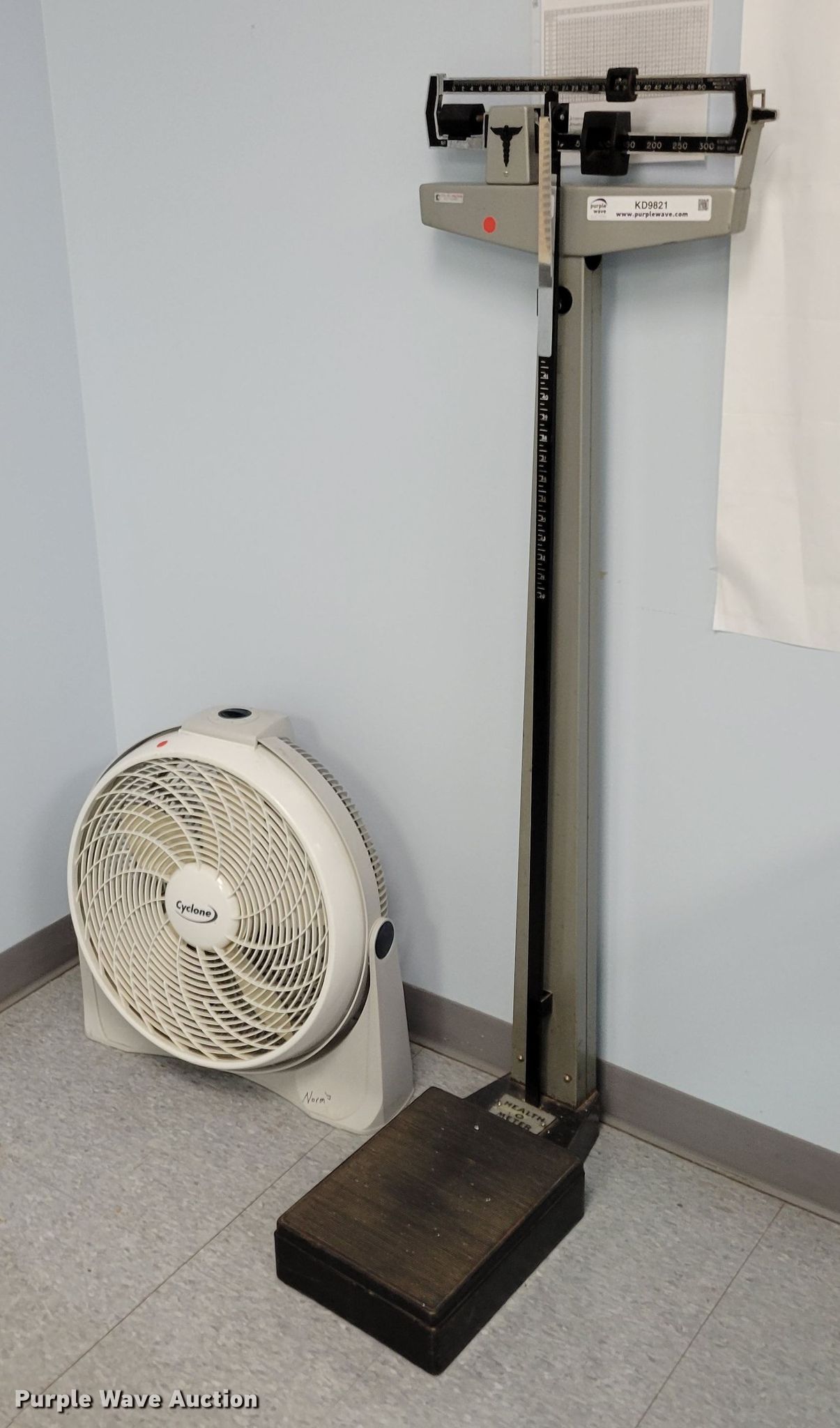 Purple Wave is selling a used Office Supplies and Equip. in Nebraska. This item is a Office supplies and equipment with the following: Health meter scale, 300 lbs capacity, Cyclone fan