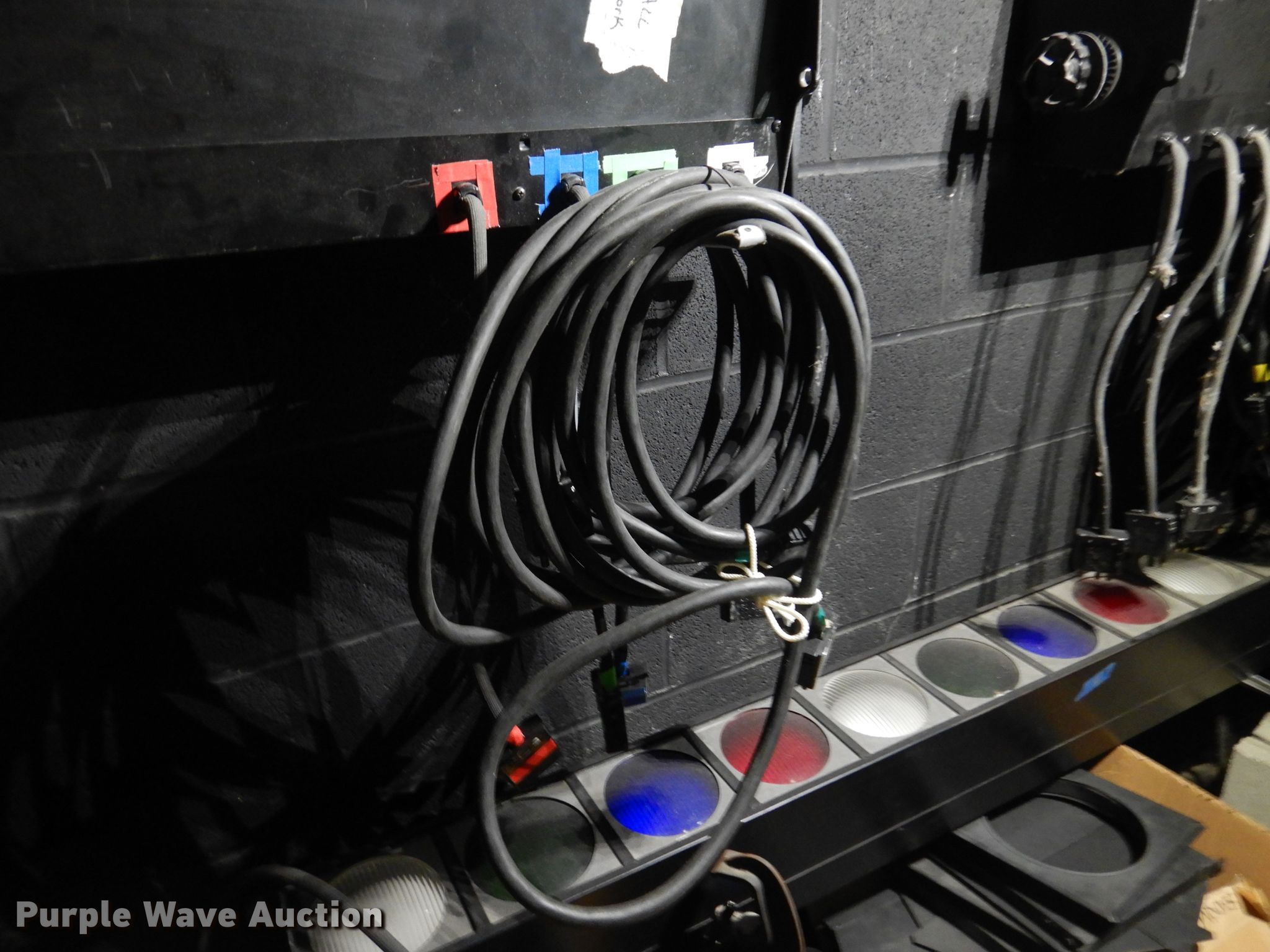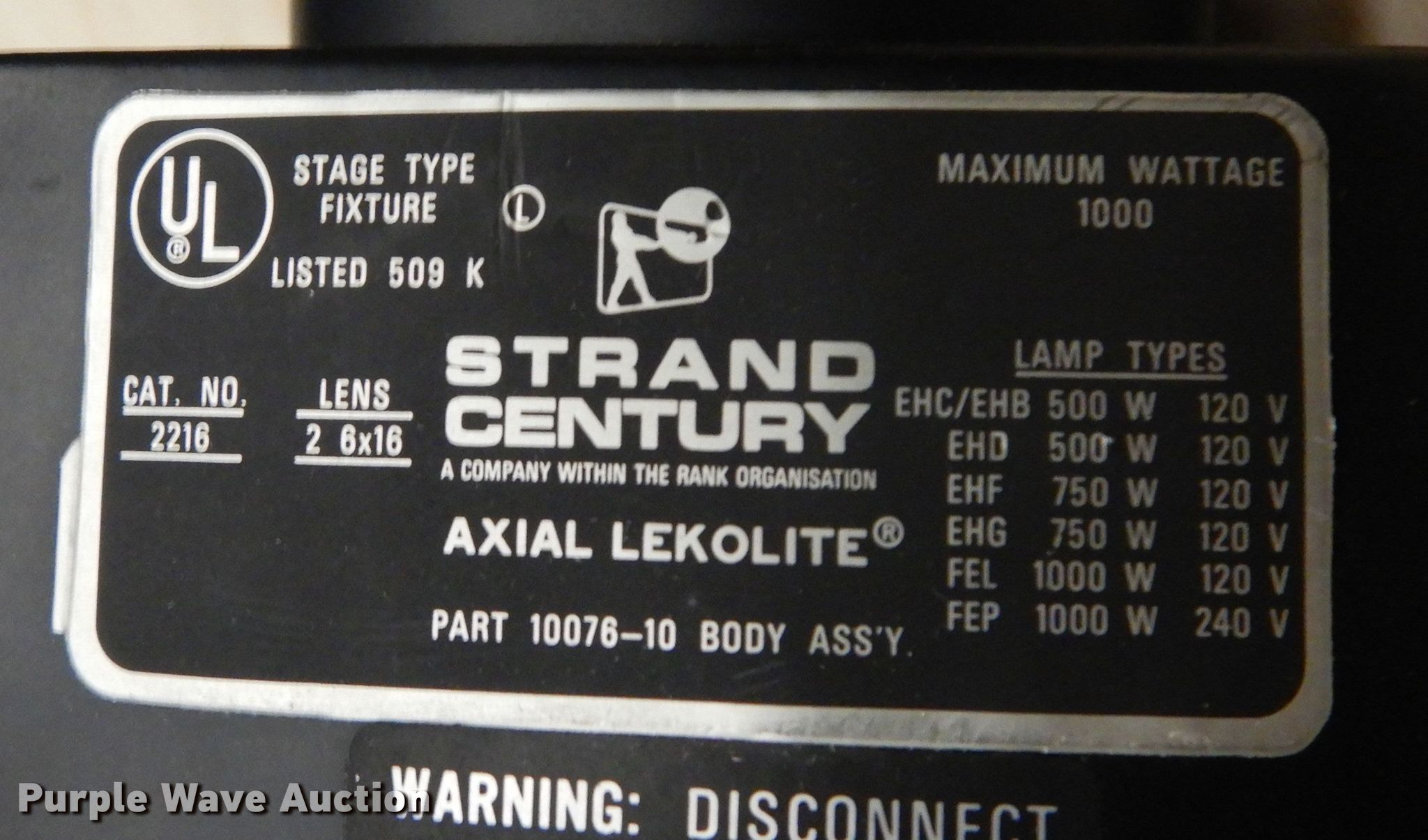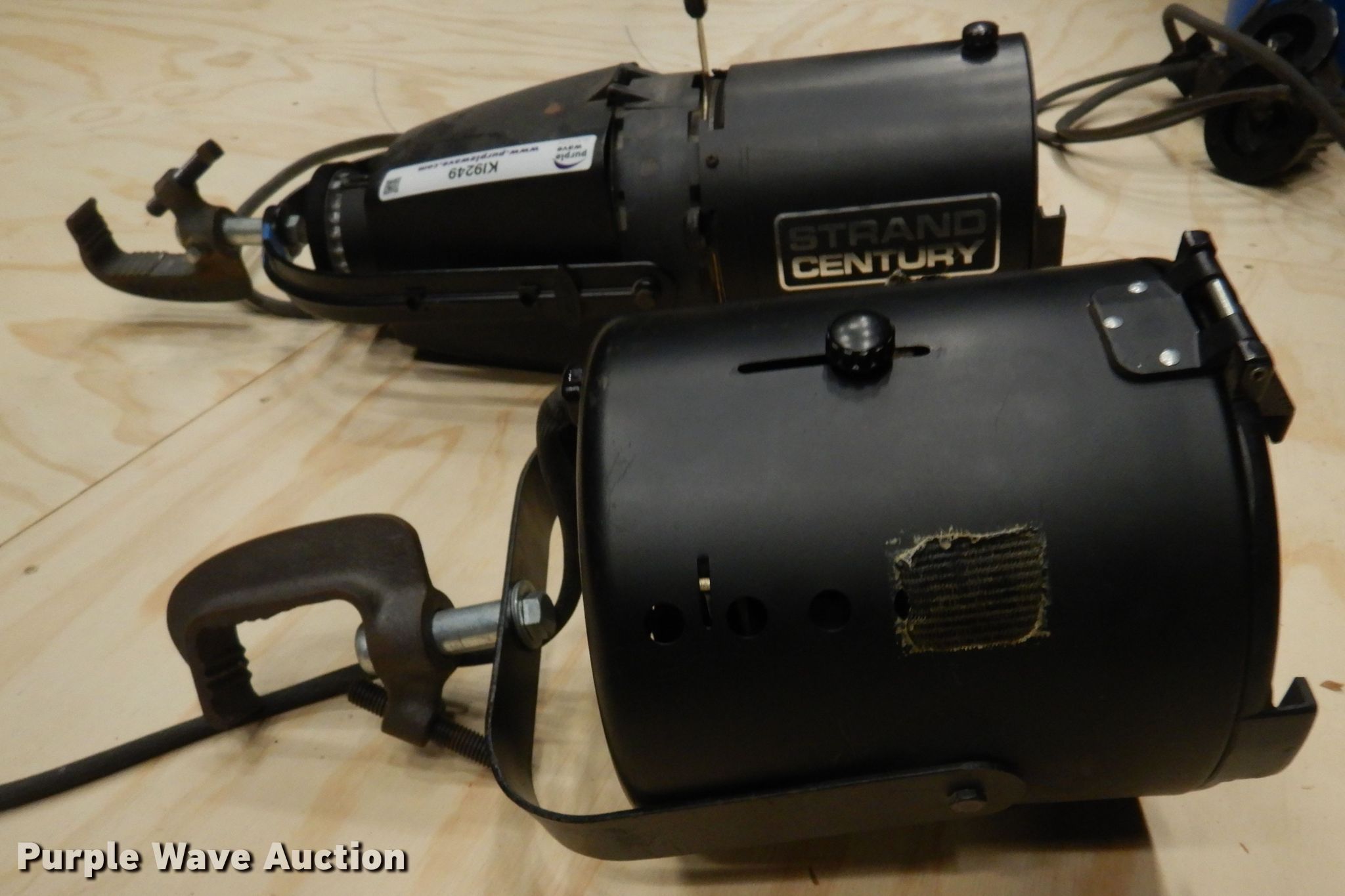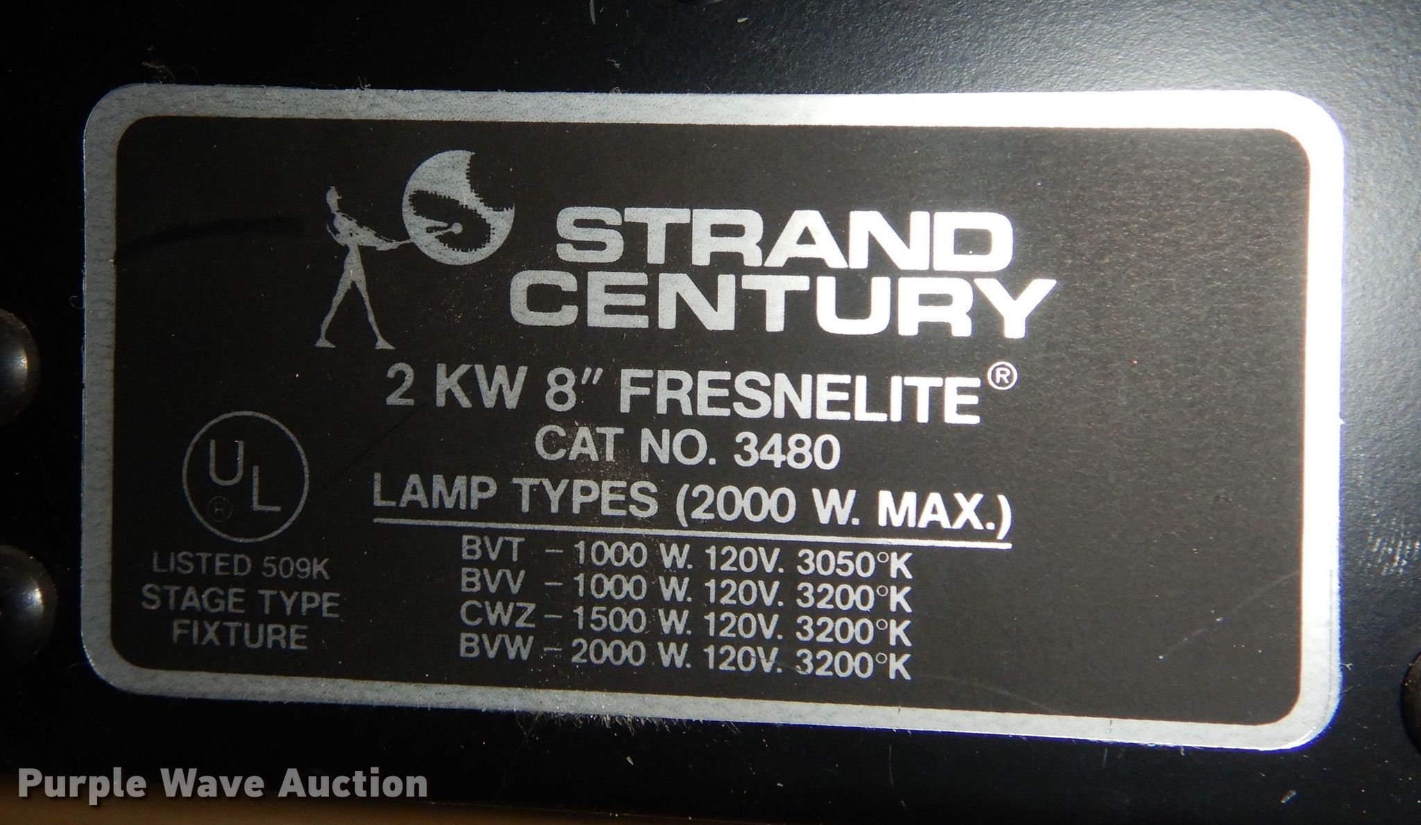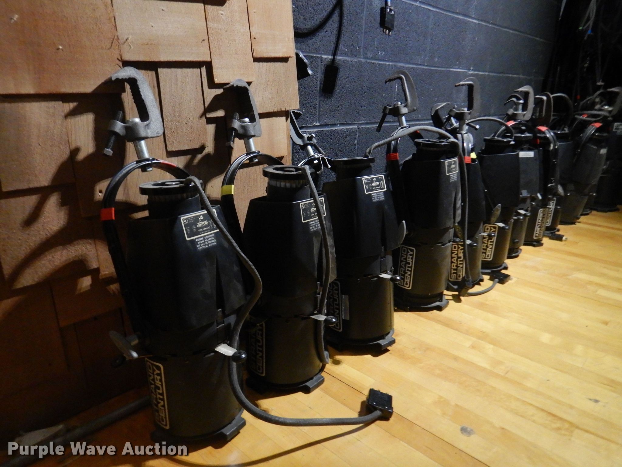 Purple Wave is selling a used Office Supplies and Equip. in Kansas. This item is a Stage lighting with the following: Approx. 11 Fresnelite 2KW 8" lights, Approx. 16 Strand Century 3342 lights, Approx. 40 Strand Century axial lekolights, (27) colored, (13) empty