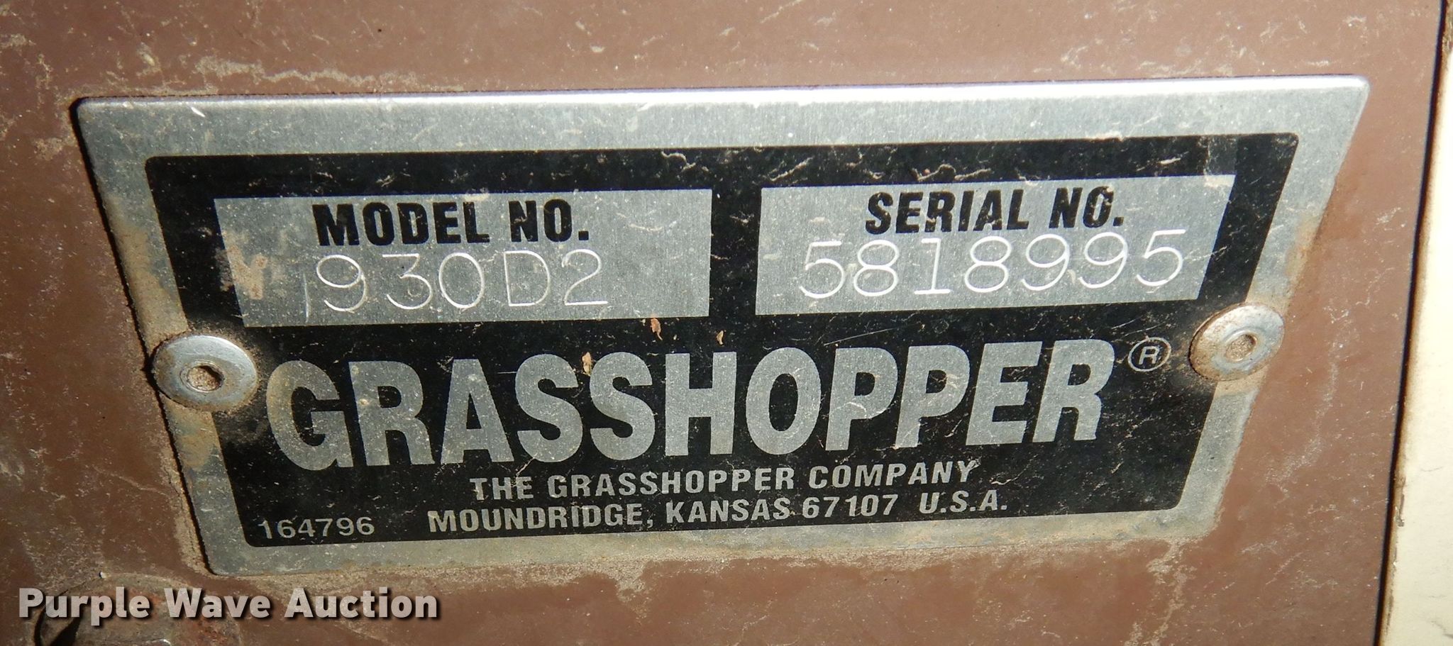 Purple Wave is selling a used Commercial Turf Mower in Kansas. This item is a Grasshopper 930D ZTR lawn mower with the following: Hours: Unknown, Cutting width: 61", Serial: 5818995