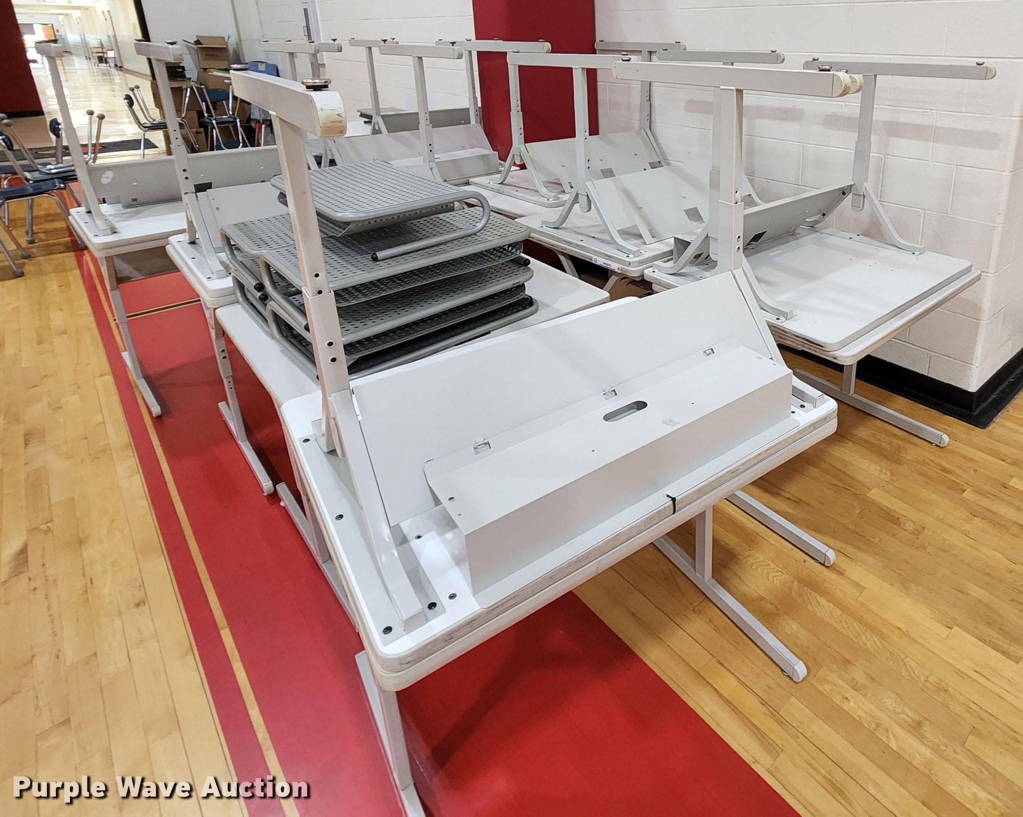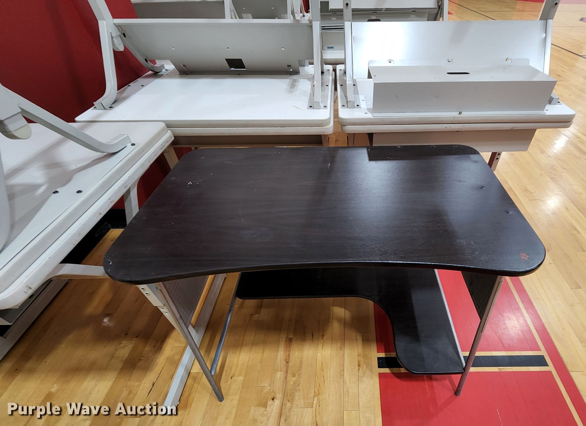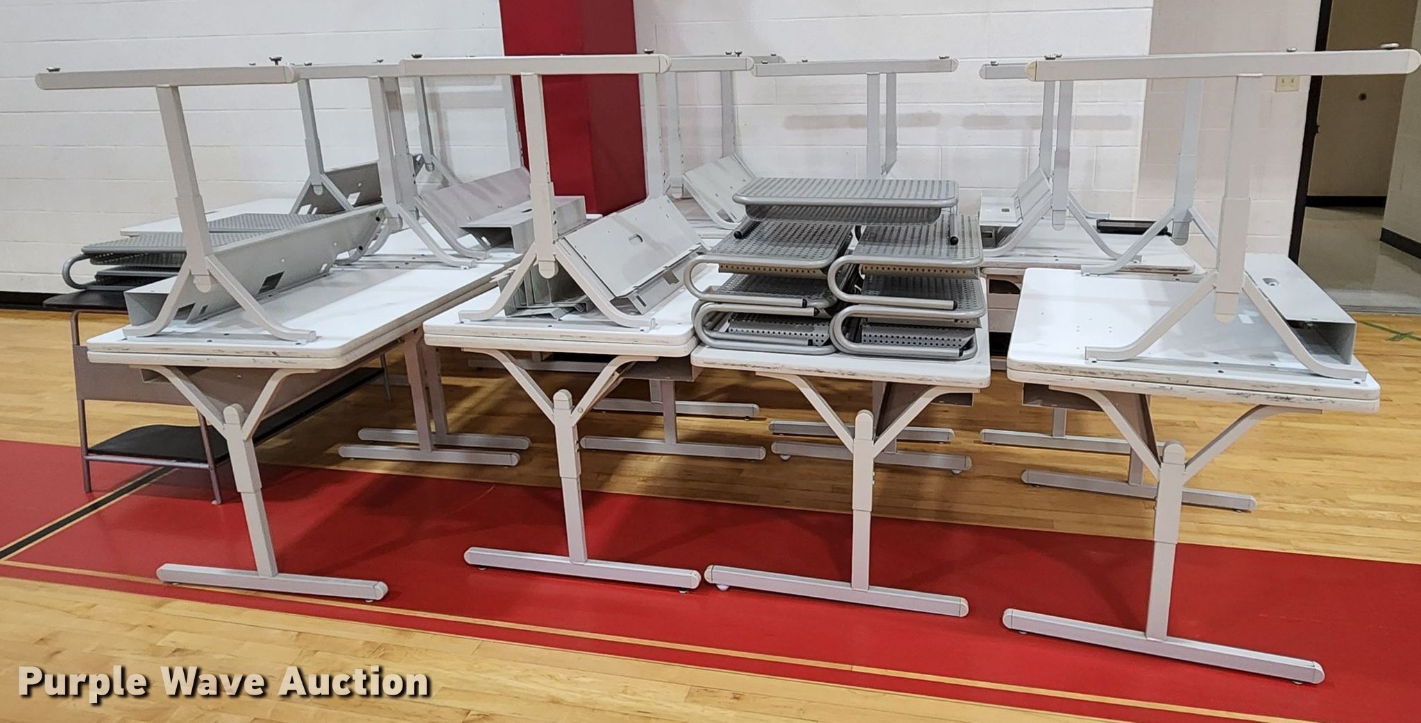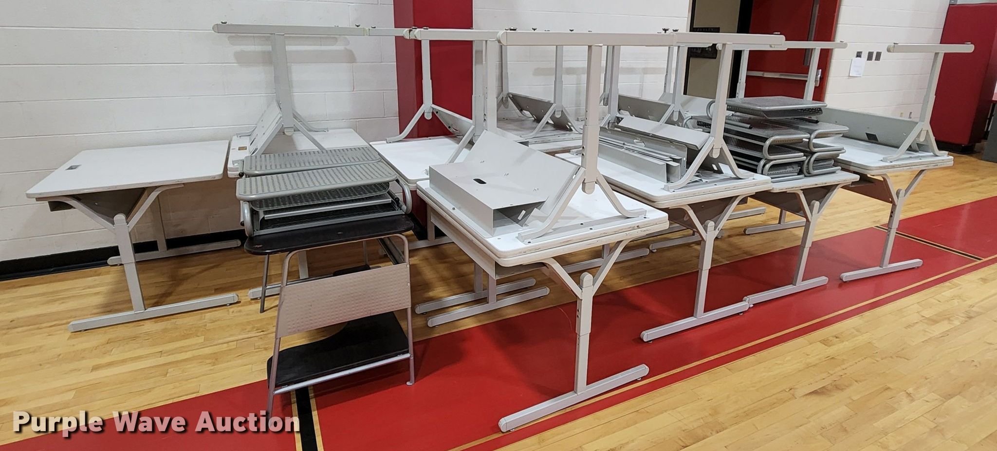 Purple Wave is selling a used Office Supplies and Equip. in Missouri. This item is a Office supplies and equipment with the following: (11) computer stands, (19) computer tables
