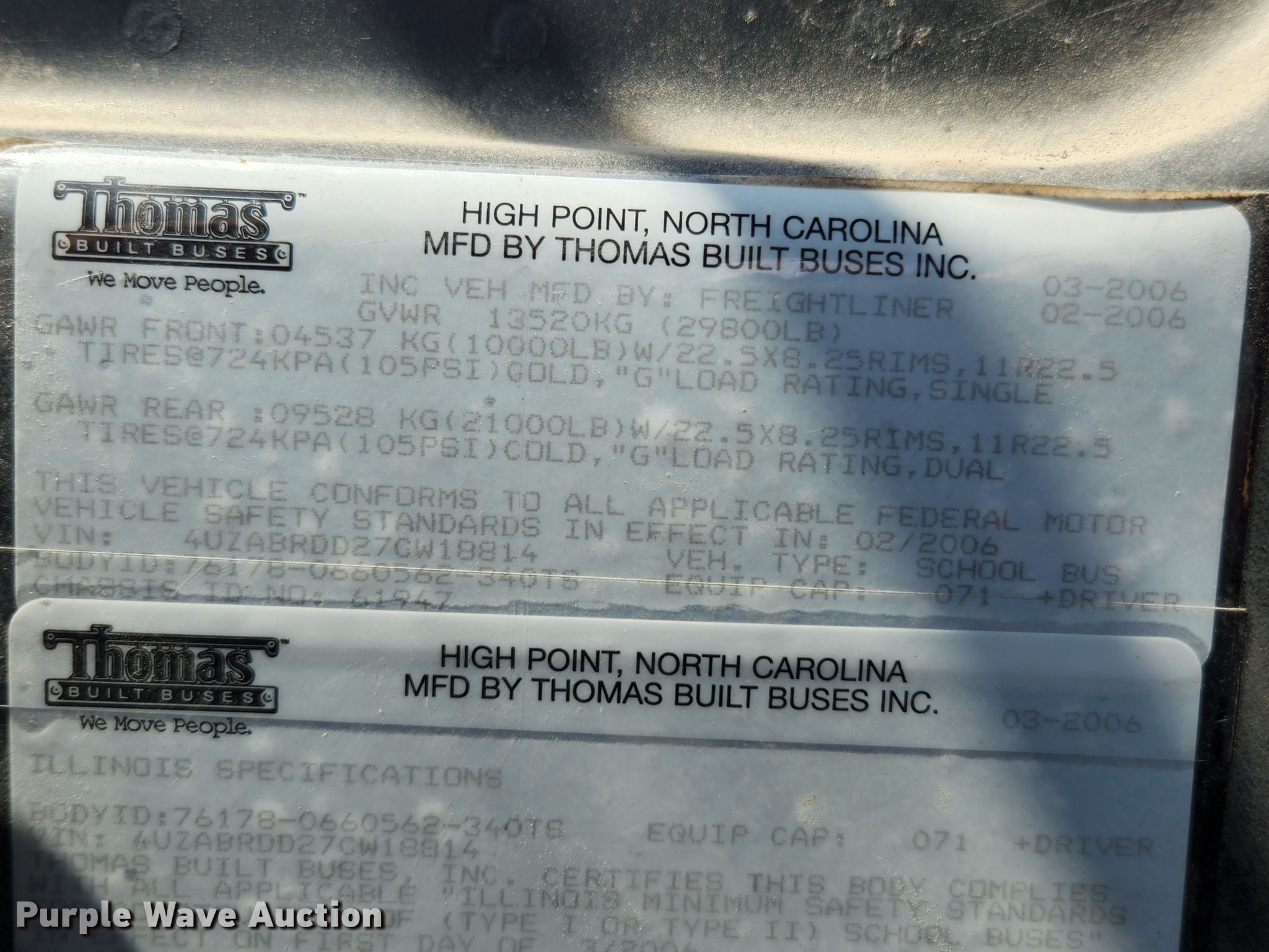 Take a look at this used 2007 Thomas Built B2 school bus being sold on August 30th, 2022 in the SOLD! August 30 Government Auction made by Thomas Built. Take a look at all of the item information below or take a look at similar auctions for Transit Vehicles.