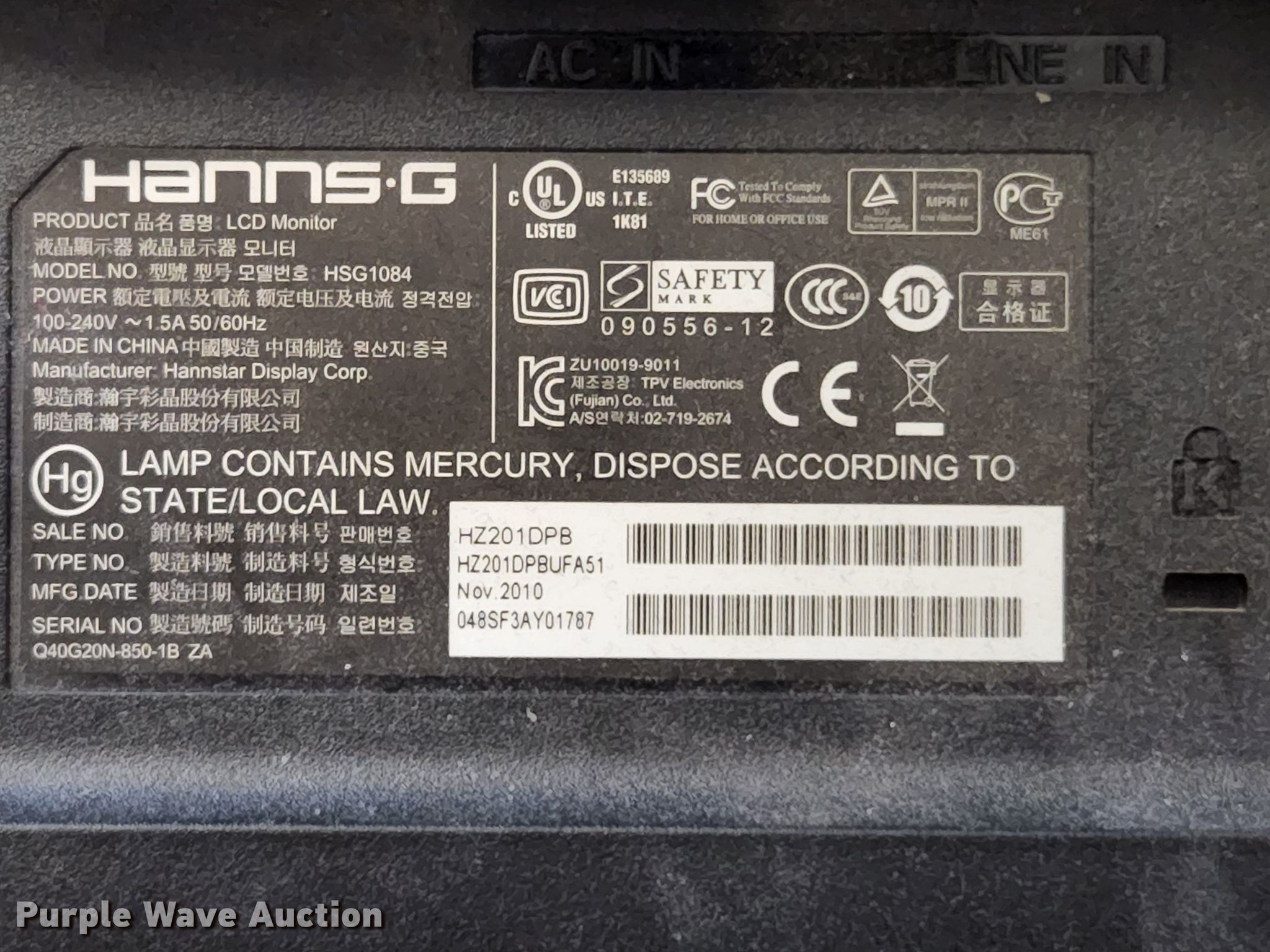 Purple Wave is selling a used Computers in Missouri. This item is a (40) monitors with the following: (23) 19" Acer, (4) 20" Hanns-G, (3) 19" Hp, (3) 22" Acer, (2) 21" Acer, (2) 17" Dell, (1) 20" Acer, (1) 19" Planar, (1) 22" Samsung, Viewsonic projector, Unknown operating condition