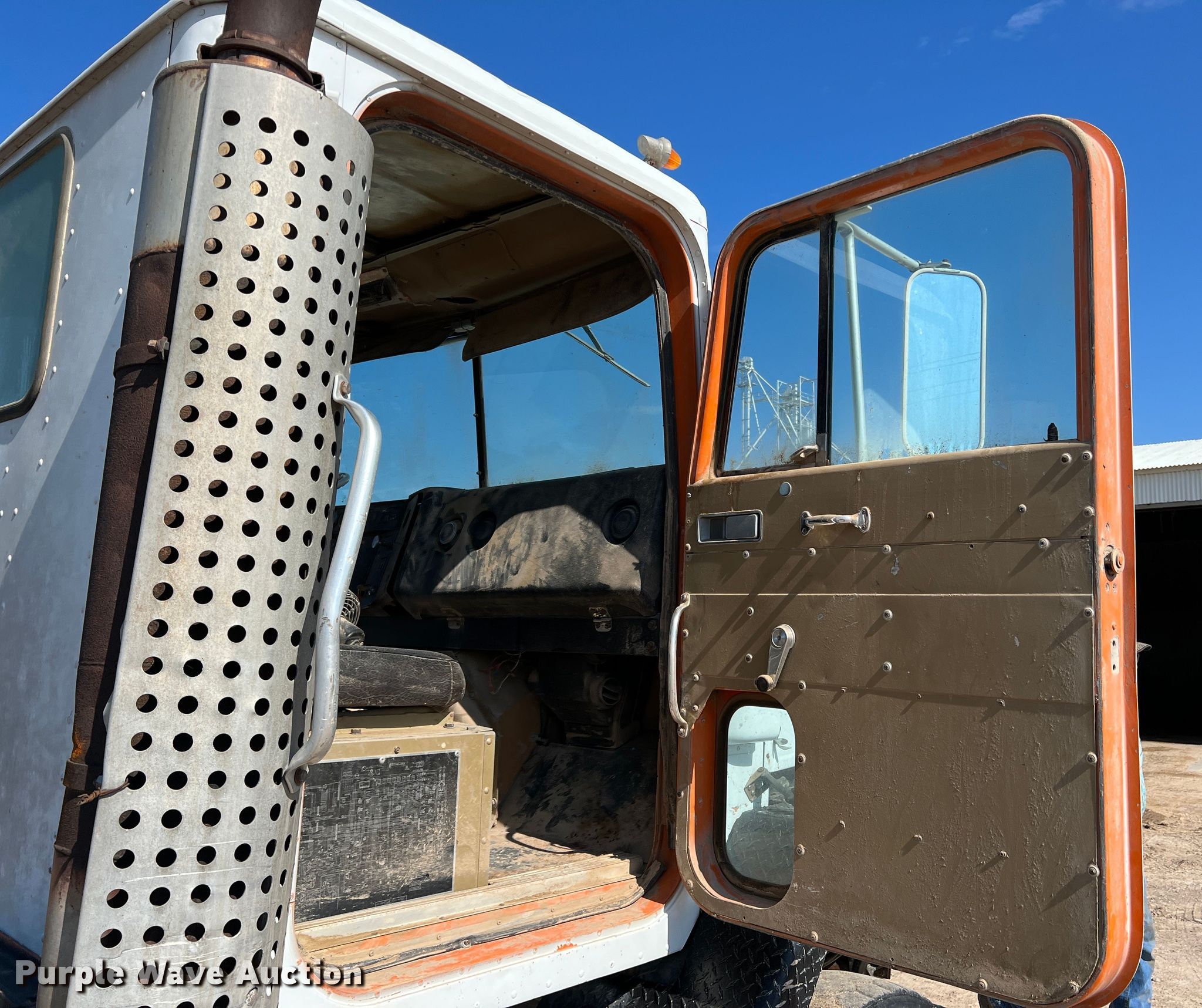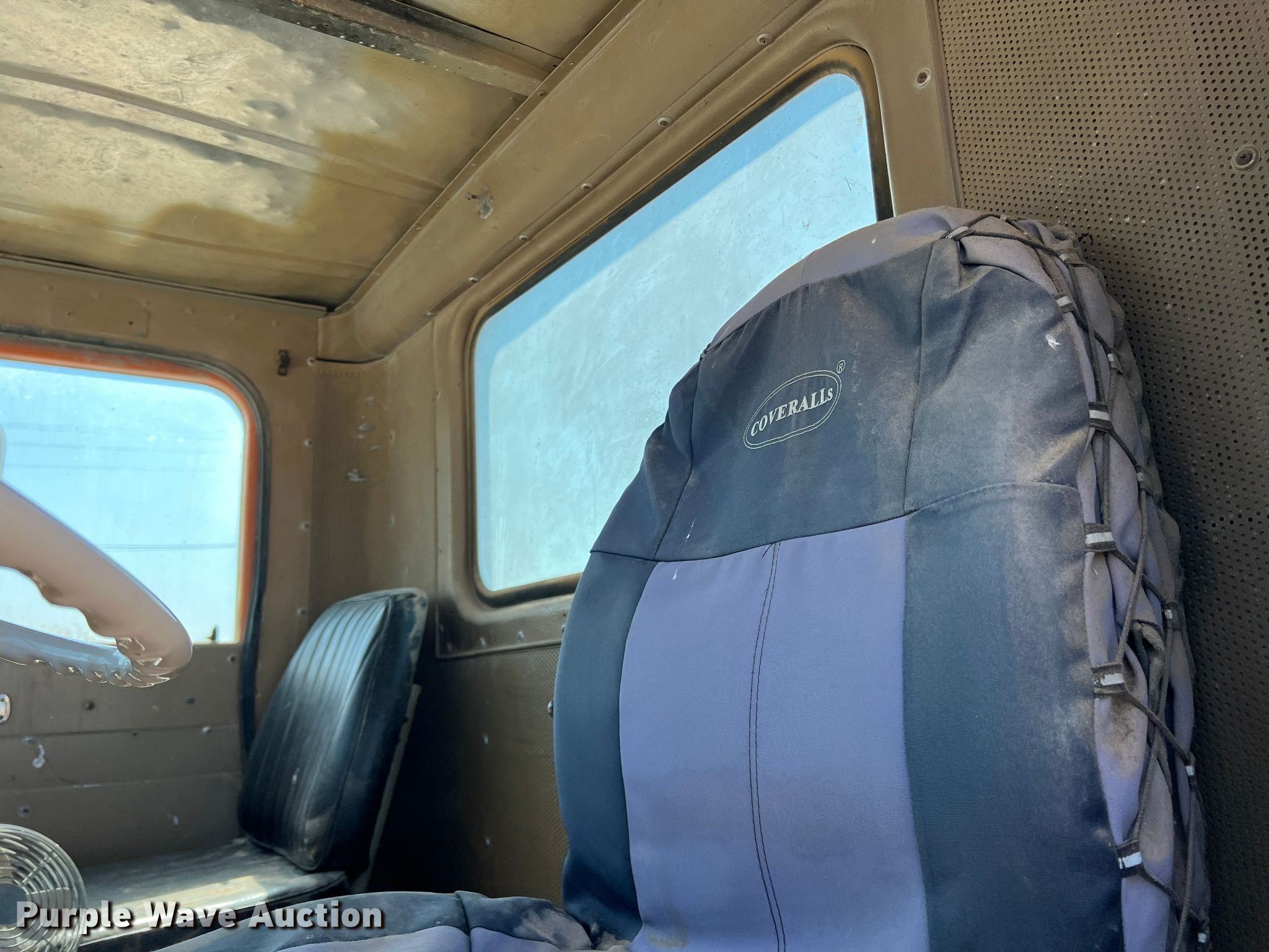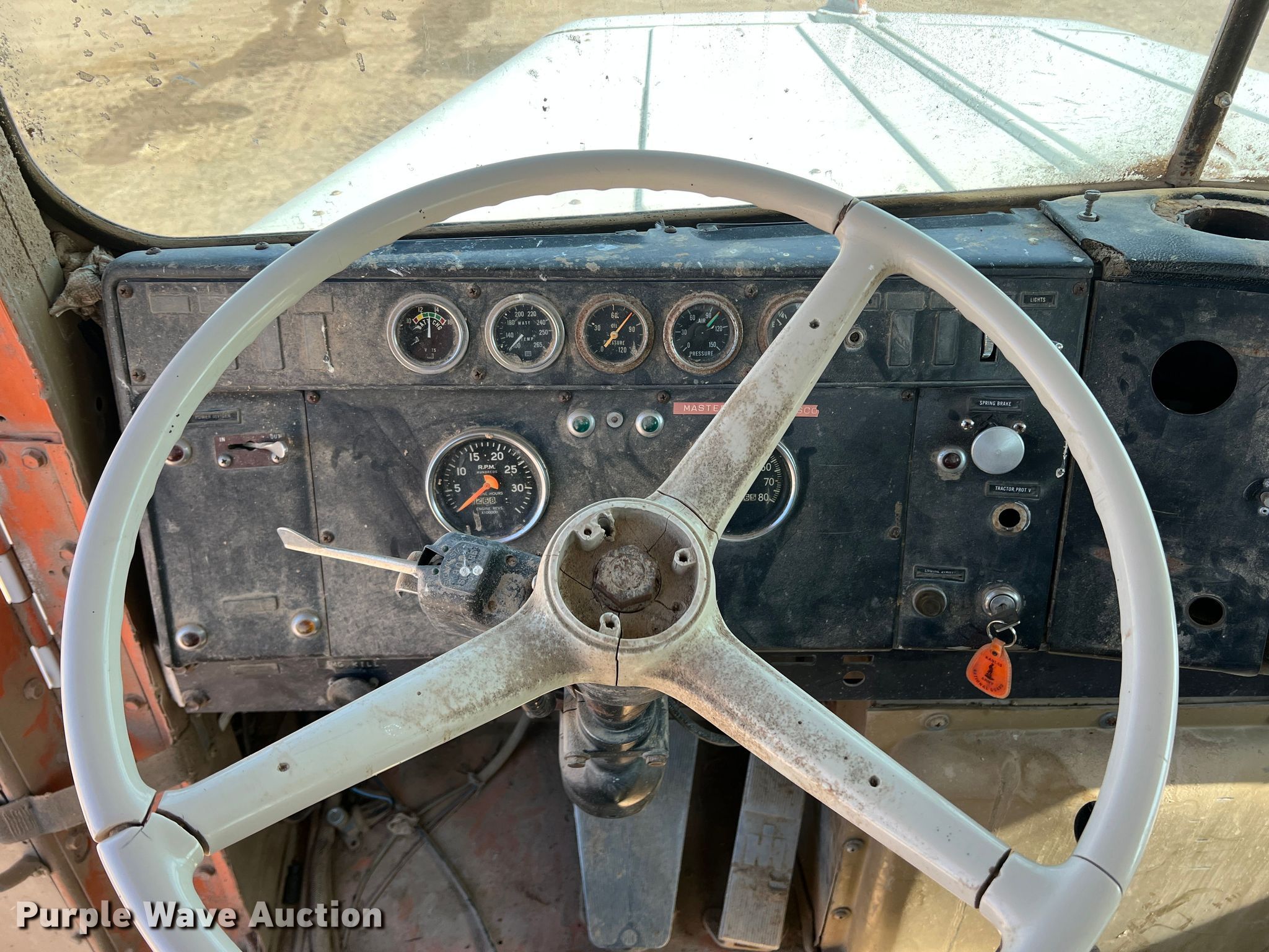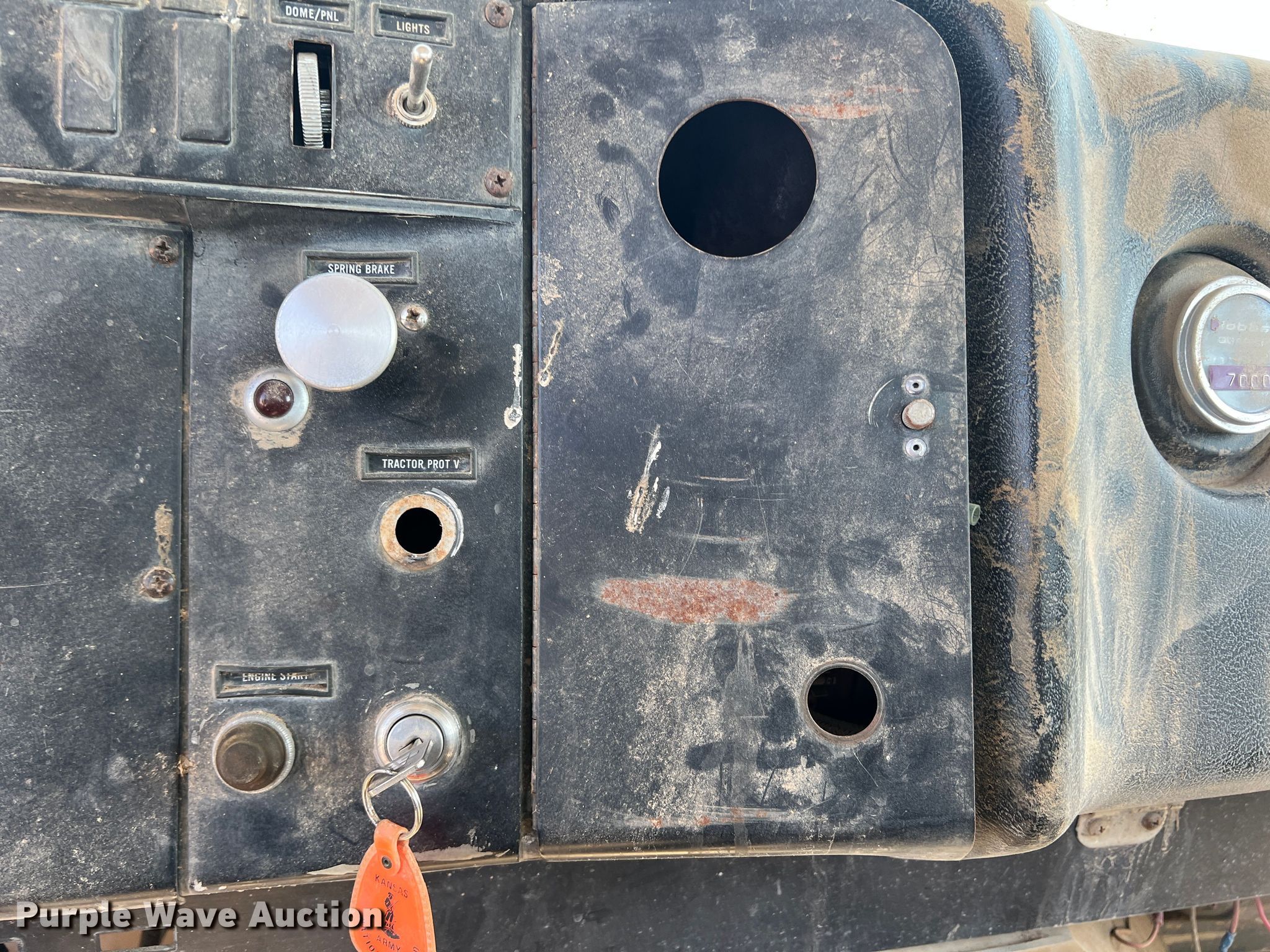 1977 International Paystar 5000 truck cab and chassis. Miles: 103,165 on odometer, Hours: 6,268 on meter, VIN: D3115GGB20885. Engine Caterpillar 3208, Serial: 02B15387, Cylinders: 8, Fuel type: Diesel. Transmission Allison 653, Automatic. Chassis Axles: Tandem, Suspension: Spring over walking beam, Brakes: Air, Wet kit. Interior Heat. Features Fuel tank: Dual. Tires Size: 295/75R22.5. Kansas non-highway title. Ingalls Feed Yard. 10505 U.S. 50. Ingalls, KS 67853