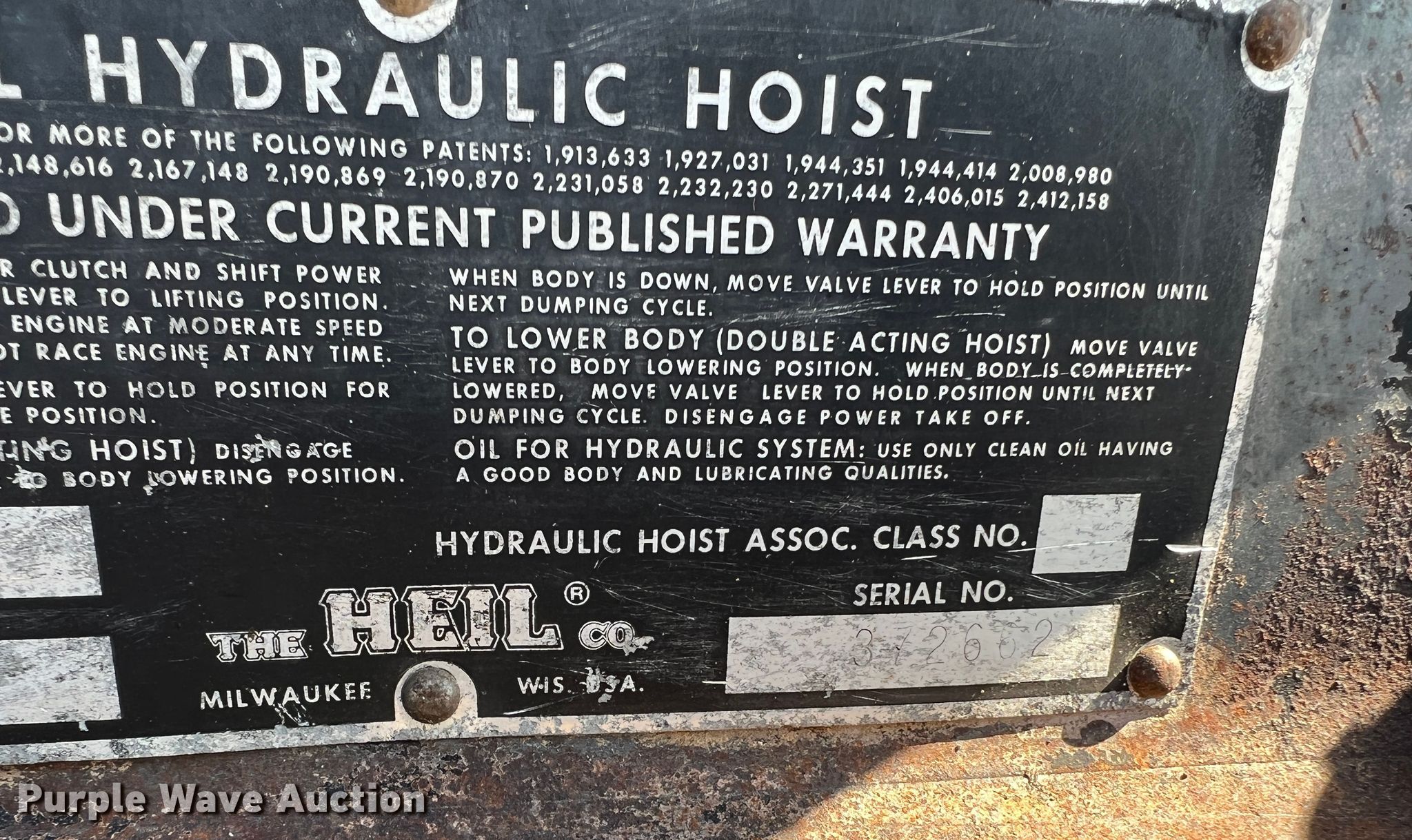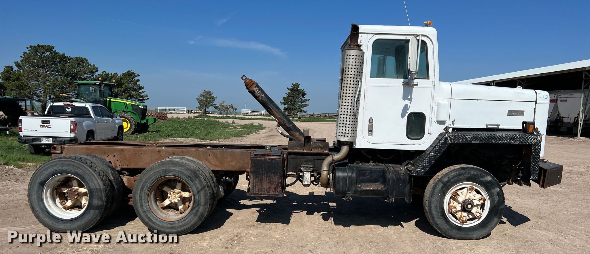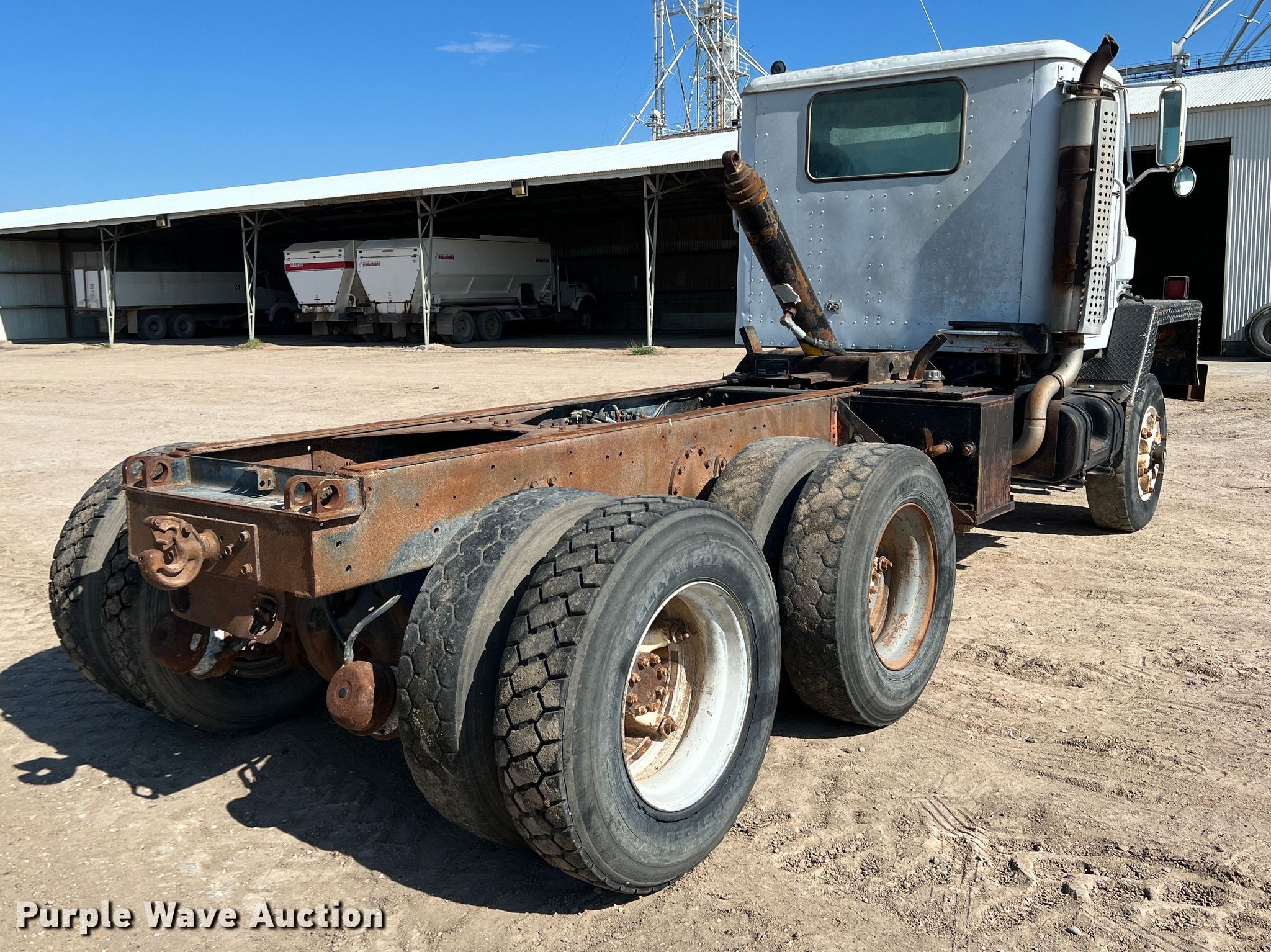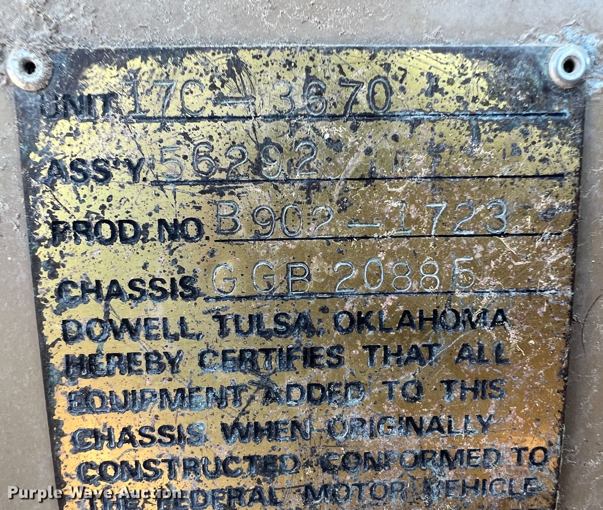 1977 International Paystar 5000 truck cab and chassis. Miles: 103,165 on odometer, Hours: 6,268 on meter, VIN: D3115GGB20885. Engine Caterpillar 3208, Serial: 02B15387, Cylinders: 8, Fuel type: Diesel. Transmission Allison 653, Automatic. Chassis Axles: Tandem, Suspension: Spring over walking beam, Brakes: Air, Wet kit. Interior Heat. Features Fuel tank: Dual. Tires Size: 295/75R22.5. Kansas non-highway title. Ingalls Feed Yard. 10505 U.S. 50. Ingalls, KS 67853