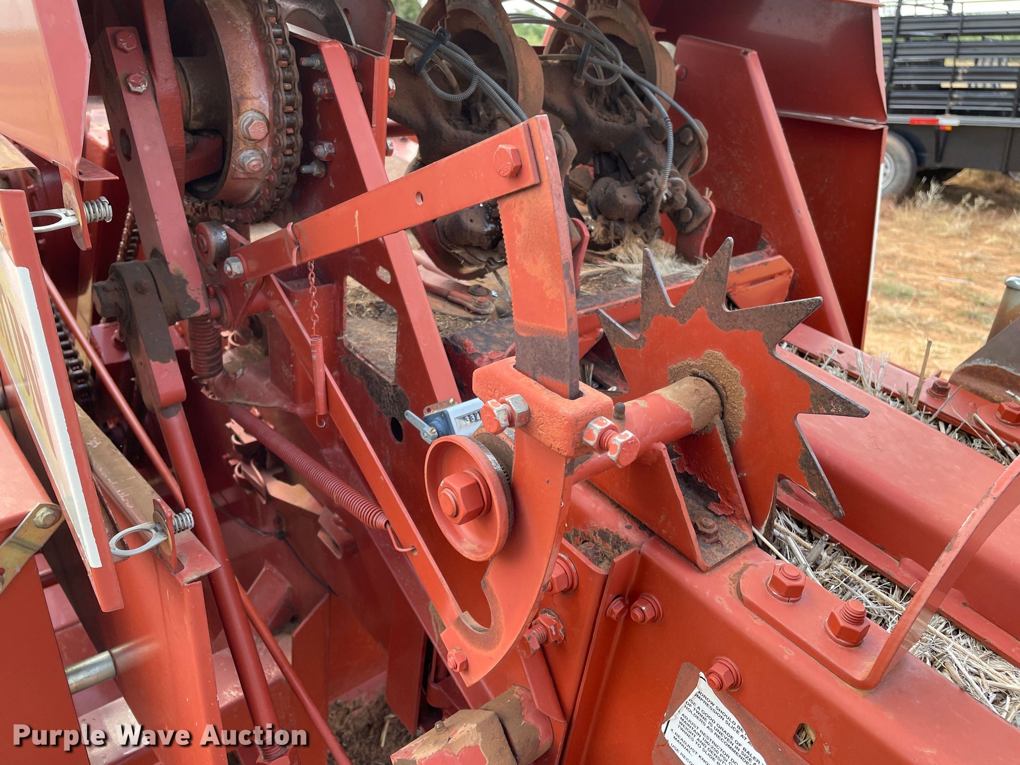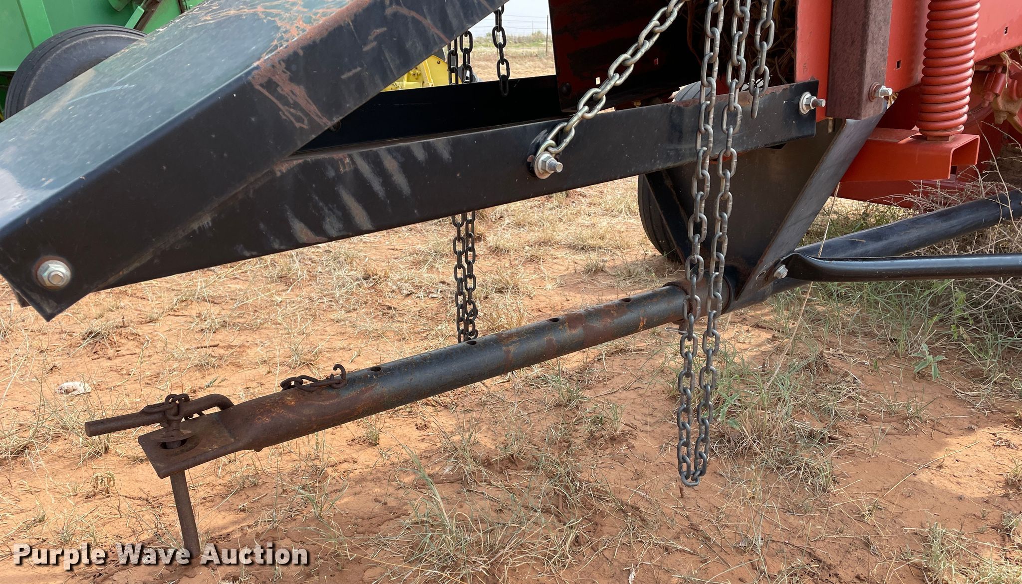 2004 Hesston 4570 small square baler. Serial: HN64104. Features PTO: 540, Feed assist roller, Gauge wheels Size: 3.50x6, Pickup width: 6', Small square bale size: 16"x18", Knotters Quantity: 2, Twine tie, Bale chute. Tires Size: 11L-14. Don & Kay McFarland Estate. 16330 Farm to Market Road 268. Childress, TX 79201