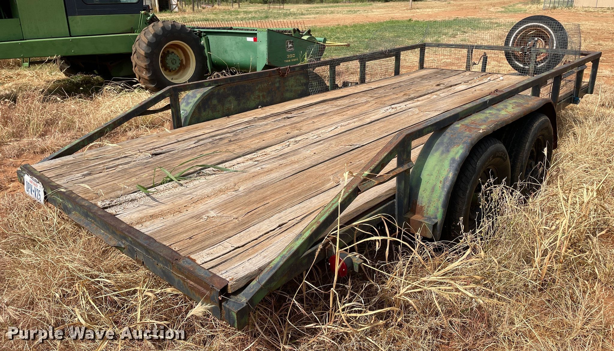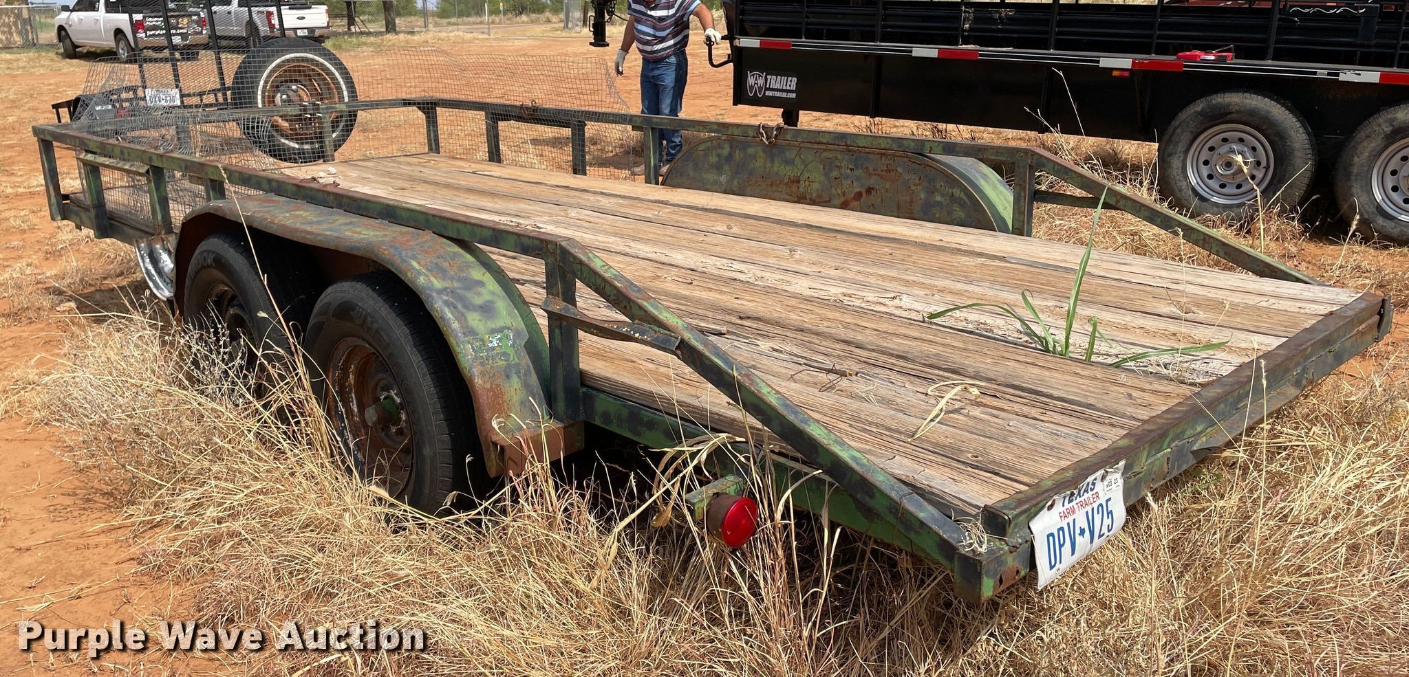 Utility trailer. VIN: 4LCUT07S0M1000082. Dimensions Overall: 20' L x 96" W, Deck: 16' L x 77" W, Deck height: 21". Features Deck type: Wood. Chassis Ball hitch: 2", Landing gear: Single, Suspension: Spring, Axles: Tandem, GAWR: 7,000 lbs. Tires Steel wheels, Size: 235/75R15. Transfer of ownership documentation will be a bill of sale. Don & Kay McFarland Estate. 16330 Farm to Market Road 268. Childress, TX 79201
