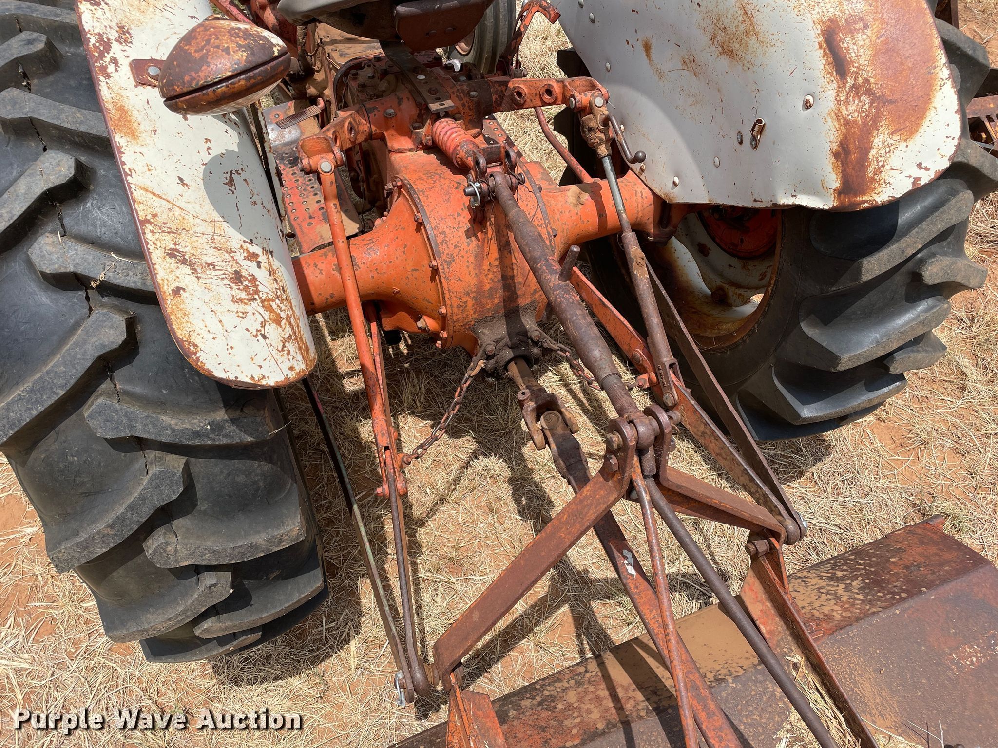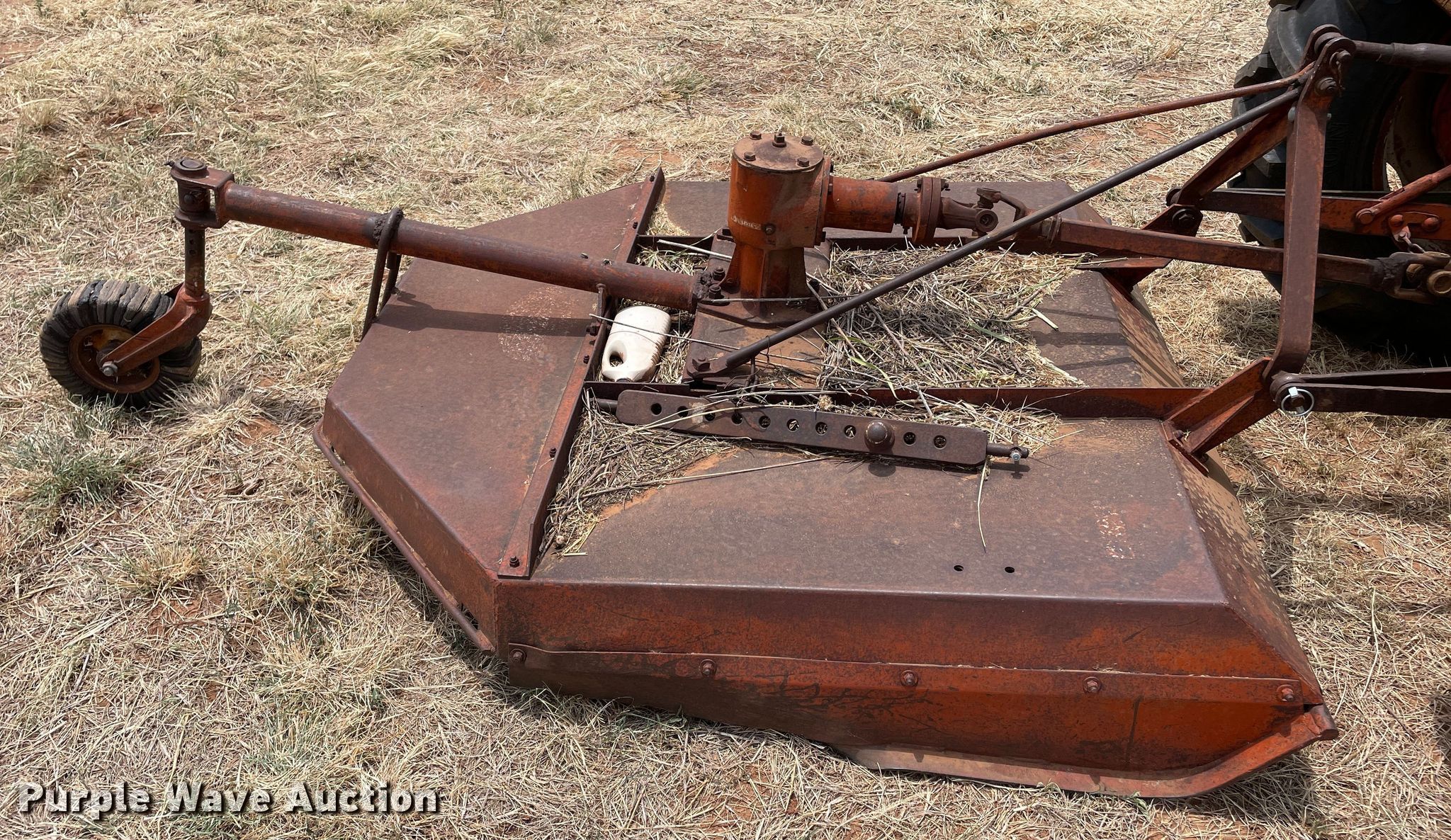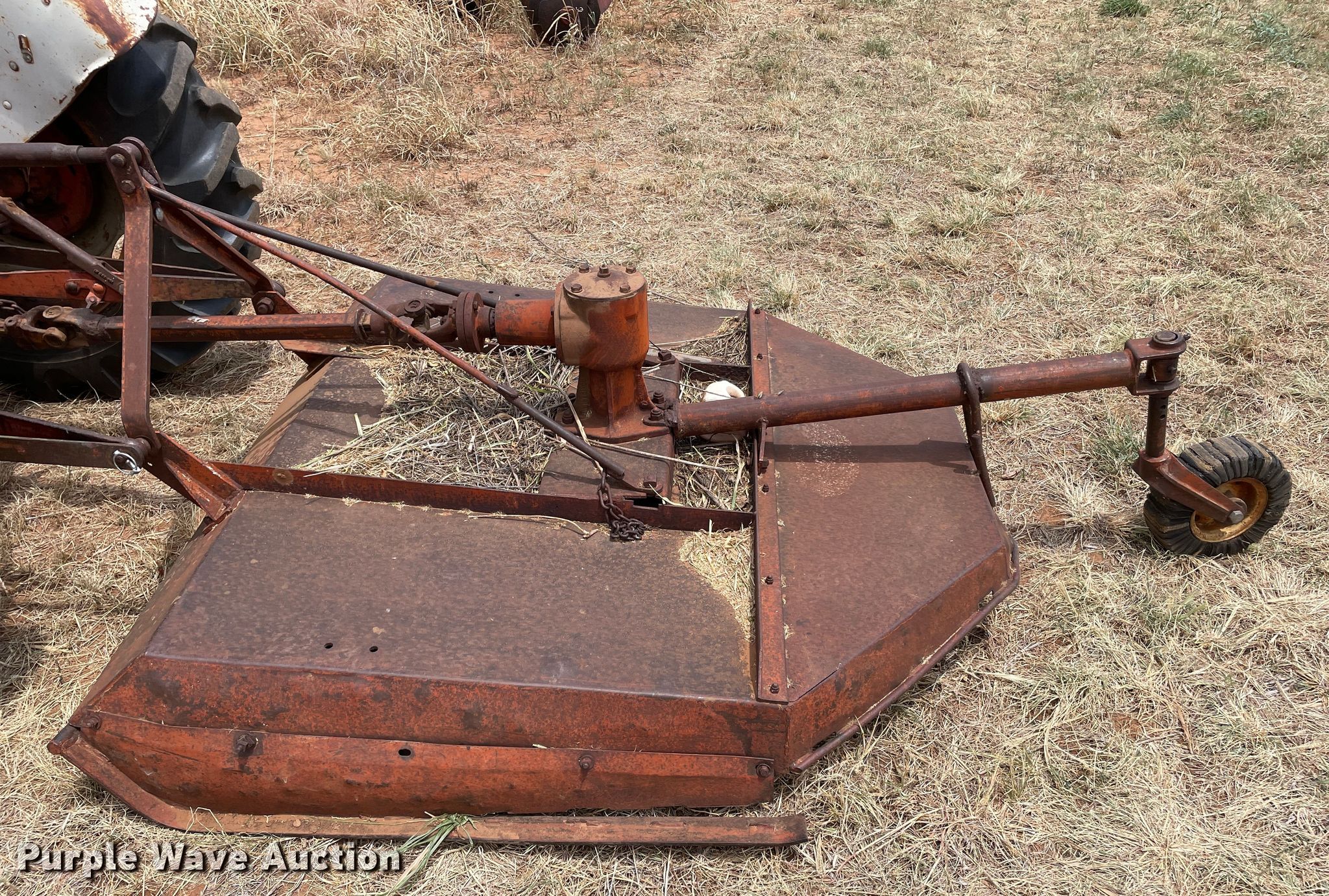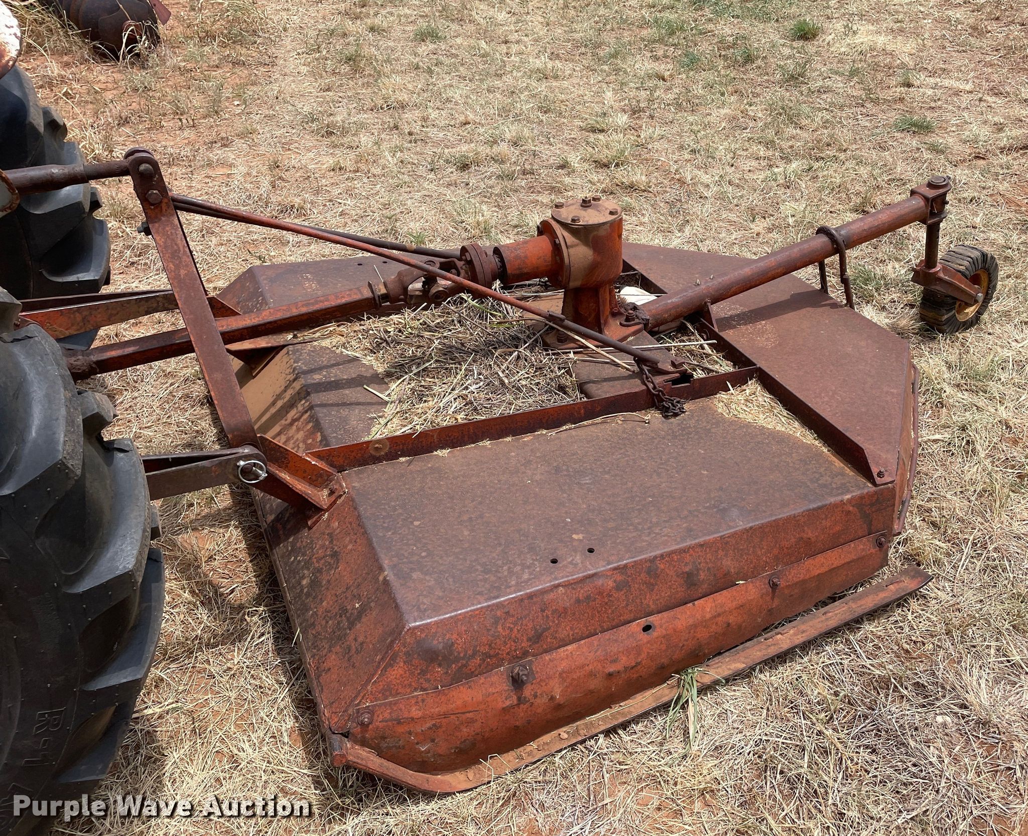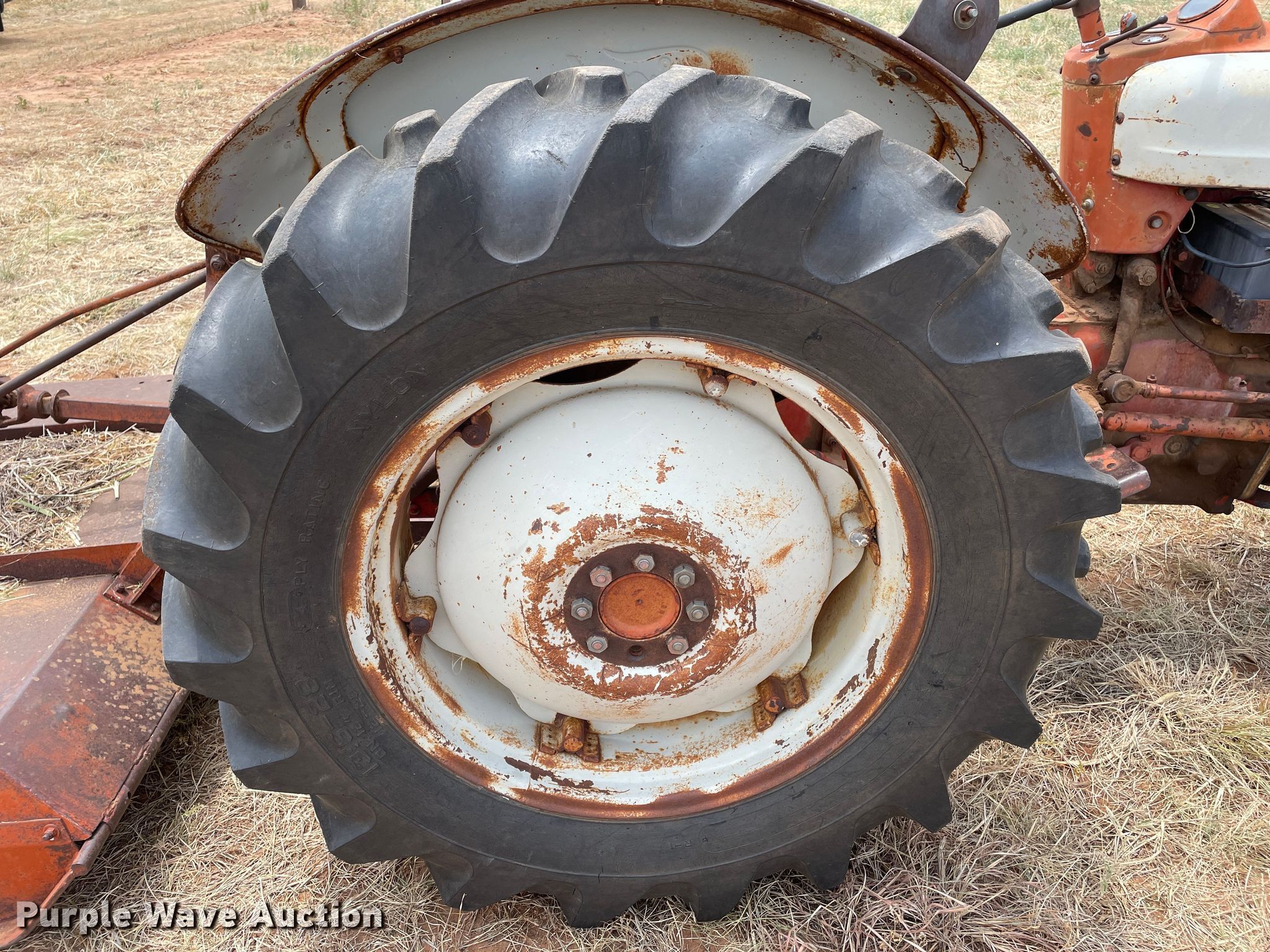 Ford 600 tractor. Hours: Unknown. Engine Ford, Displacement: 132 C.I.D., Cylinders: 4, Fuel type: LPG. Transmission Manual, 4F - 1R. Features PTO: 540, Three point Top link, Rotary mower International, Width: 5', PTO: 540, Hitch: Three point. Tires Front: 6.00-16, Rear: 13.6-28. Don & Kay McFarland Estate. 16330 Farm to Market Road 268. Childress, TX 79201