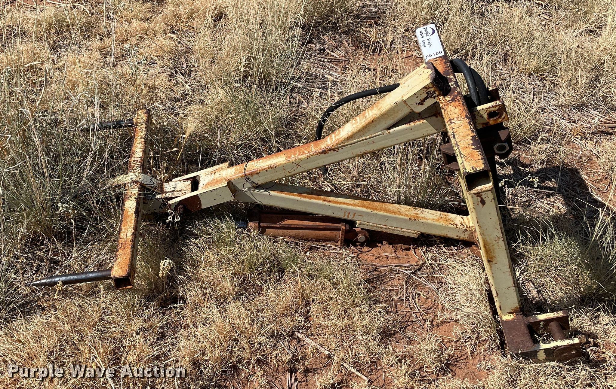 Purple Wave is selling a used Hay Handling in Texas. This item is a K&M Hay King 30-8 bale spear with the following: Spear length: 3', Hitch: Three point