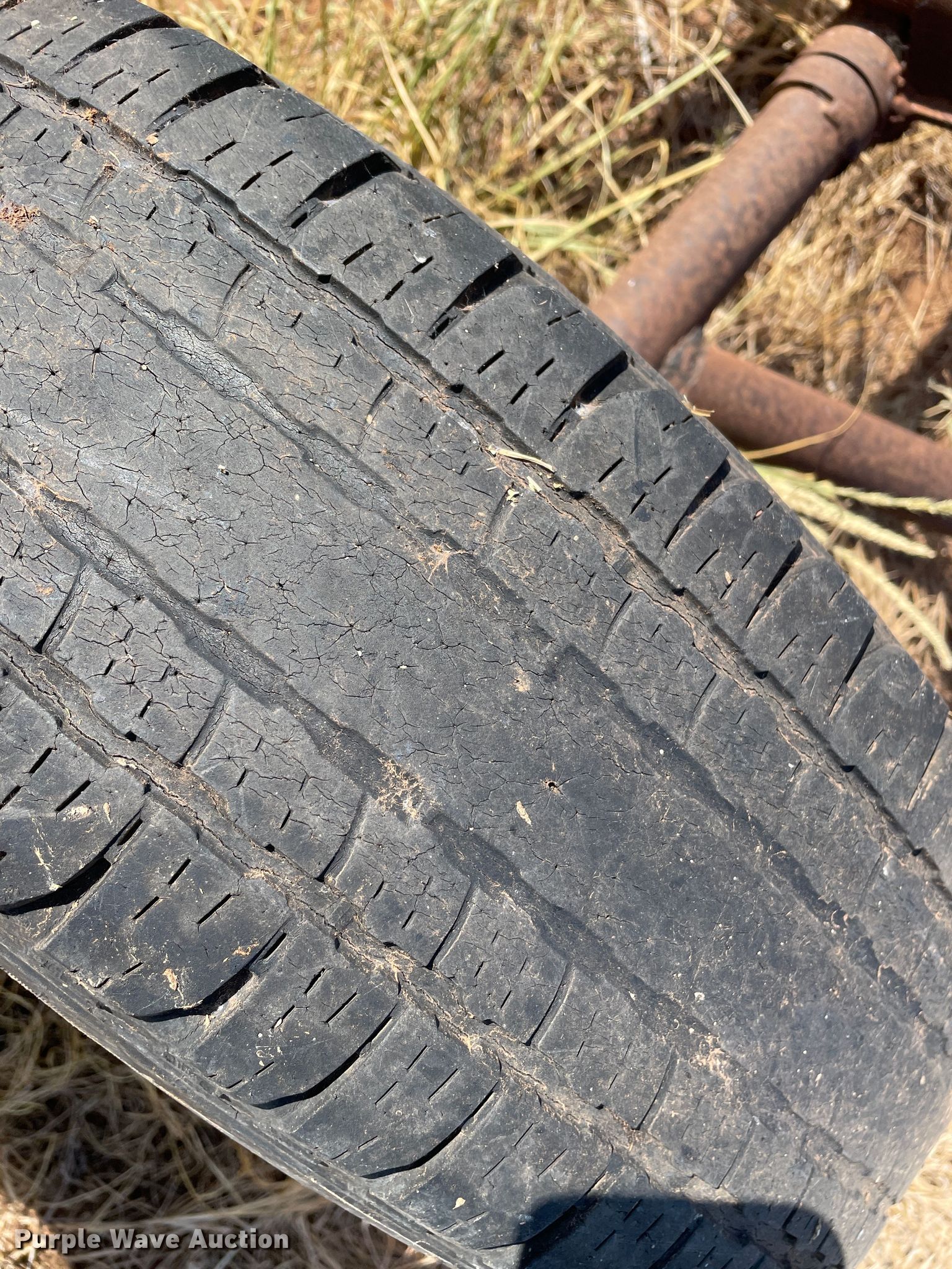 Purple Wave is selling a used Hay Handling in Texas. This item is a Shop built hay bale mover with the following: 10' L x 98" W, Bale forks: 5', Winch, Champion, Ball hitch size: 2", Steel wheels, Size: 235/70R15
