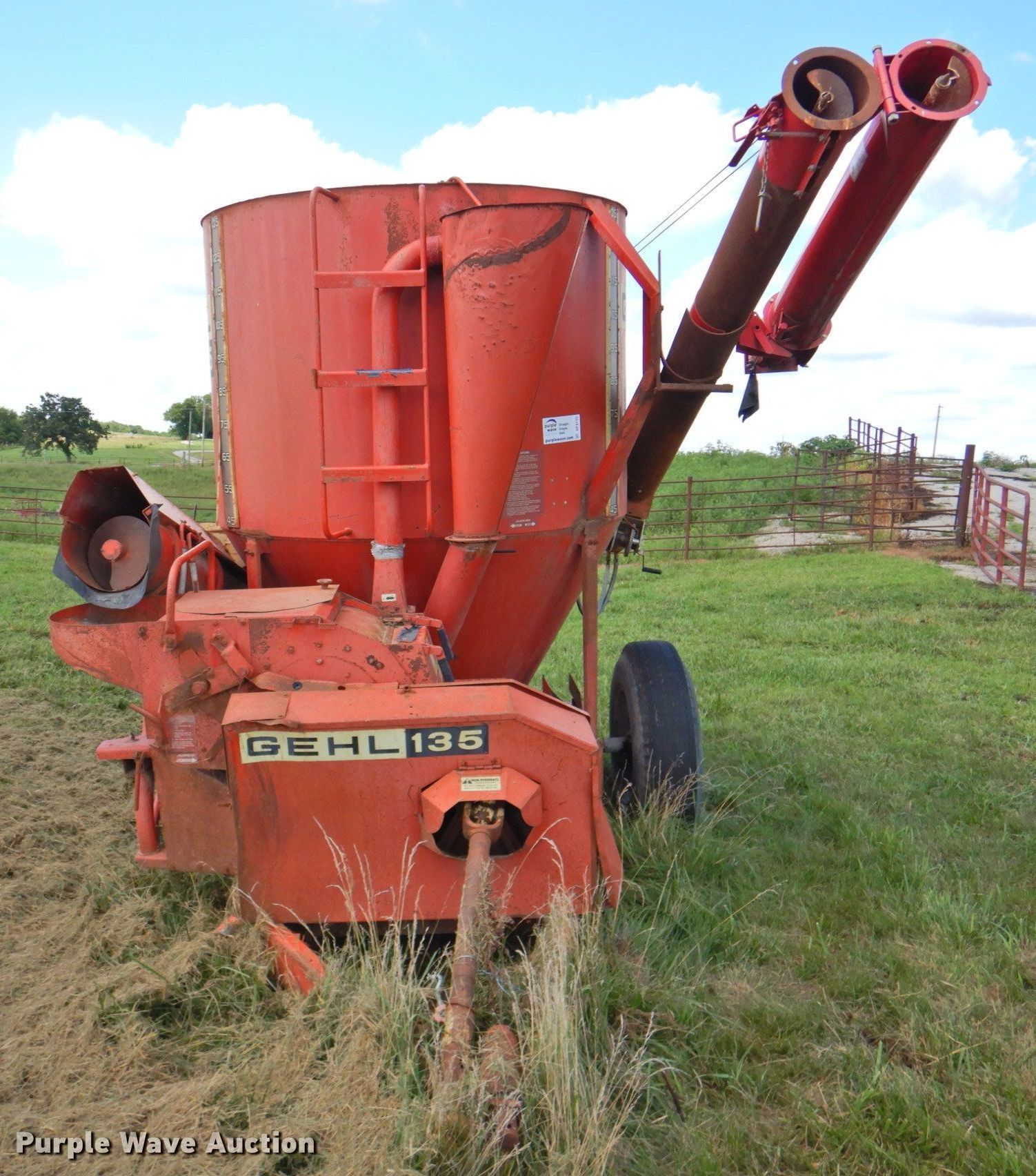 Purple Wave is selling a used Feed Mixer or Bale Processor in Kansas. This item is a Gehl MX135 feed grinder/mixer with the following: Serial: 1245