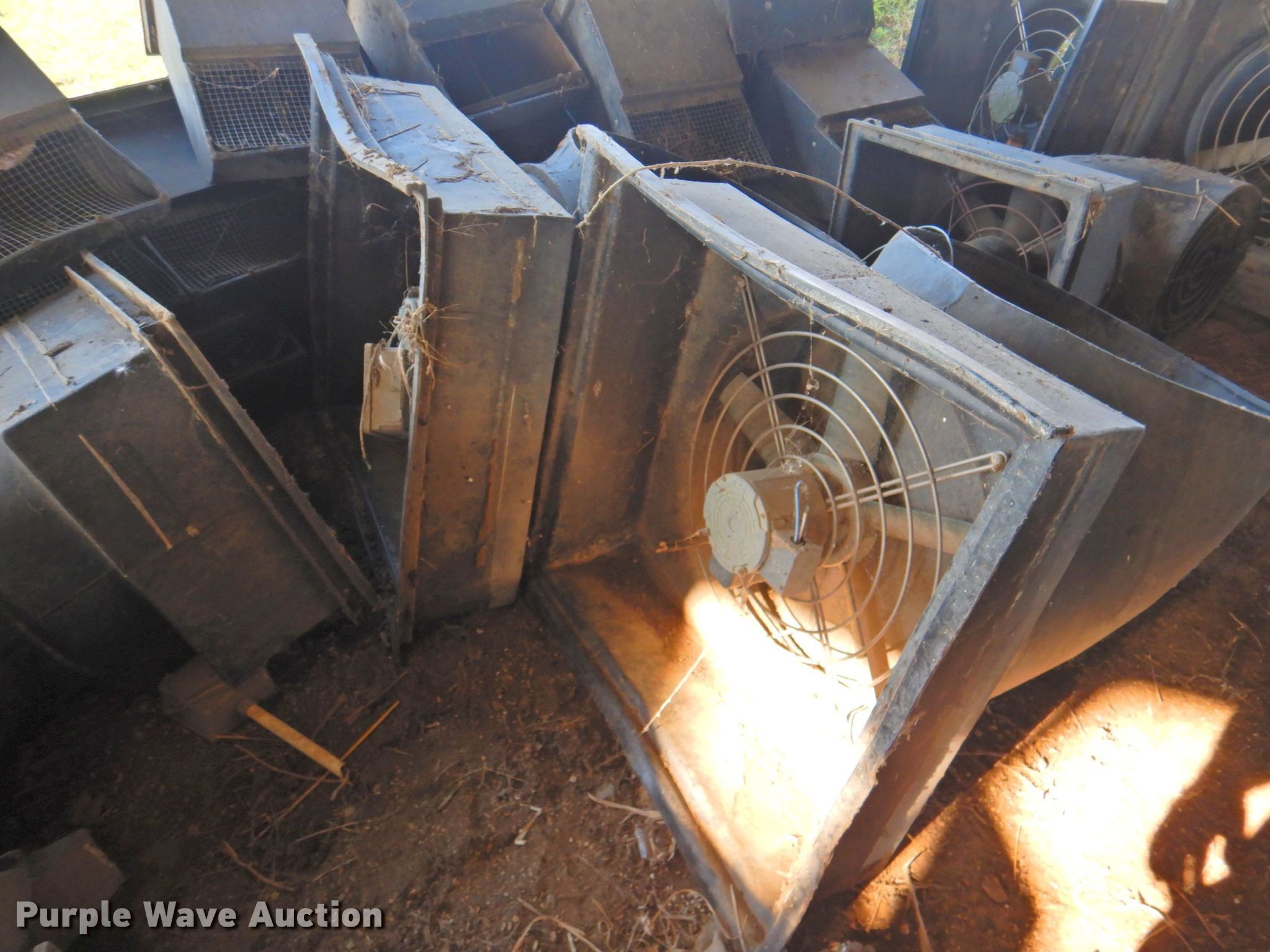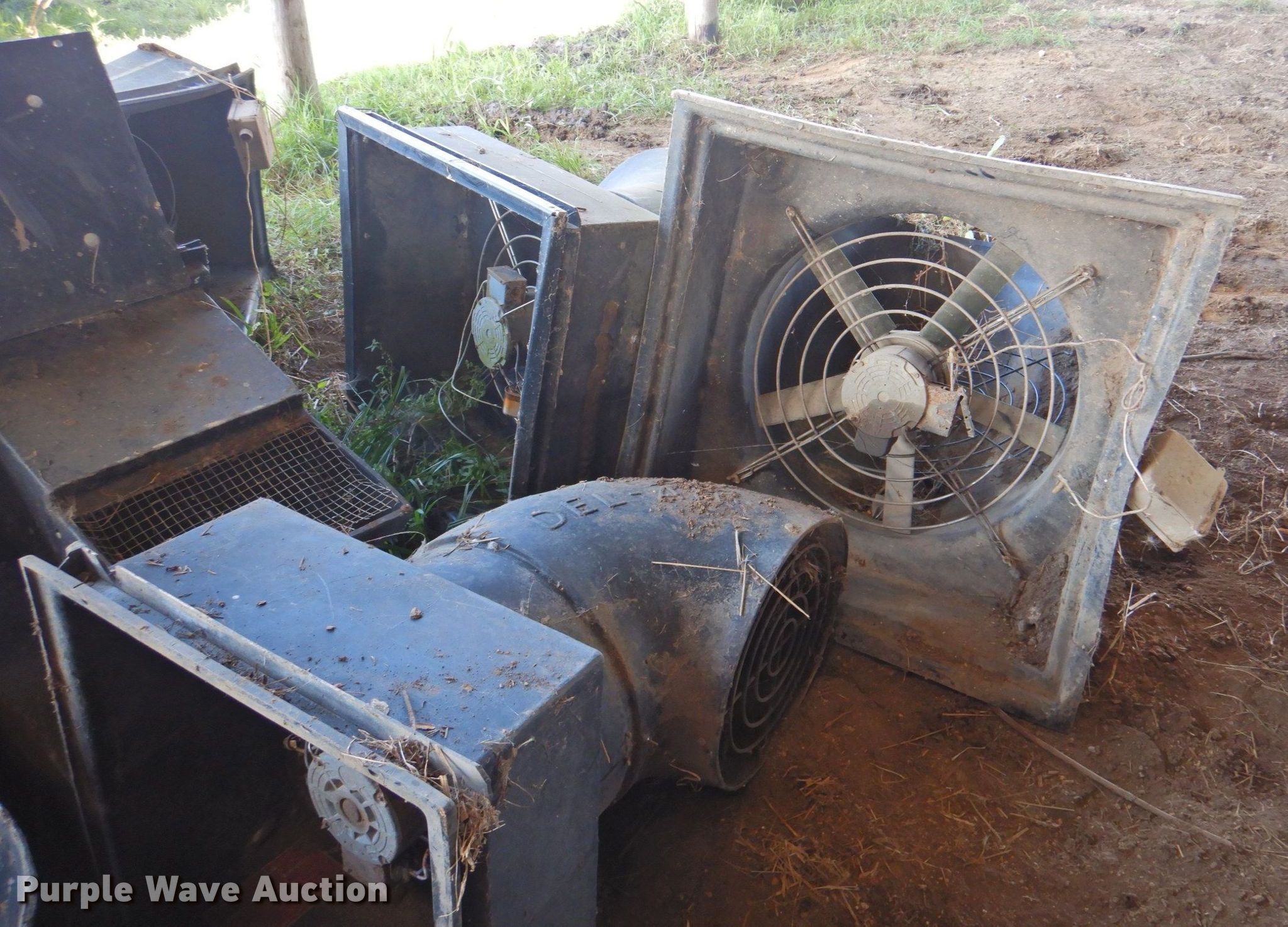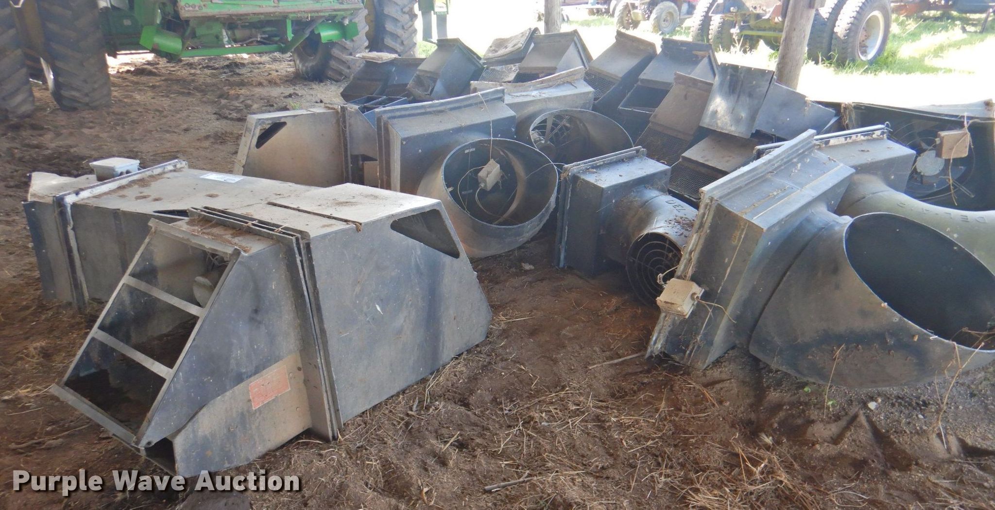 Purple Wave is selling a used Building Materials in Kansas. This item is a Building materials with the following: (2) approx. 24" heat exchangers, Approx. 20" heat exchanger, (3) approx. 32" fans, (2) approx. 26" fans, (2) approx. 22" fans, Approx. 29 vents