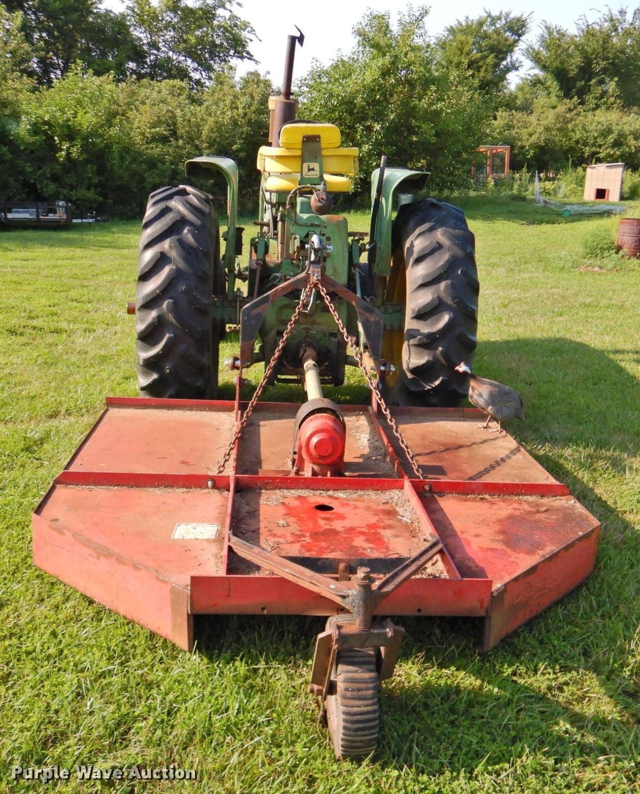 1962 John Deere 4010 tractor. Hours: 111 on meter, Serial: 22T29651. Engine John Deere, Displacement: 6.2L, Cylinders: 6, Fuel type: Diesel. Transmission Synchro, 8F - 2R. Features PTO: 540, Three point Top link, Hydraulic remote sets Rear: 2, Suitcase weights: 1. Tires Front: 10.00-16, Rear: 16.9-34. Notes 1000 PTO shaft not included. Taylor-Way 309242 rotary mower Serial: 1047259H. Features Width: 84", PTO: 540, Hitch: Three point. Tires Solid. 15228 214 Street. Tonganoxie, KS 66086