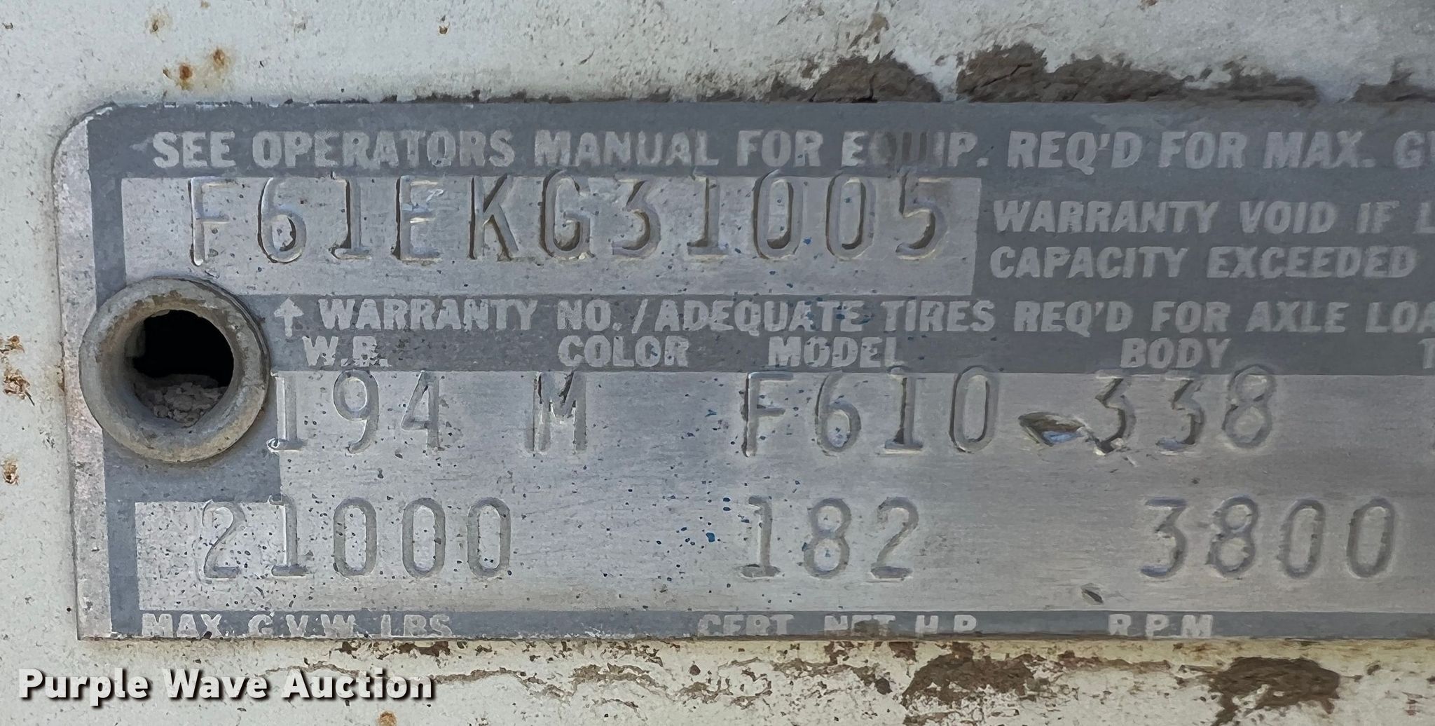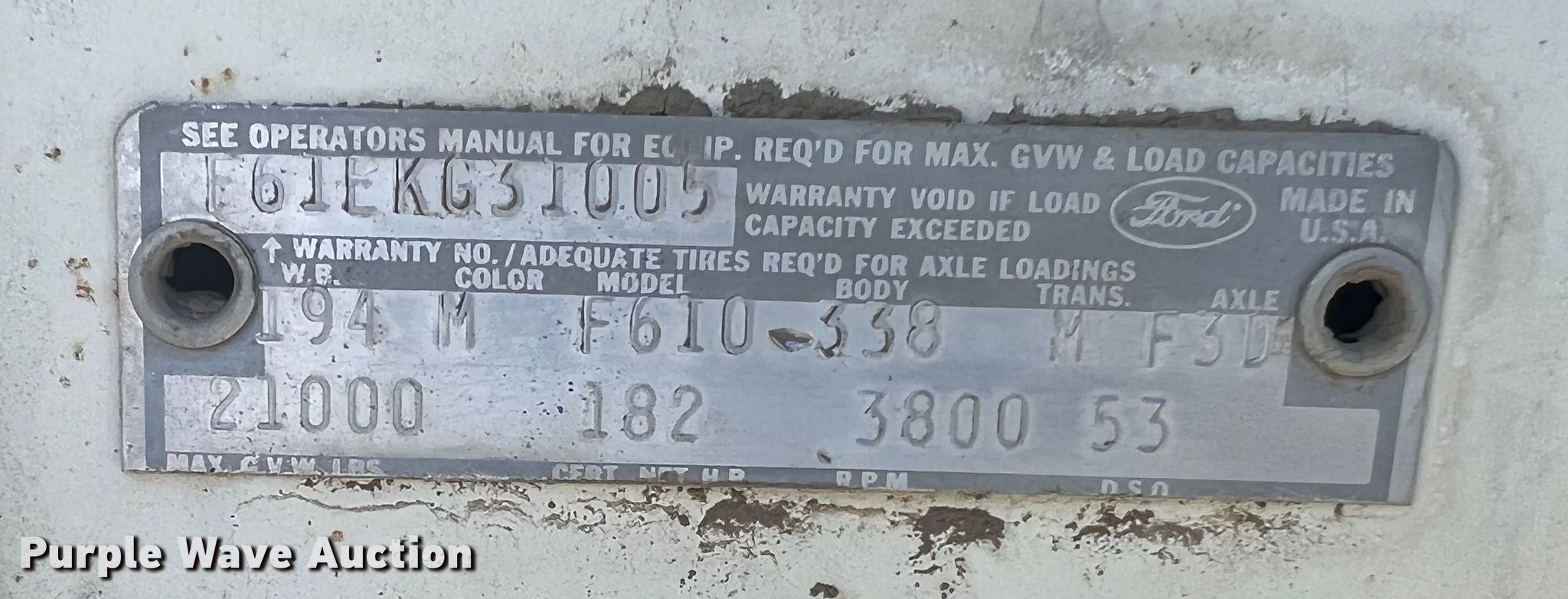 Purple Wave is selling a used Grain Truck in Kansas. This item is a 1970 Ford F610 grain truck with the following: Miles: 62,105 on odometer, VIN: F61EKG31005