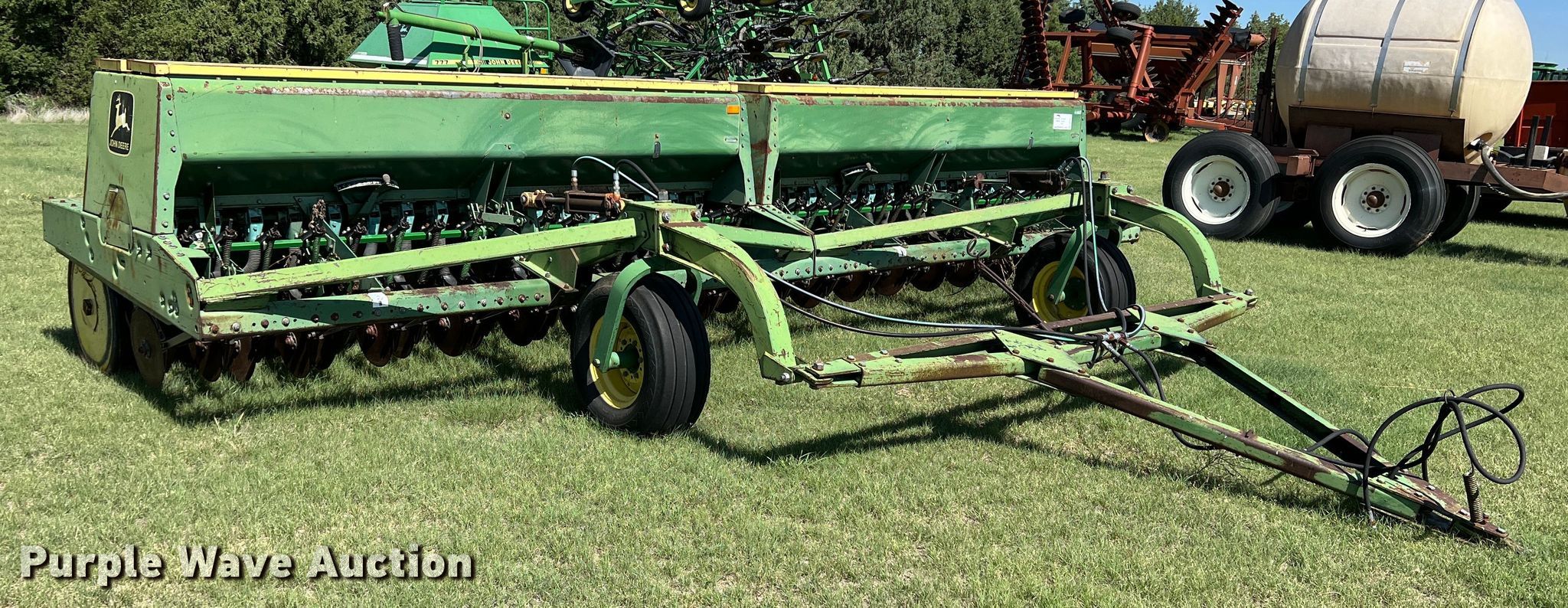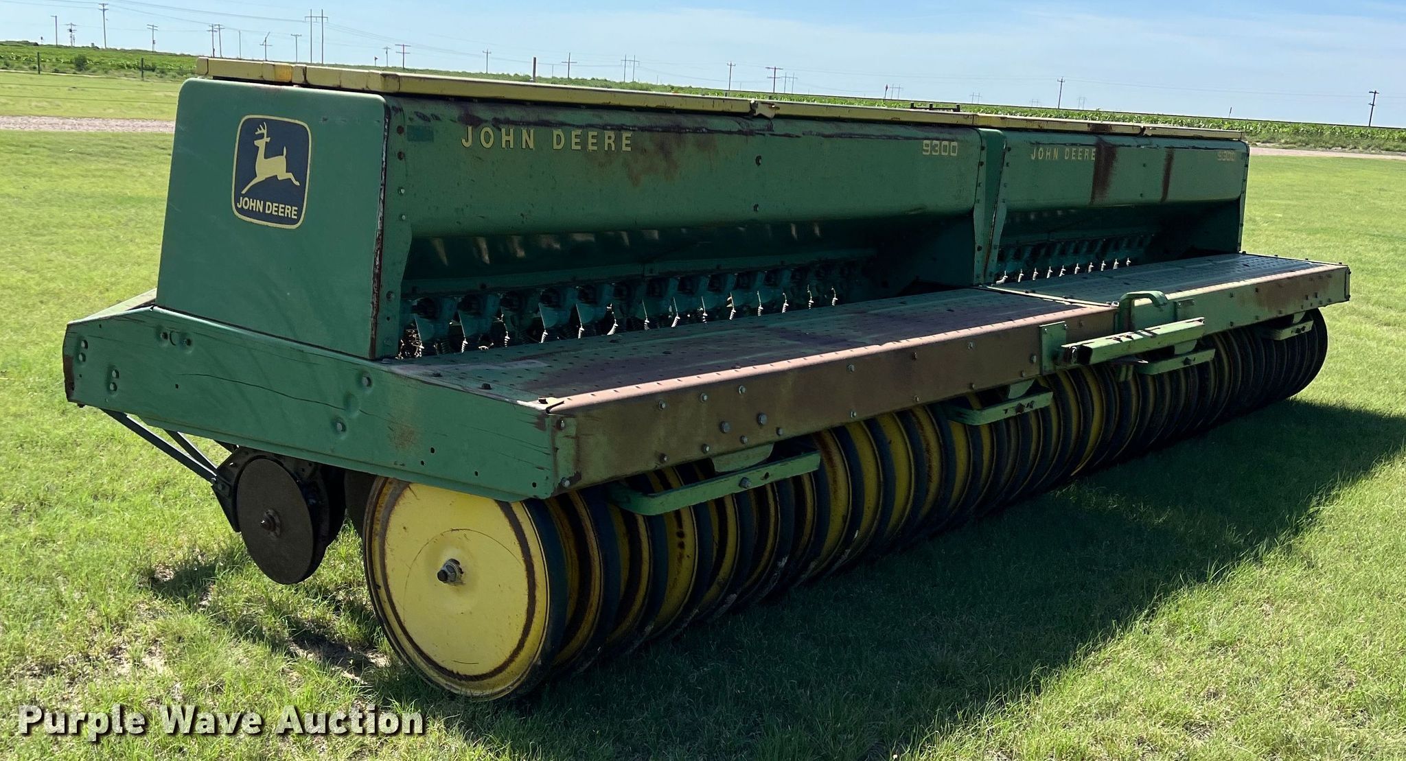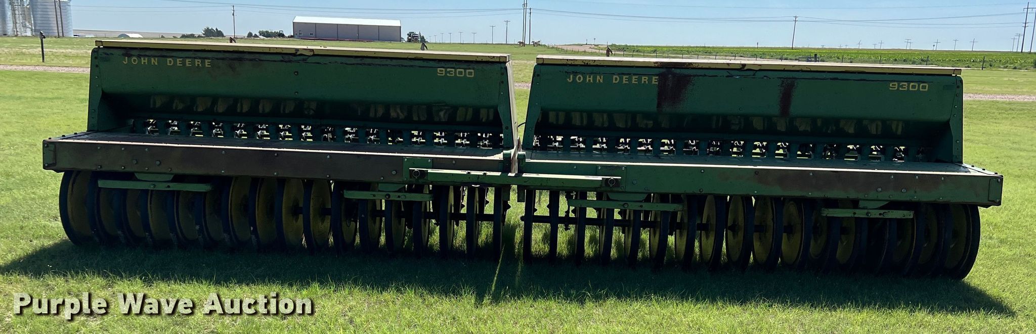 Purple Wave is selling a used Grain Drill or Seeder in Kansas. This item is a (2) John Deere 9000 grain drills with the following: Width: 20', Row units: 34, Row spacing: 7", Serials: 024129N, 024130N