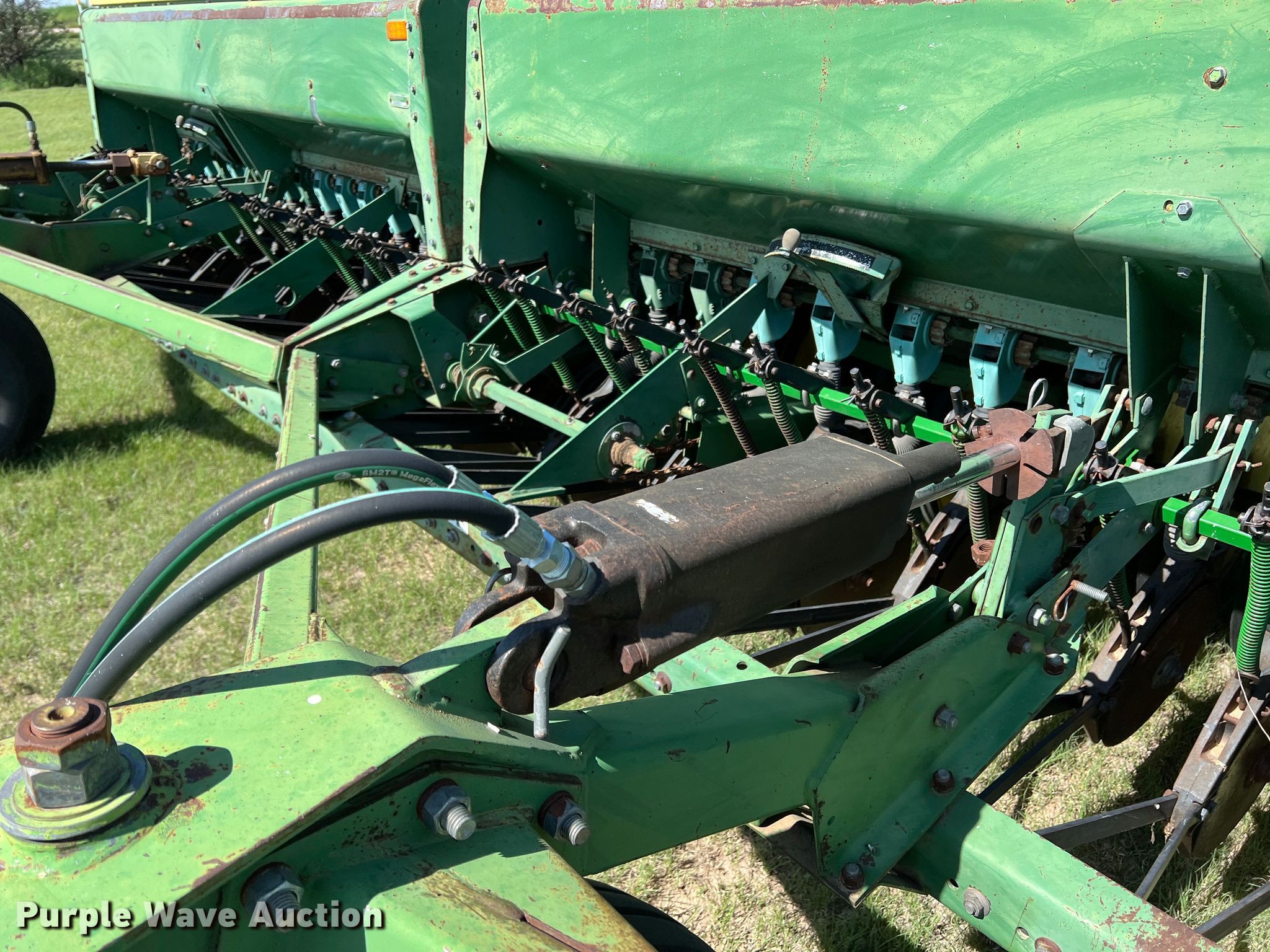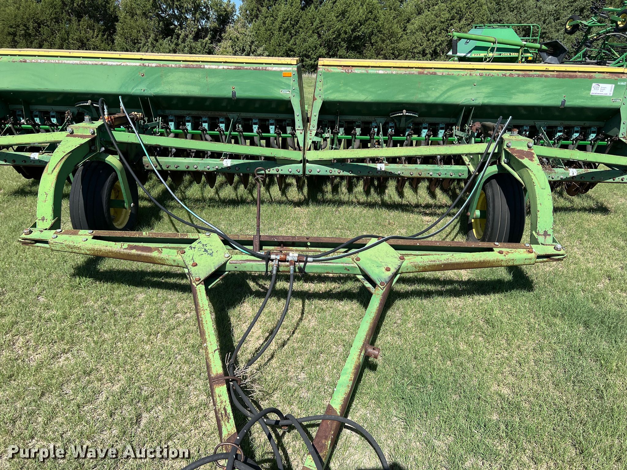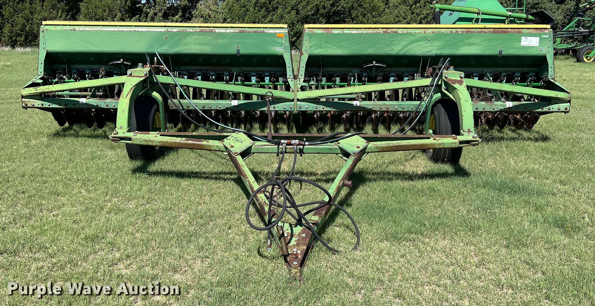 Purple Wave is selling a used Grain Drill or Seeder in Kansas. This item is a (2) John Deere 9000 grain drills with the following: Width: 20', Row units: 34, Row spacing: 7", Serials: 024129N, 024130N