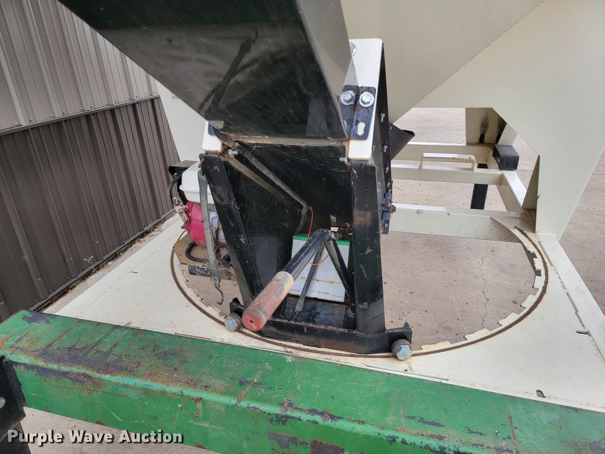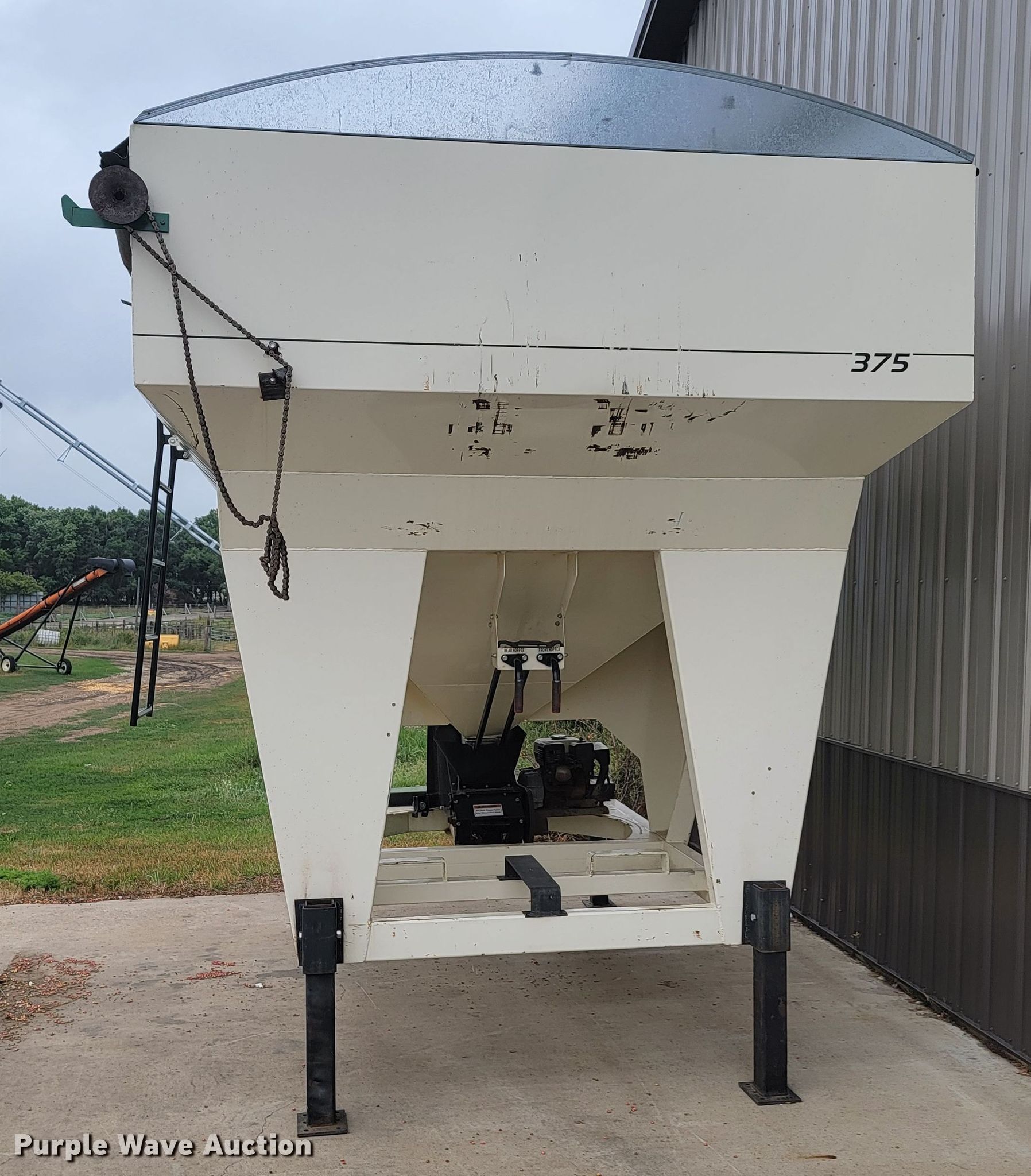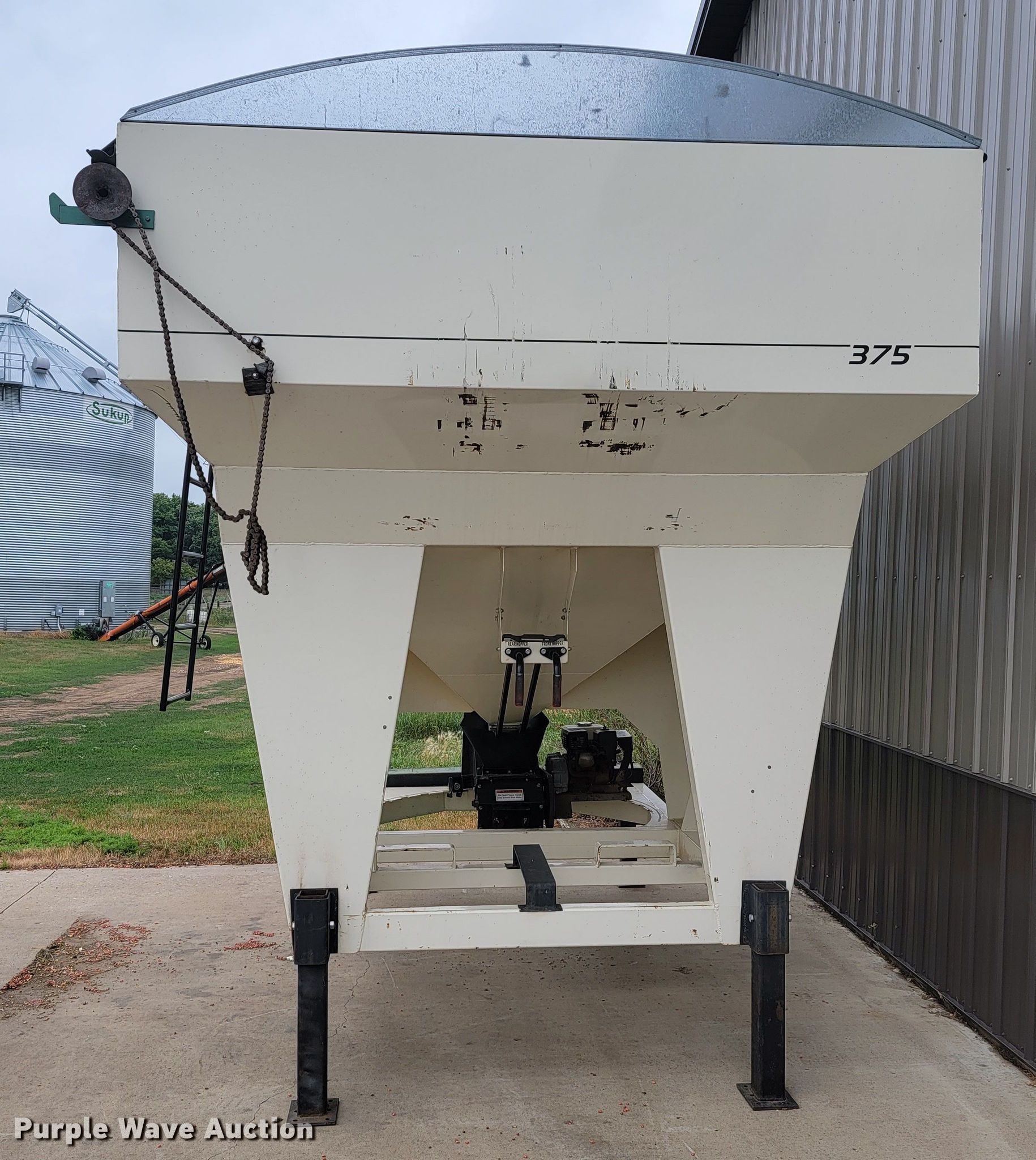 Friesen 375 seed tender. Serial: 25194. Engine Honda GX160, Cylinders: 1, Fuel type: Gas, HP: 5.5. Features Capacity: 375 bushels, Shut-off gate: Manual, Sight glass, Compartments: 2, Roll tarp. Notes Tarp damaged. 1240 120th St.. Verdi, MN 56164