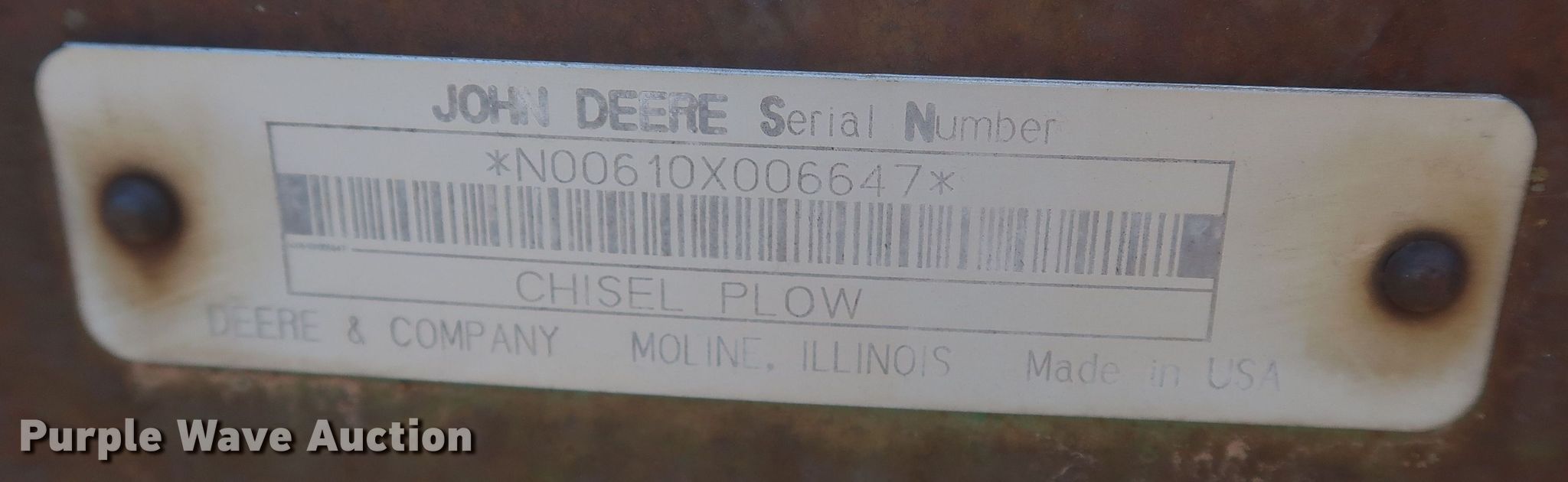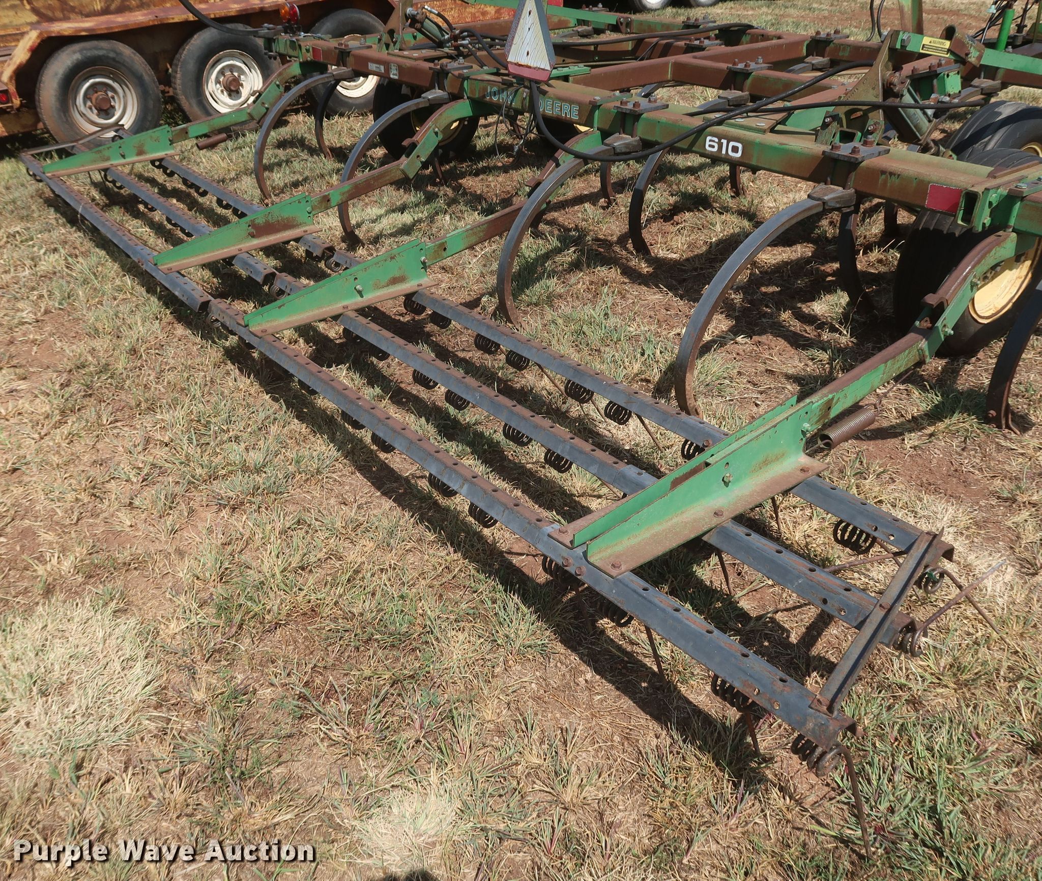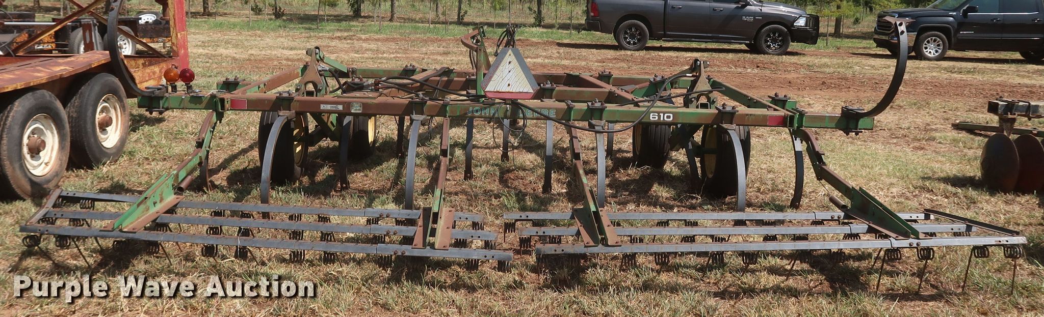 Purple Wave is selling a used Field Cultivator or Sweep Plow in Oklahoma. This item is a John Deere 610 field cultivator with the following: Overall width: 13', Serial: N00610X006647
