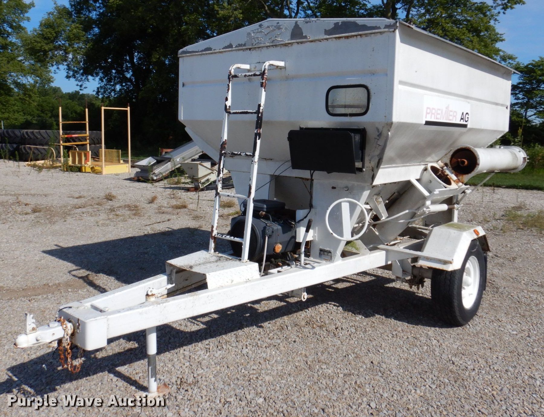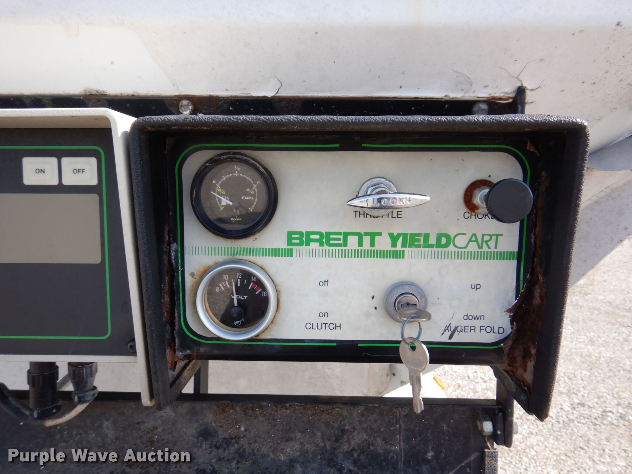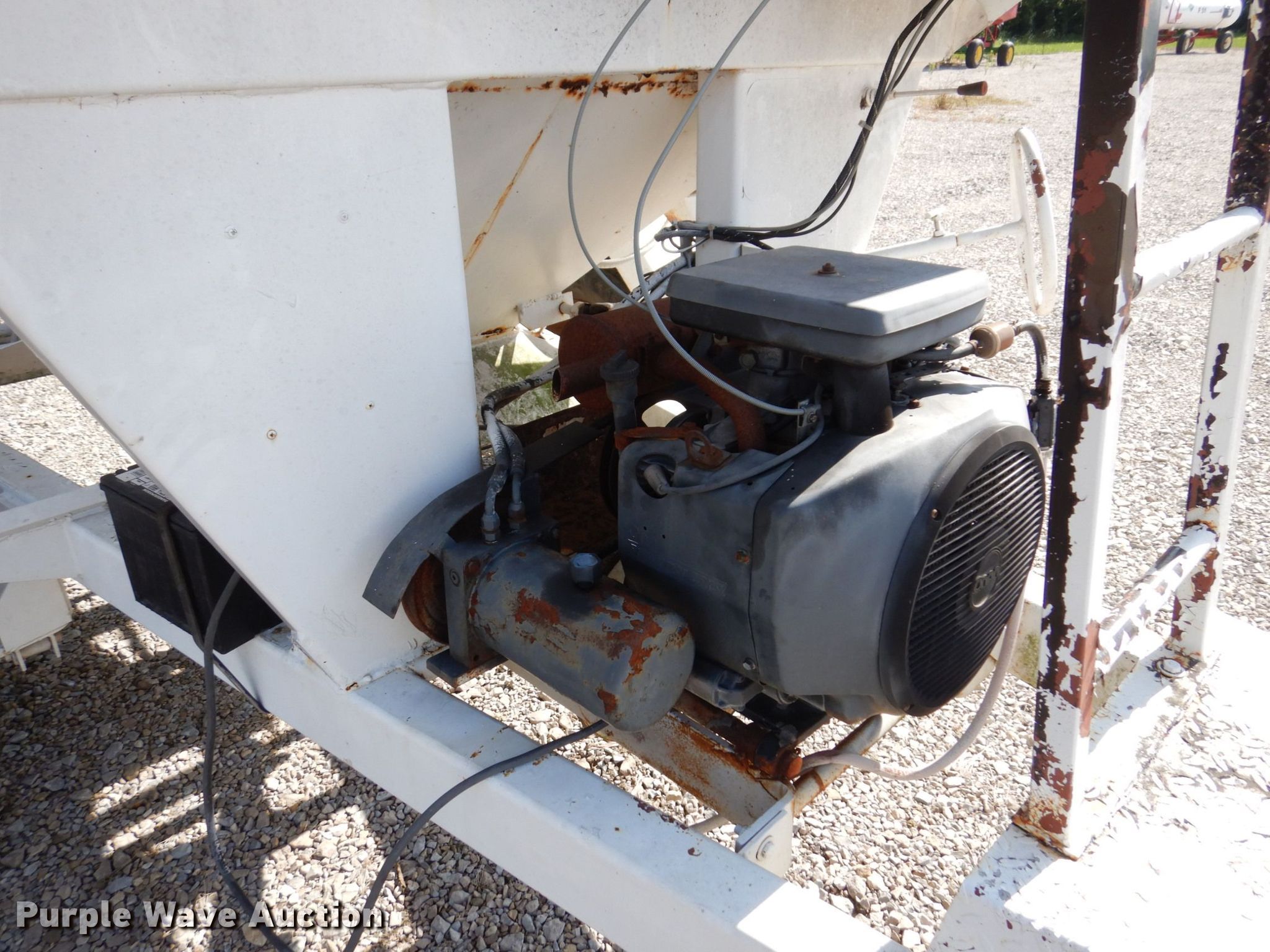 1990 Unverferth 150 fertilizer tender. Engine. Onan Performer 16XSL, Cylinders: 2, Fuel type: Gas, HP: 16. Features Capacity: 5 tons, Auger diameter: 8", Shut-off gate: Manual, Scales Brent YieldCart J-Star 5, Monitor, Sight glass, Compartments: 1, Ball hitch size: 2". Tires Size: 9.50-16.5. Notes Non-operational lights, Engine turns over, but will not start, Unknown operating condition. 802 South 600 West. Shelbyville, IN 46176