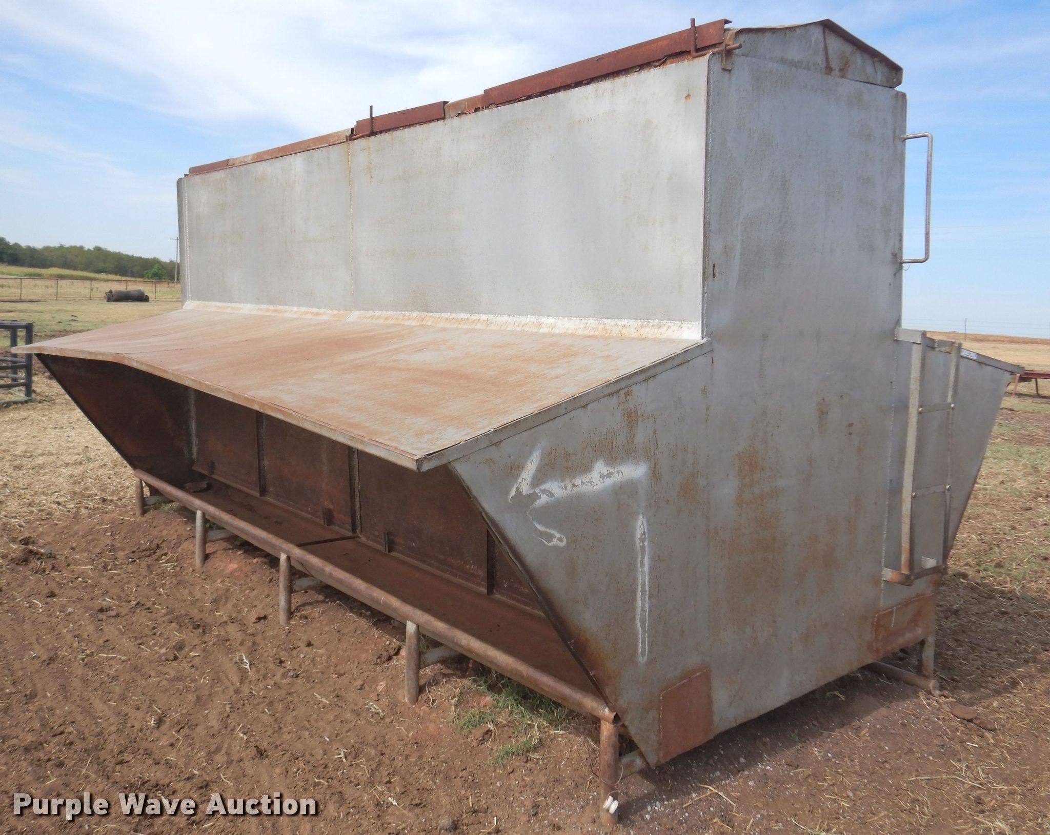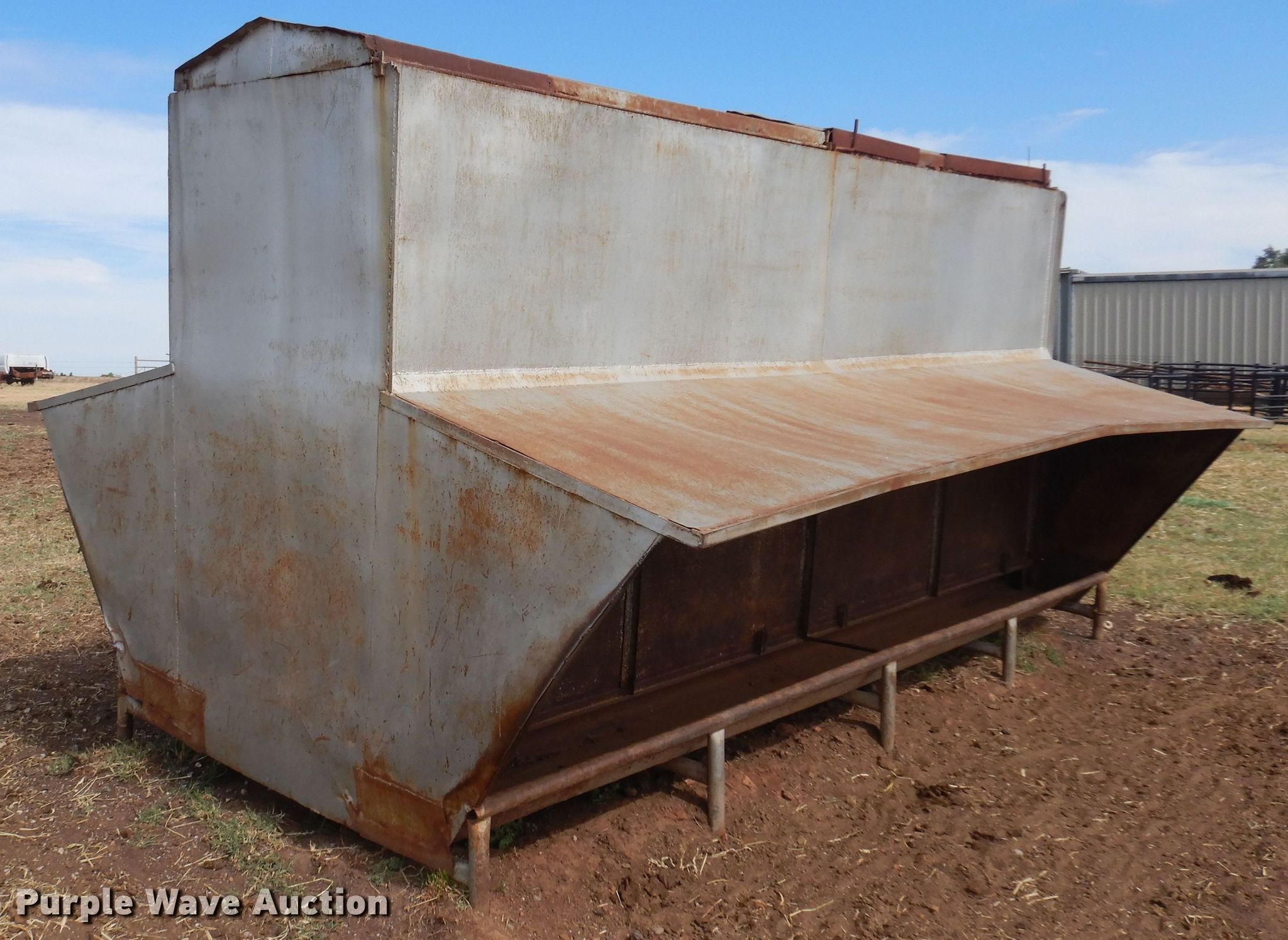 Purple Wave is selling a used Livestock Equip. in Oklahoma. This item is a Creep feeder with the following: 16'L x 11'8"W x 8'6"H
