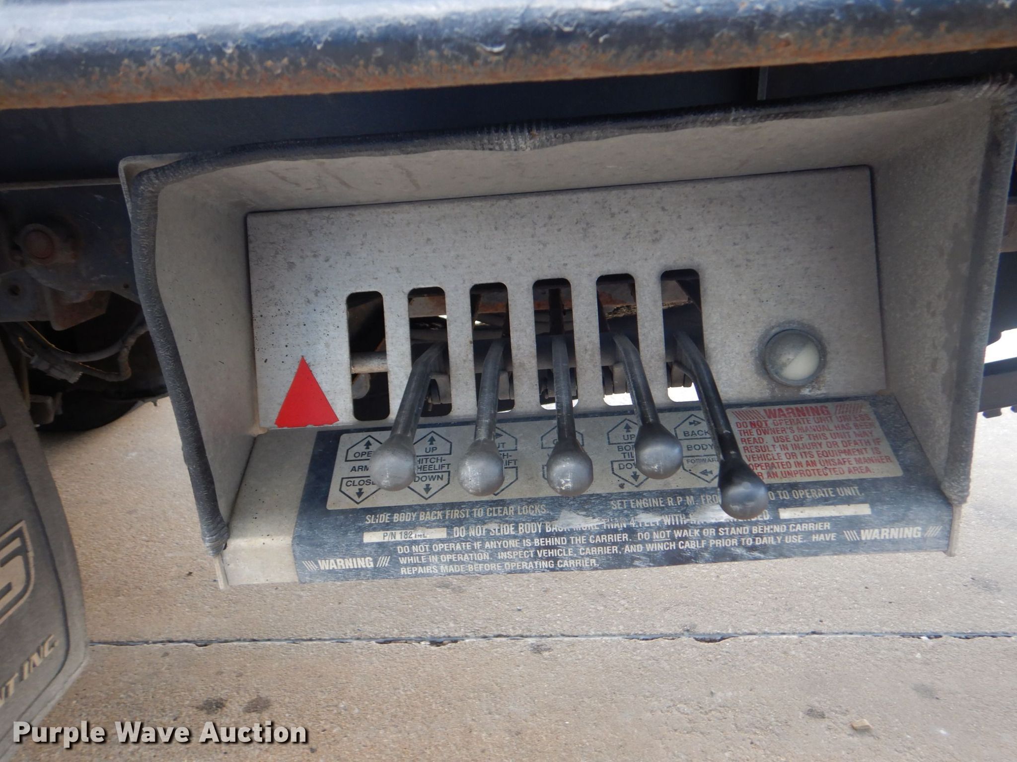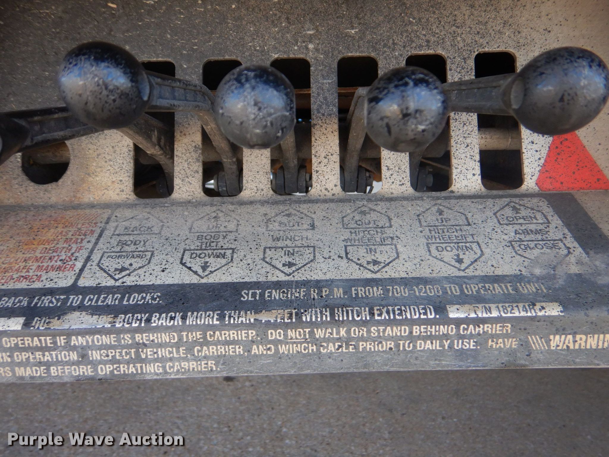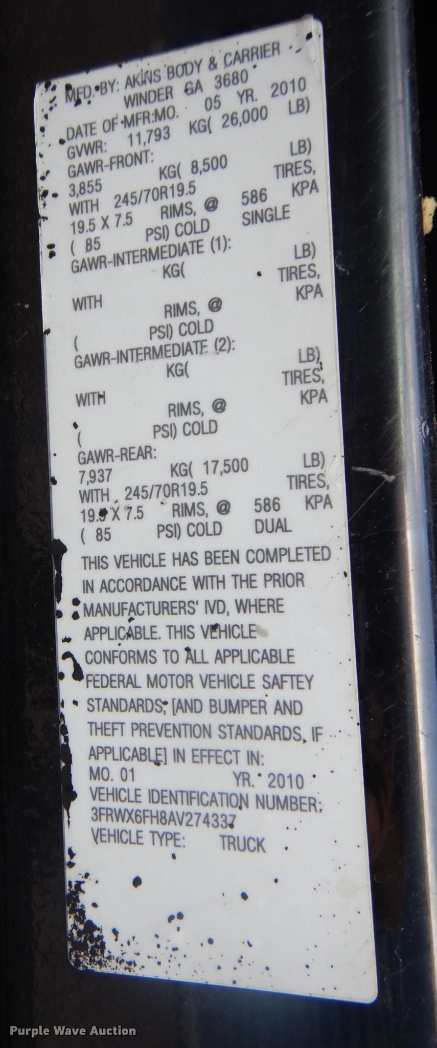 2010 Ford F650 Super Duty SuperCab rollback truck. Miles: 269,139 on odometer, Miles or hours may vary, unit still in use, VIN: 3FRWX6FH8AV274337. Engine Cummins CM2150D, Serial: 118052, Displacement: 6.7L, Cylinders: 6, Fuel type: Diesel. Transmission Automatic. Chassis Axles: Single, Suspension: Air, Brakes: Air, GVWR: 26,000 lbs. Interior AC, Heat, Power windows, Power locks, Cruise control, Brake controller. Features Rollback bed Chevron, 21' 7" L x 8' 6" W, Removable sides, Ram: Double, Wrecker boom: Hydraulic, Winch Capacity: 12,000 lbs, Underlift Hydraulic fold, Capacity: 4,000 lbs. Tires Size: 245/70R19.5. Notes Dash warning indicator: Check engine, ABS, Stop engine, Windshield chipped or cracked. Texas title. 800 Fulgham Road. Plano, TX 75093