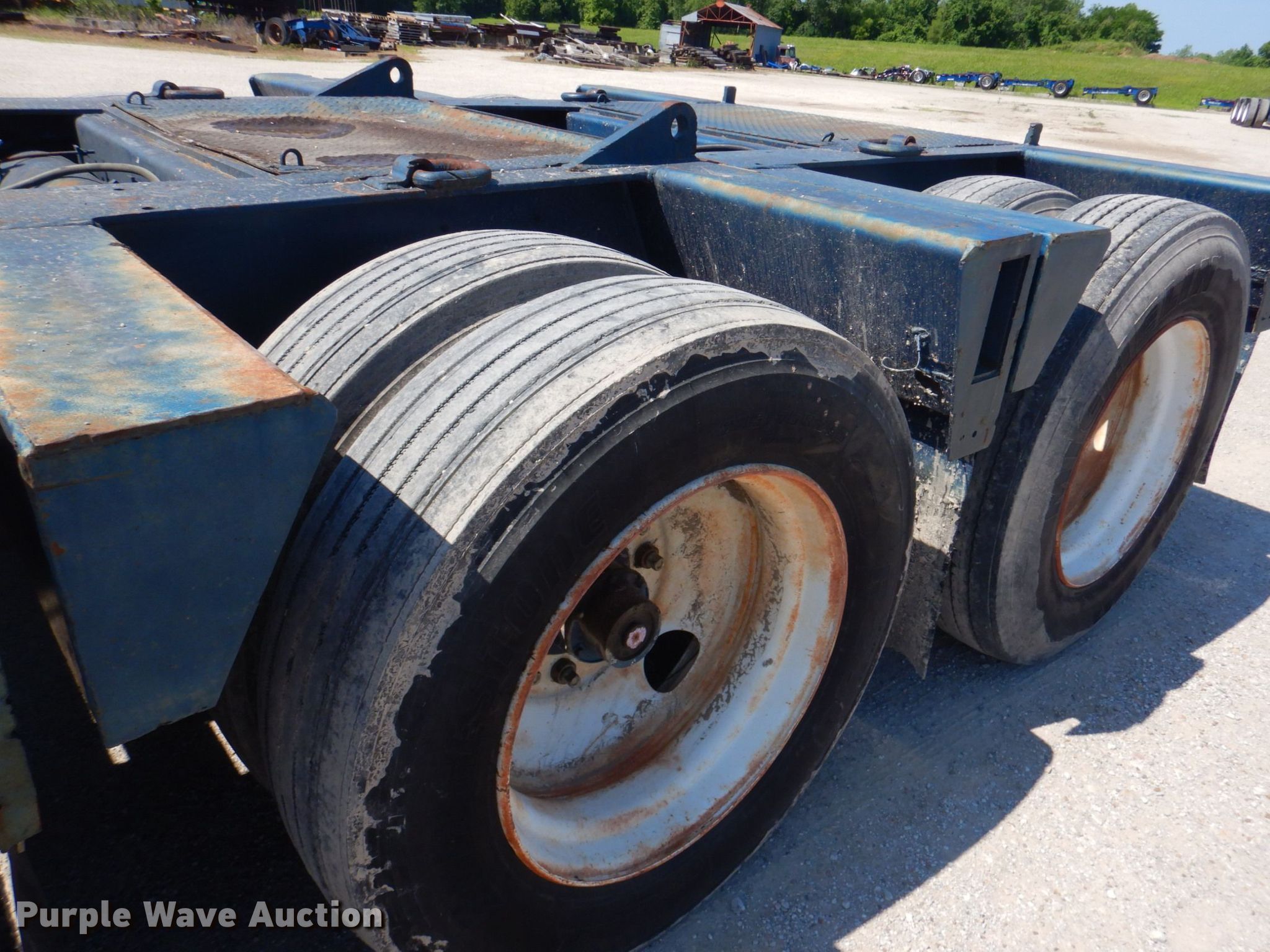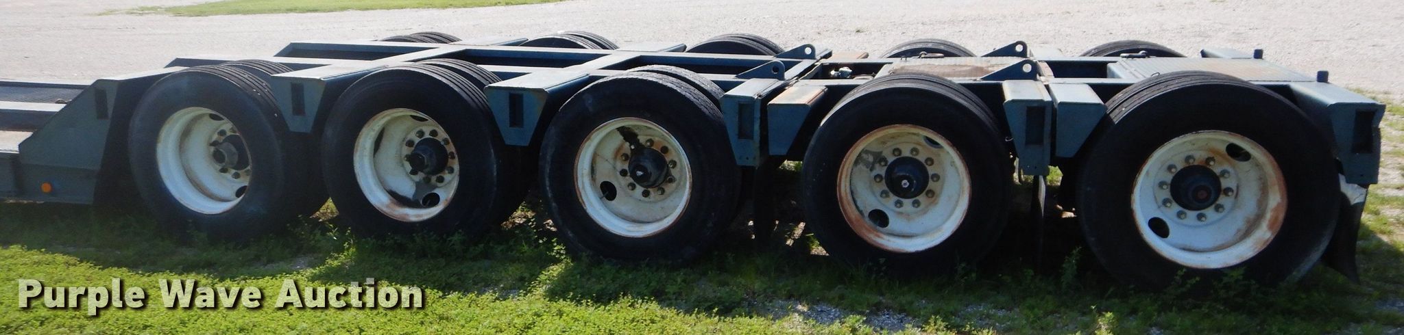 1976 Hyster lowboy equipment trailer. VIN: 20430. Dimensions Overall: 53' L x 9' W, Deck: 22' L x 9' W, Deck height: 22'. Features Deck type: Steel, Outriggers: Swing-out Board size: 11", Neck type: Detachable, Hydraulic controls: Manual. Chassis Suspension: Air, Brakes: Air, Axles: Triple. Tires Steel wheels, Size: 11R24.5. 1976 Hyster booster axle VIN: 20431. Dimensions Overall: 4' L x 108" W. Chassis Suspension: Air, Brakes: Air. Tires Steel wheels, Size: 285/75R 24.5. 1976 Hyster booster axle VIN: 20432. Dimensions Overall: 52' L x 108" W. Chassis Suspension: Air, Brakes: Air. Tires Steel wheels, Size: 11R24.5. Kansas titles. Anchor Trucking Service Inc.. 8109 Kaw Drive. Kansas City, KS 66111