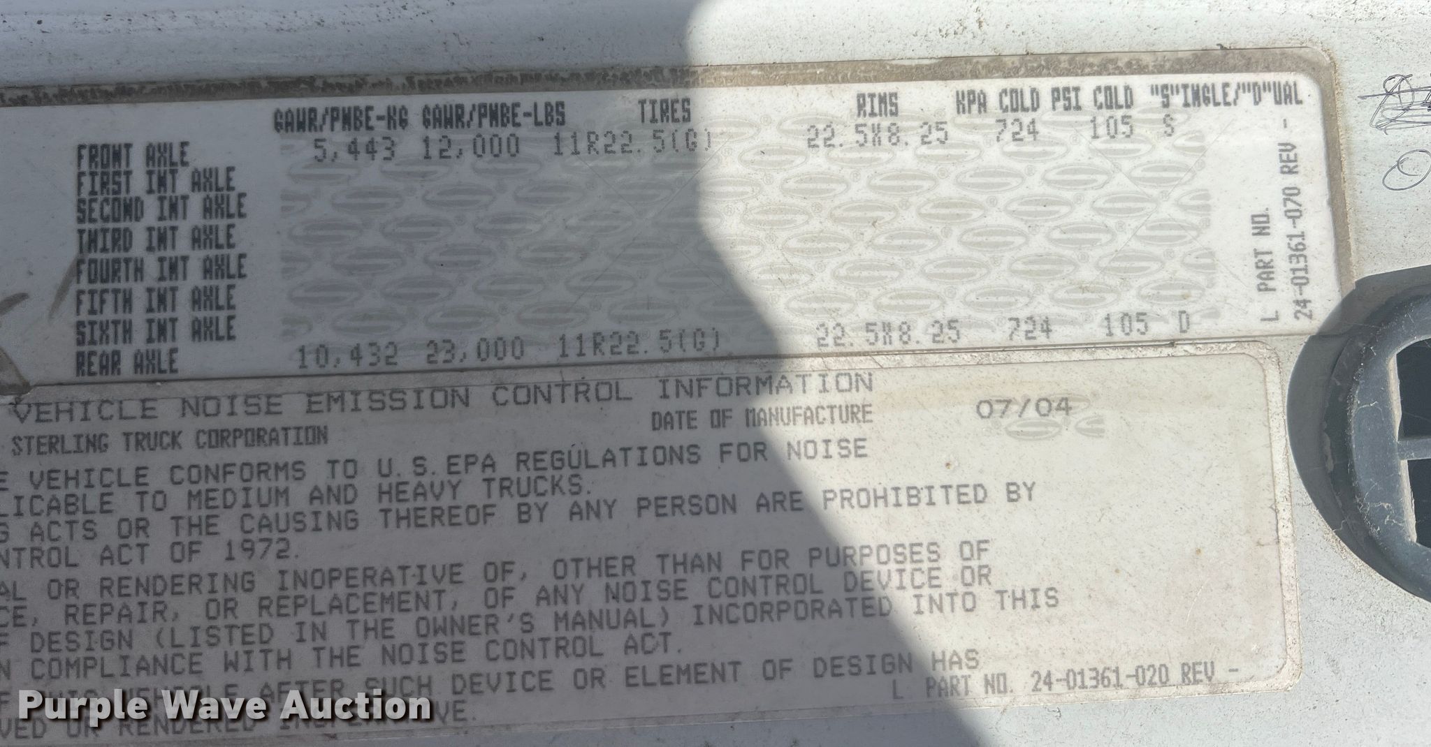 Take a look at this used 2005 Sterling 9500 truck cab and chassis being sold on September 1st, 2022 in the SOLD! Thursday September 01 Truck and Trailer Auction made by Sterling. Take a look at all of the item information below or take a look at similar auctions for Trucks.