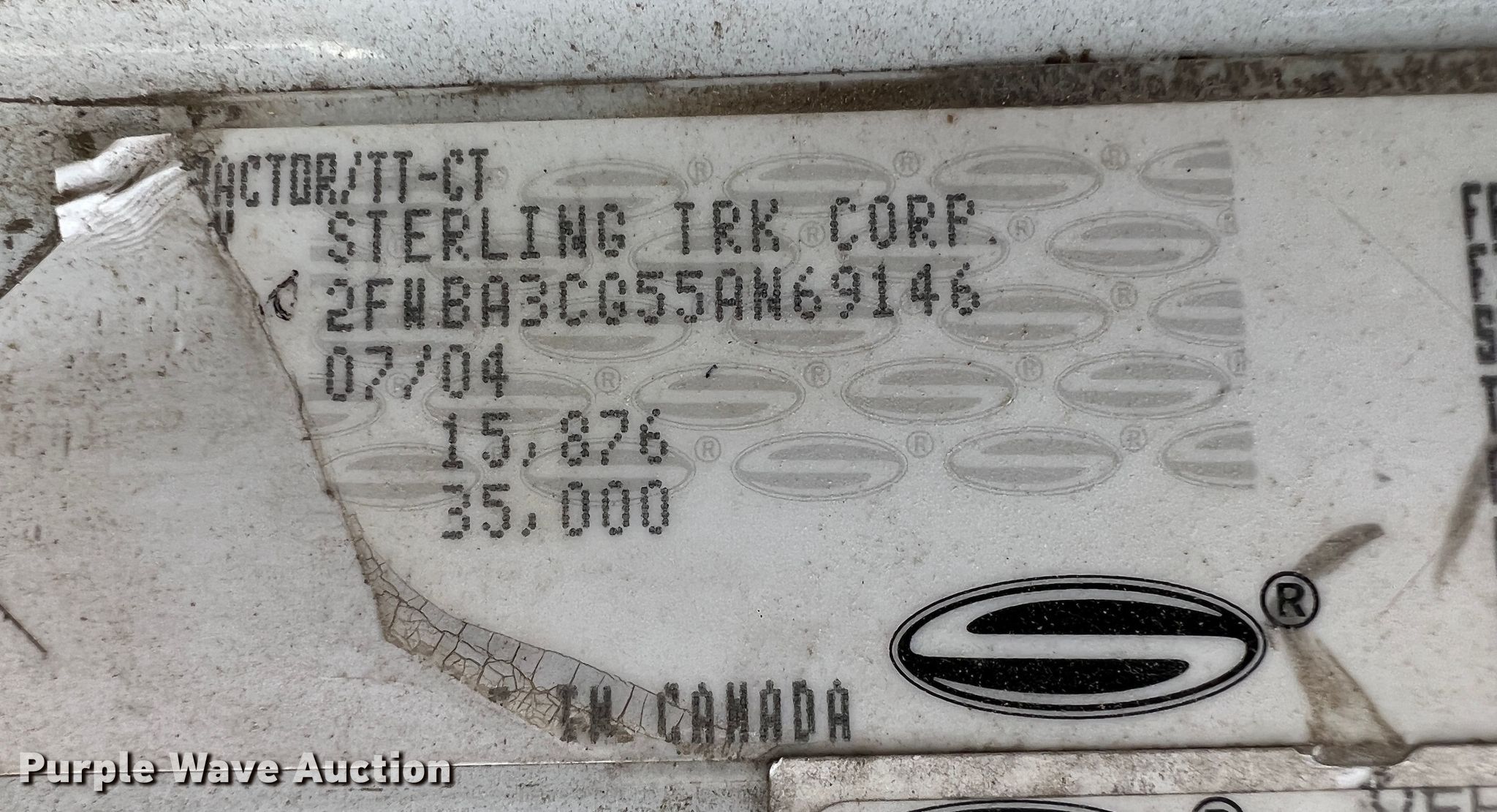 Purple Wave is selling a used Truck Tractor in Oklahoma. This item is a 2005 Sterling 9500 truck cab and chassis with the following: Miles: 496,300 on odometer, VIN: 2FWBA3CG55AN69146
