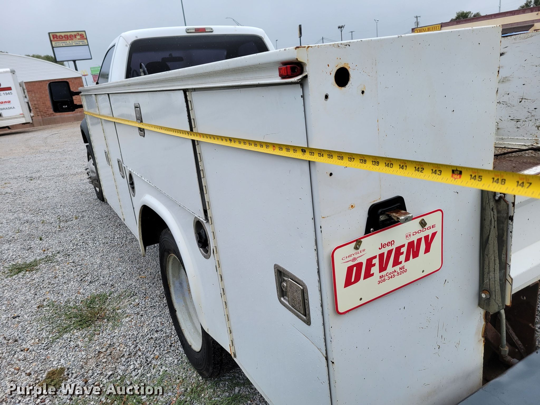 2008 Ford F550 Super Duty XL utility / service truck. Miles: 194,934 on odometer, VIN: 1FDAF57R78ED98774. Engine Displacement: 6.4L V8 OHV, Cylinders: 8, Fuel type: Diesel. Transmission Automatic. Chassis Four wheel drive, Axles: Single, Suspension: Spring, Brakes: Hydraulic, GVWR: 19,500 lbs. Interior AC, Heat, Power windows, Power locks, Cruise control, Brake controller. Features Bed Knapheide, 12' L x 94" W. Tires Size: 225/70R19.5. Kansas title. Jim Deveny Motors Inc.. 1013 S Burlington Ave. Hastings, NE 68901
