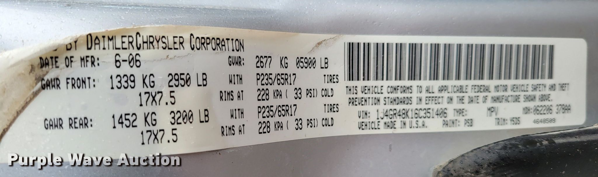 Purple Wave is selling a used Passenger Vehicle in Nebraska. This item is a 2006 Jeep Grand Cherokee Laredo SUV with the following: Miles: 130,973 on odometer, VIN: 1J4GR48K16C351406